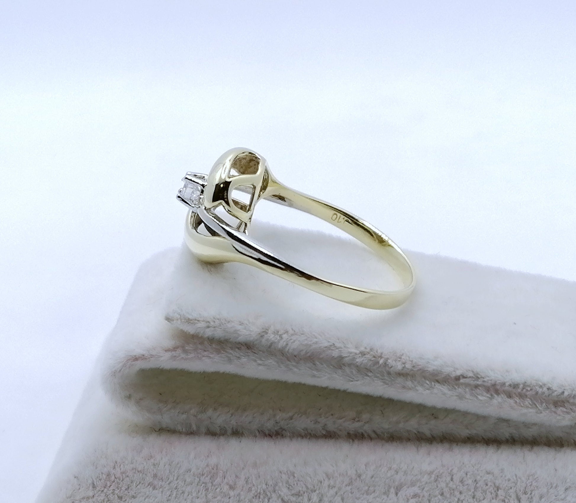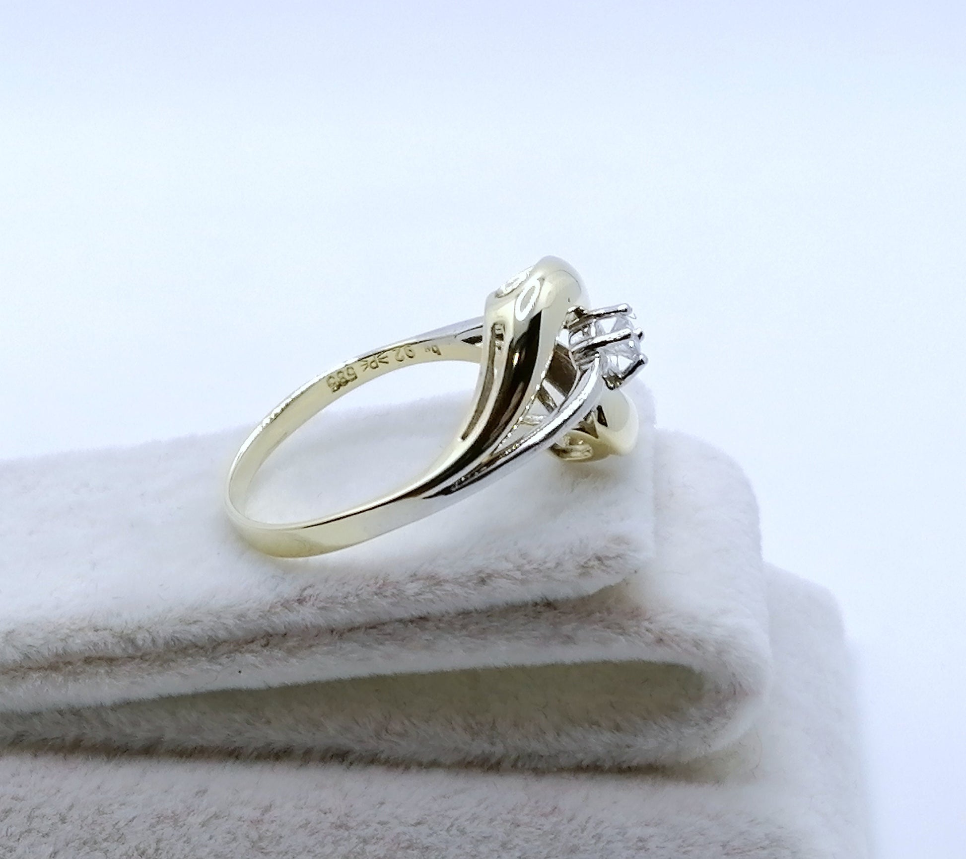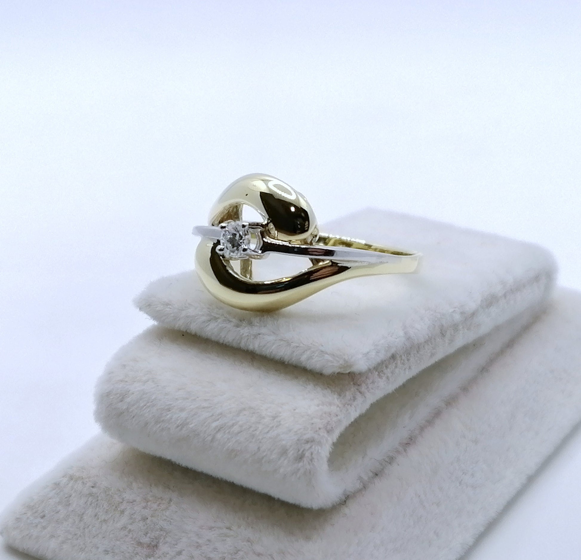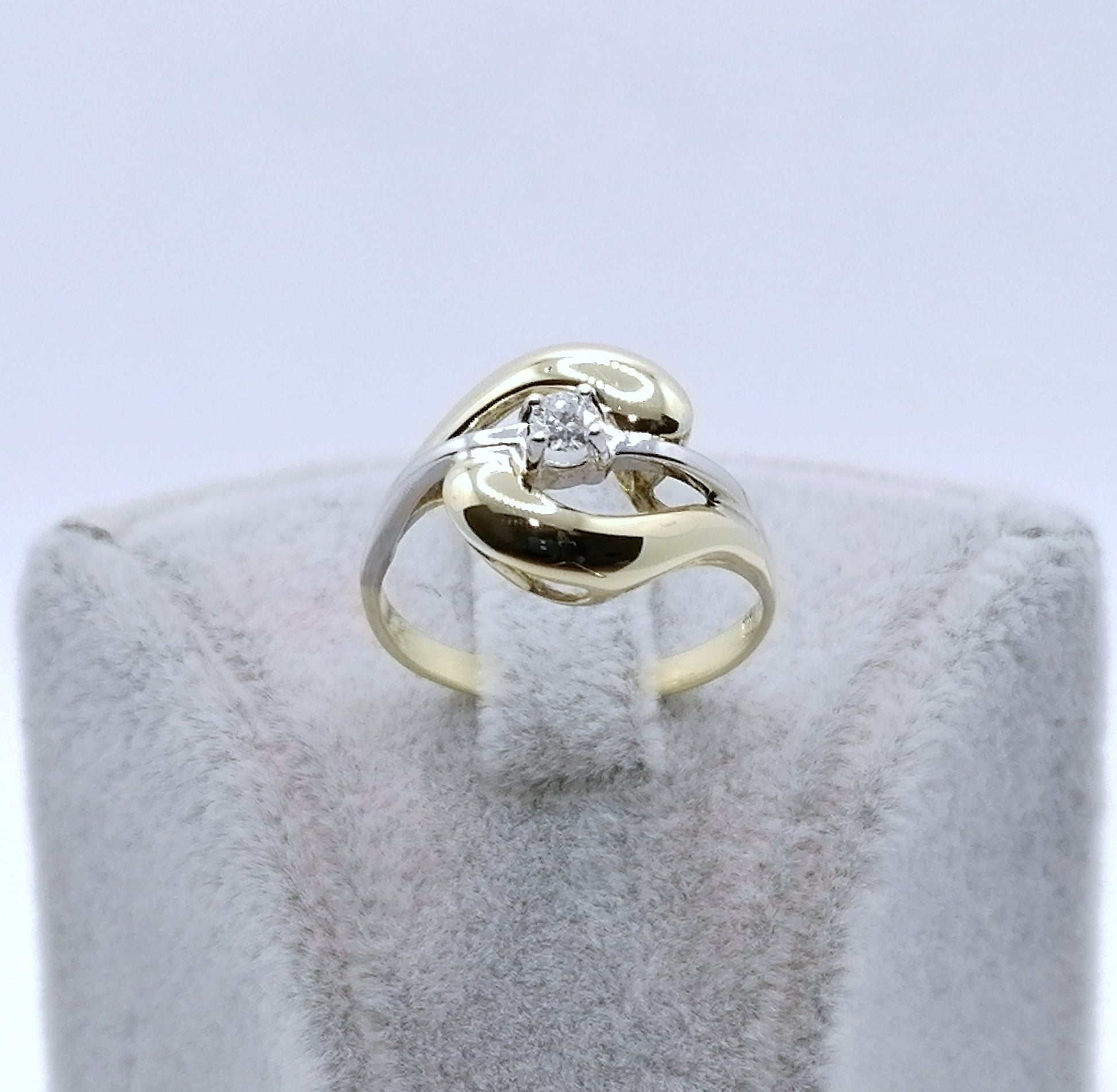 Bicolor (Gelbgold / Weißgold) Damenring mit einem hochwertigen 0,1ct VSI Brillanten. Der Ring ist aus 585er 14 karat Gold gefertigt.