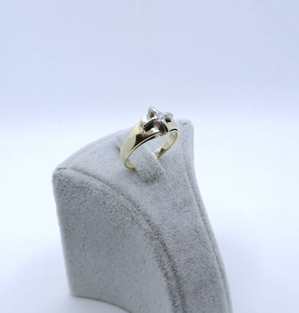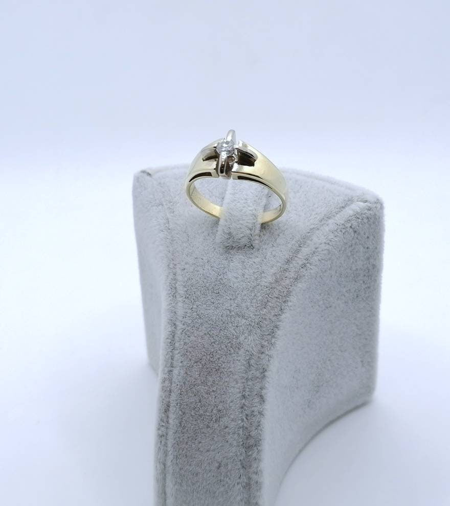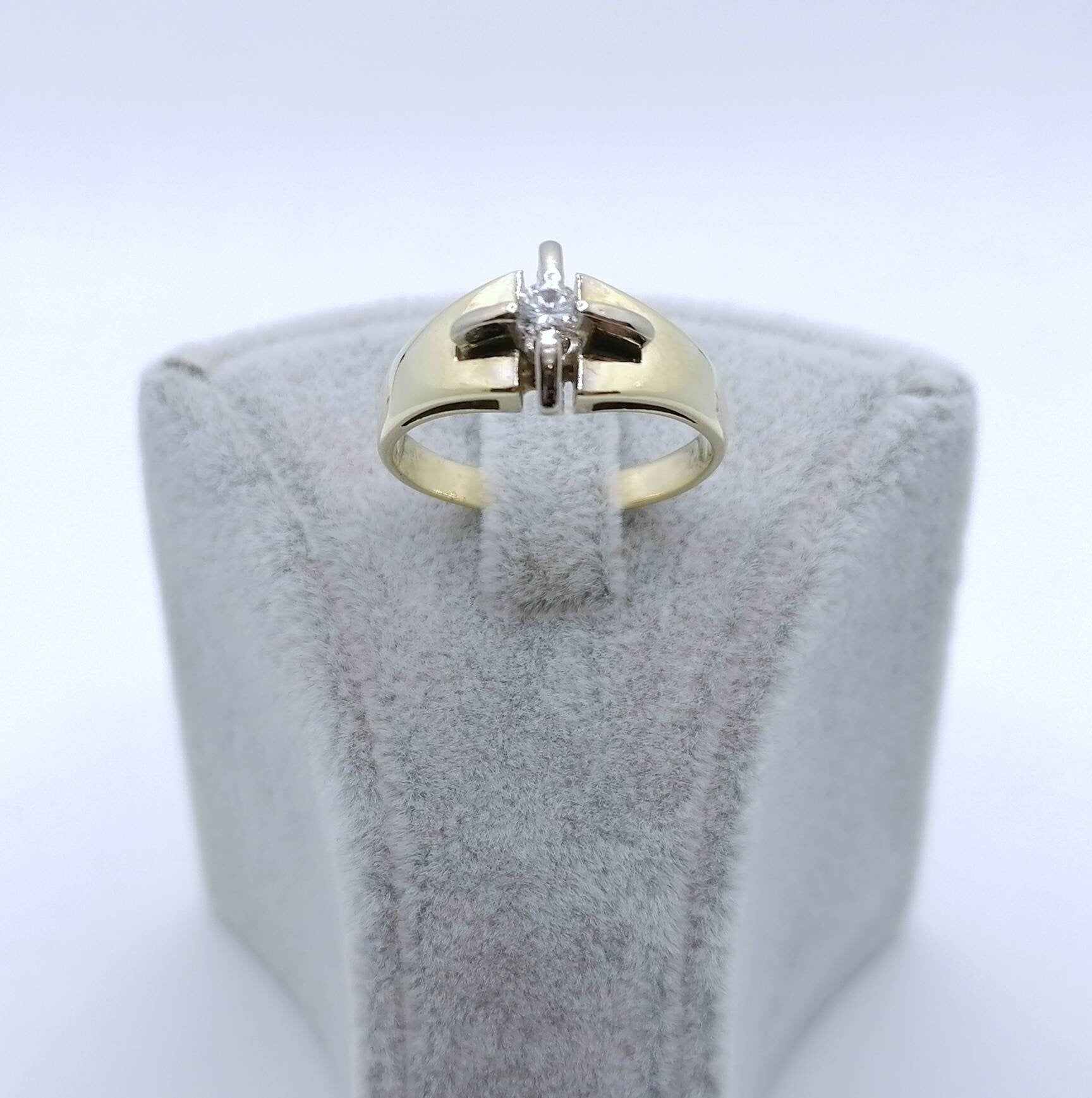 Vintage Solitär Gold Damenring mit einem 0,15ct VSI Brillanten. Der Ring ist aus 585er 14 karat Gold gefertigt.
