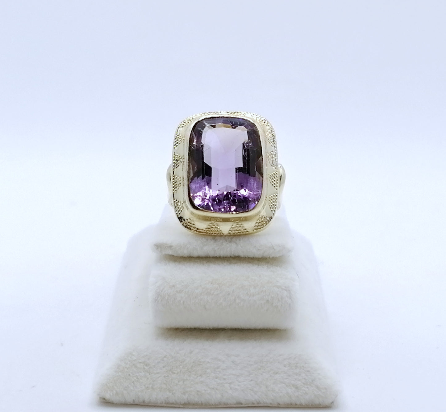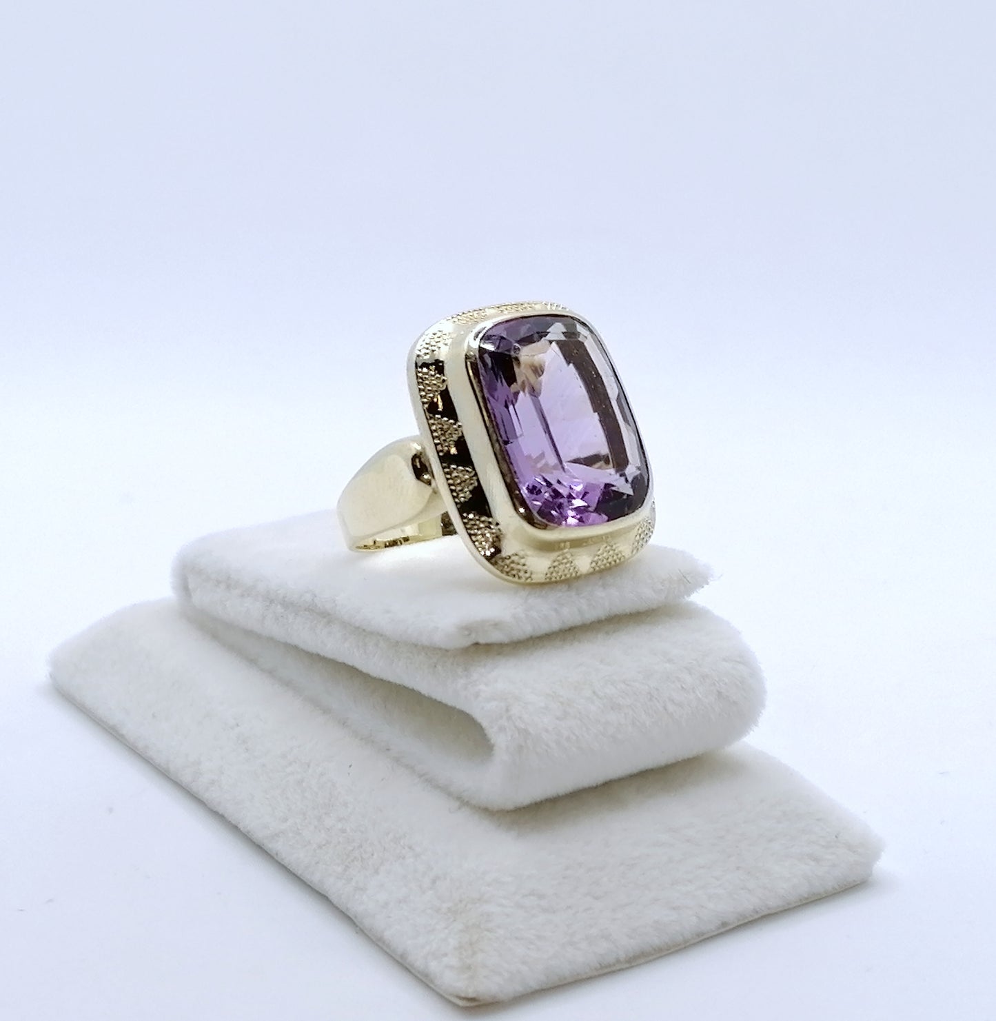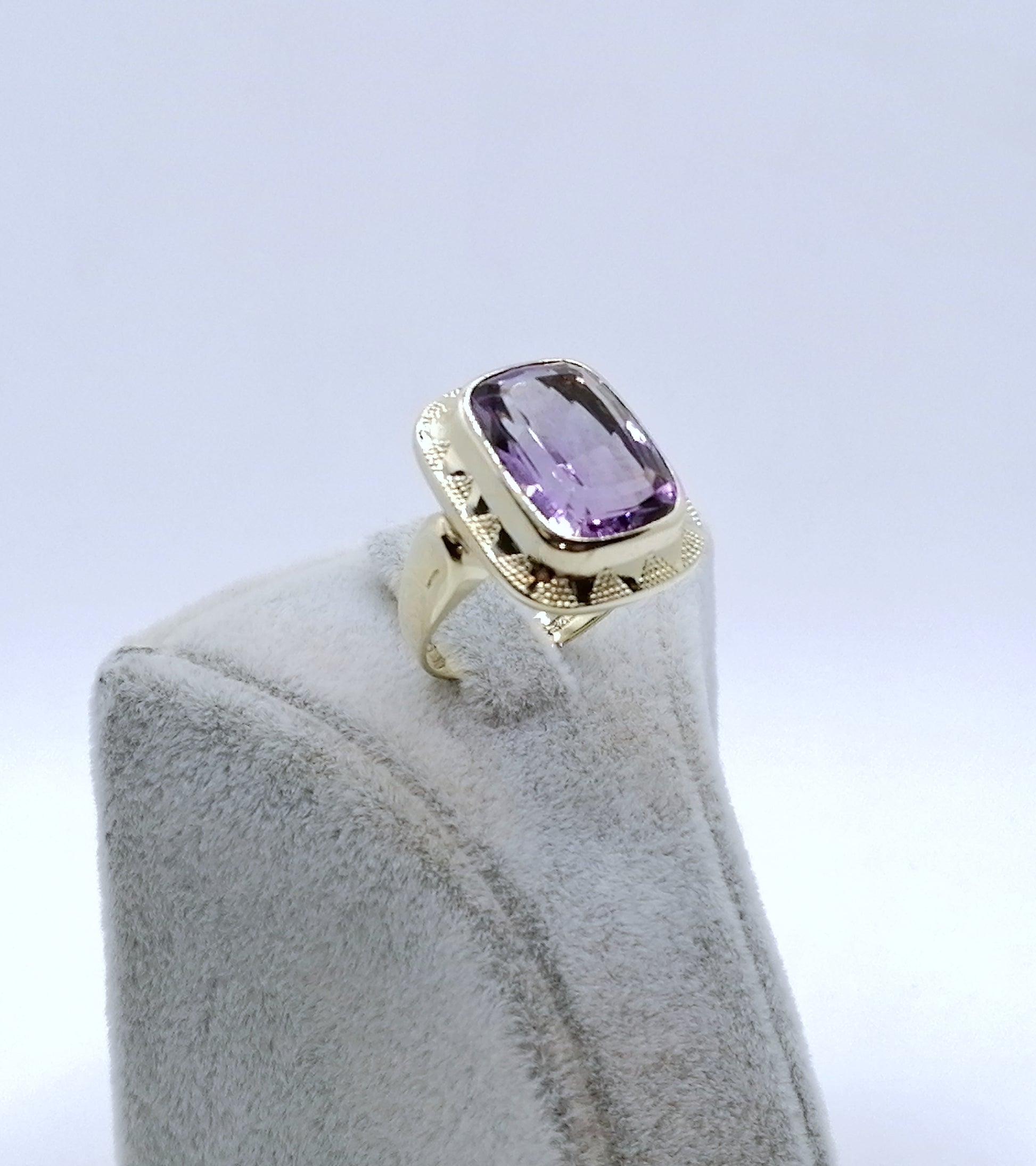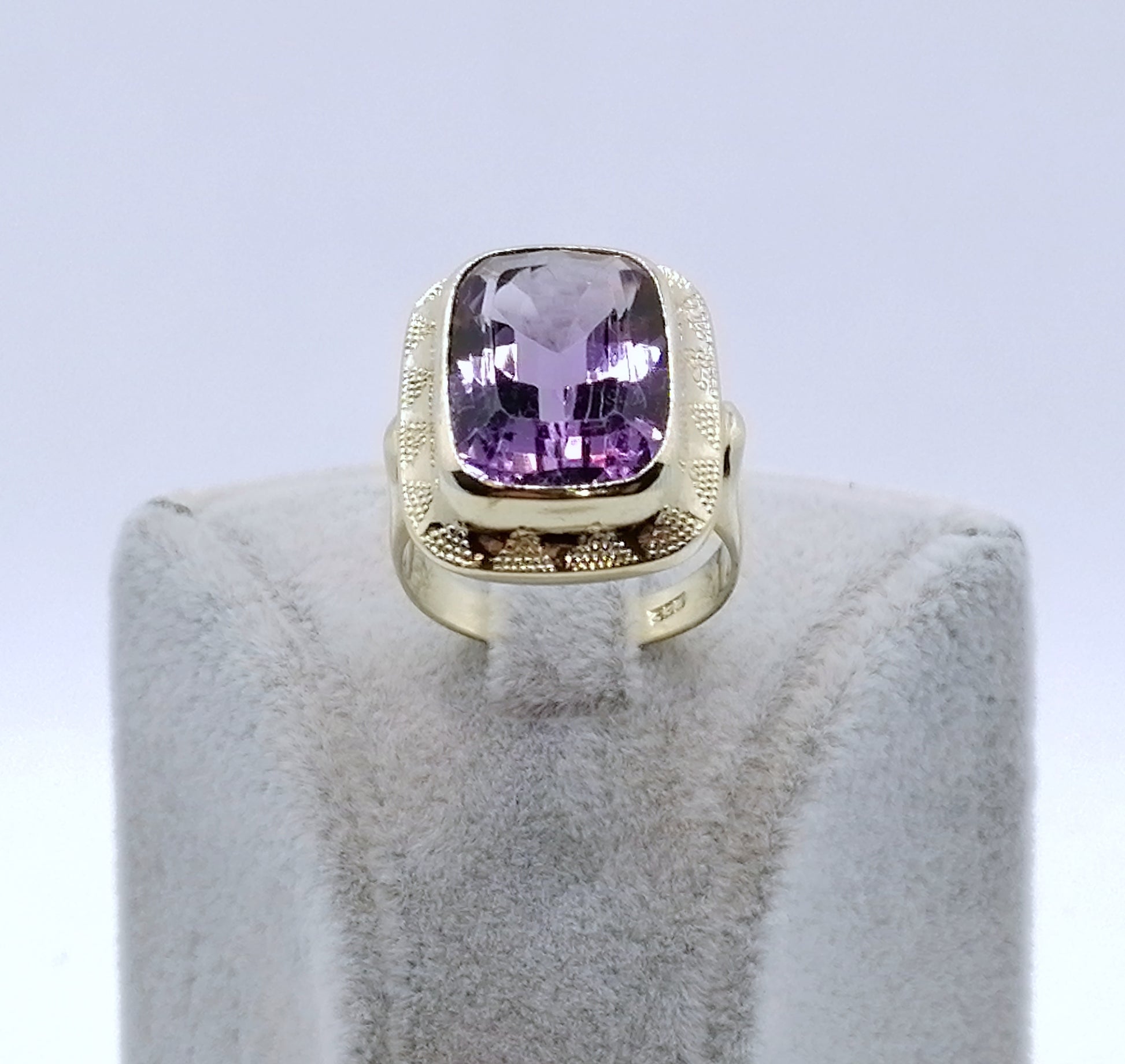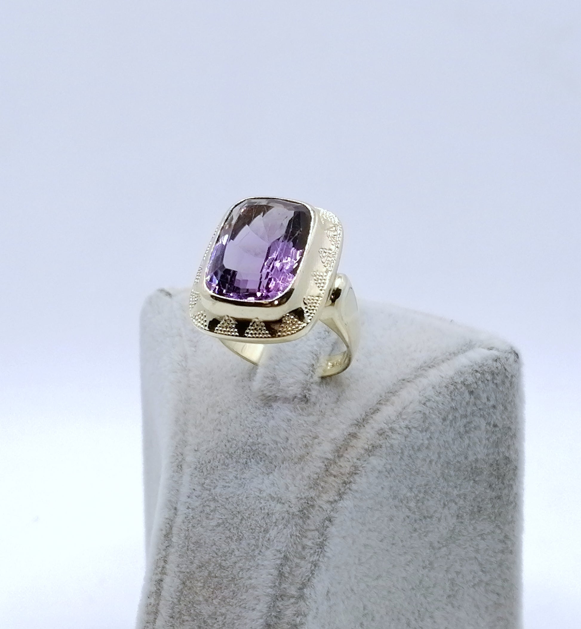 Neuwertiger Gold Damenring mit einem Amethyst. Das Schmuckstück ist aus 333er 8 Karat Gold gefertigt.