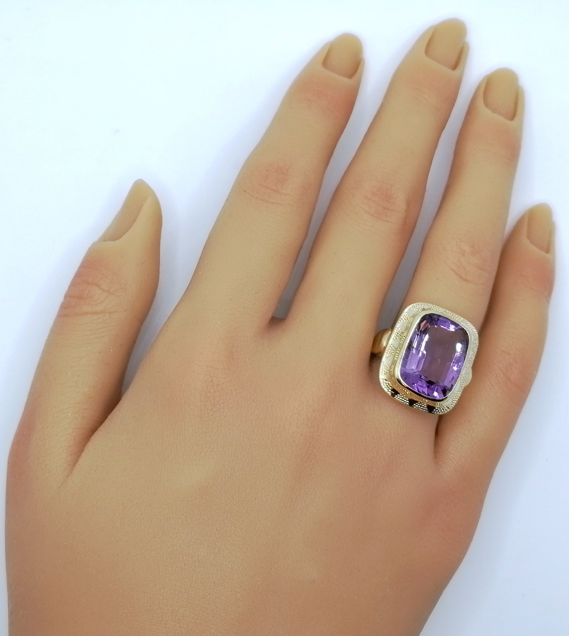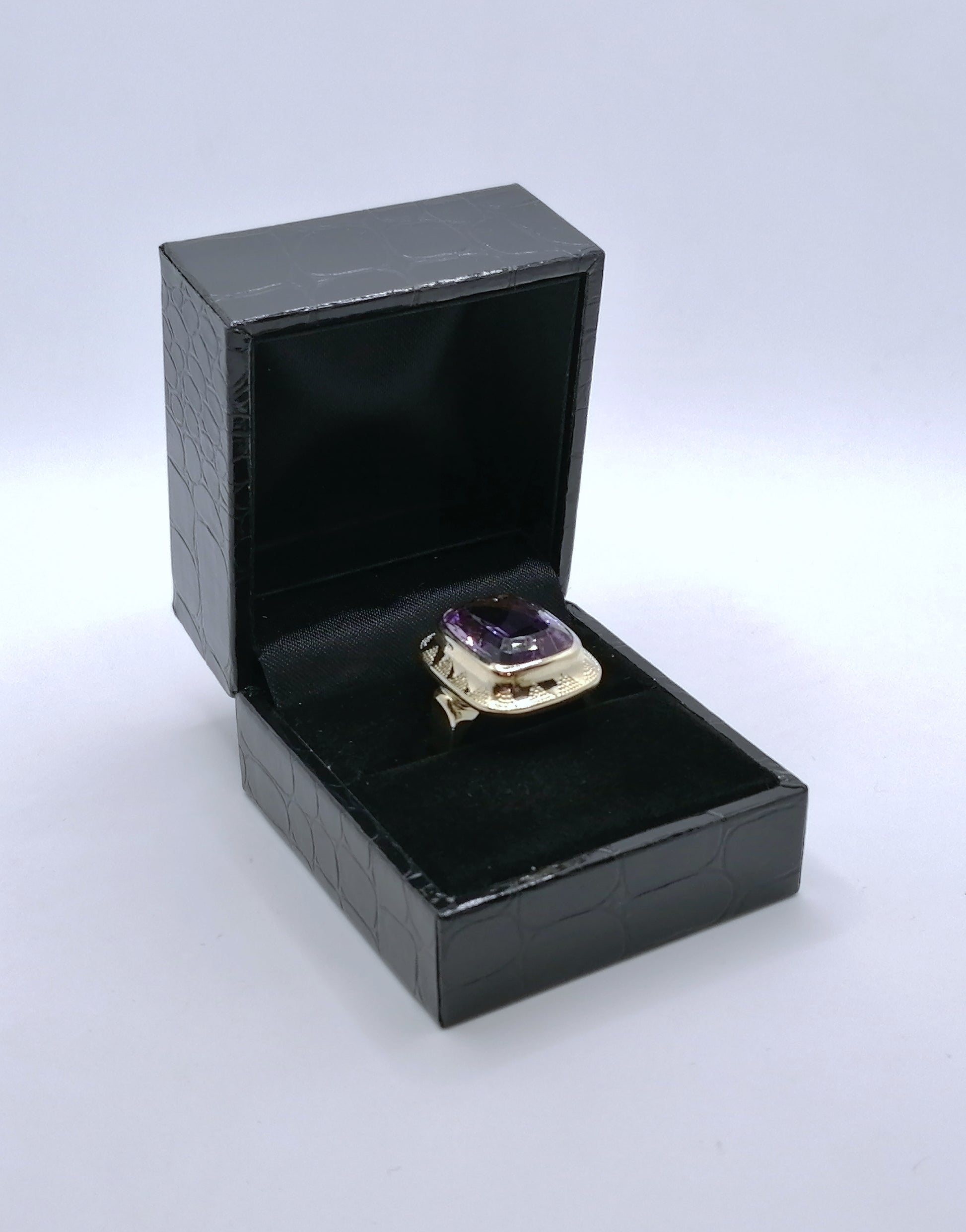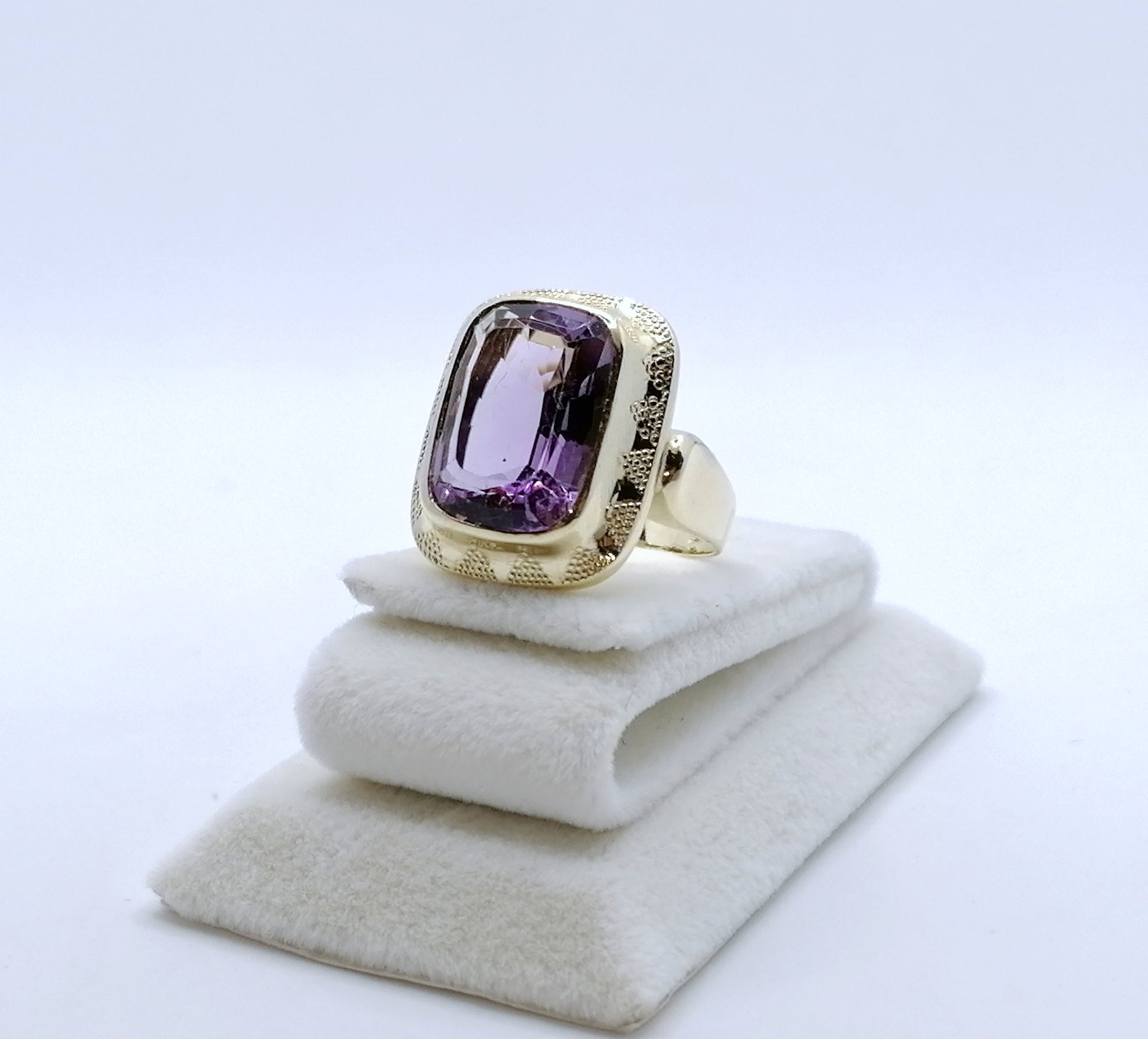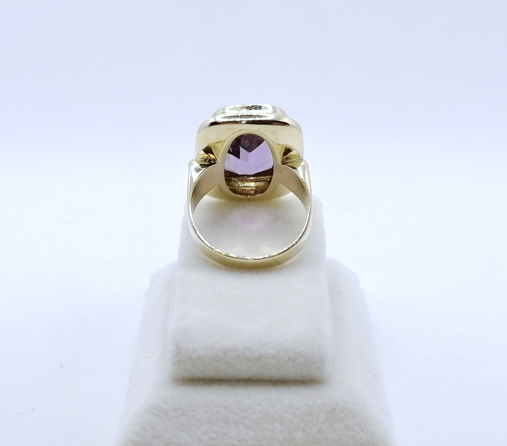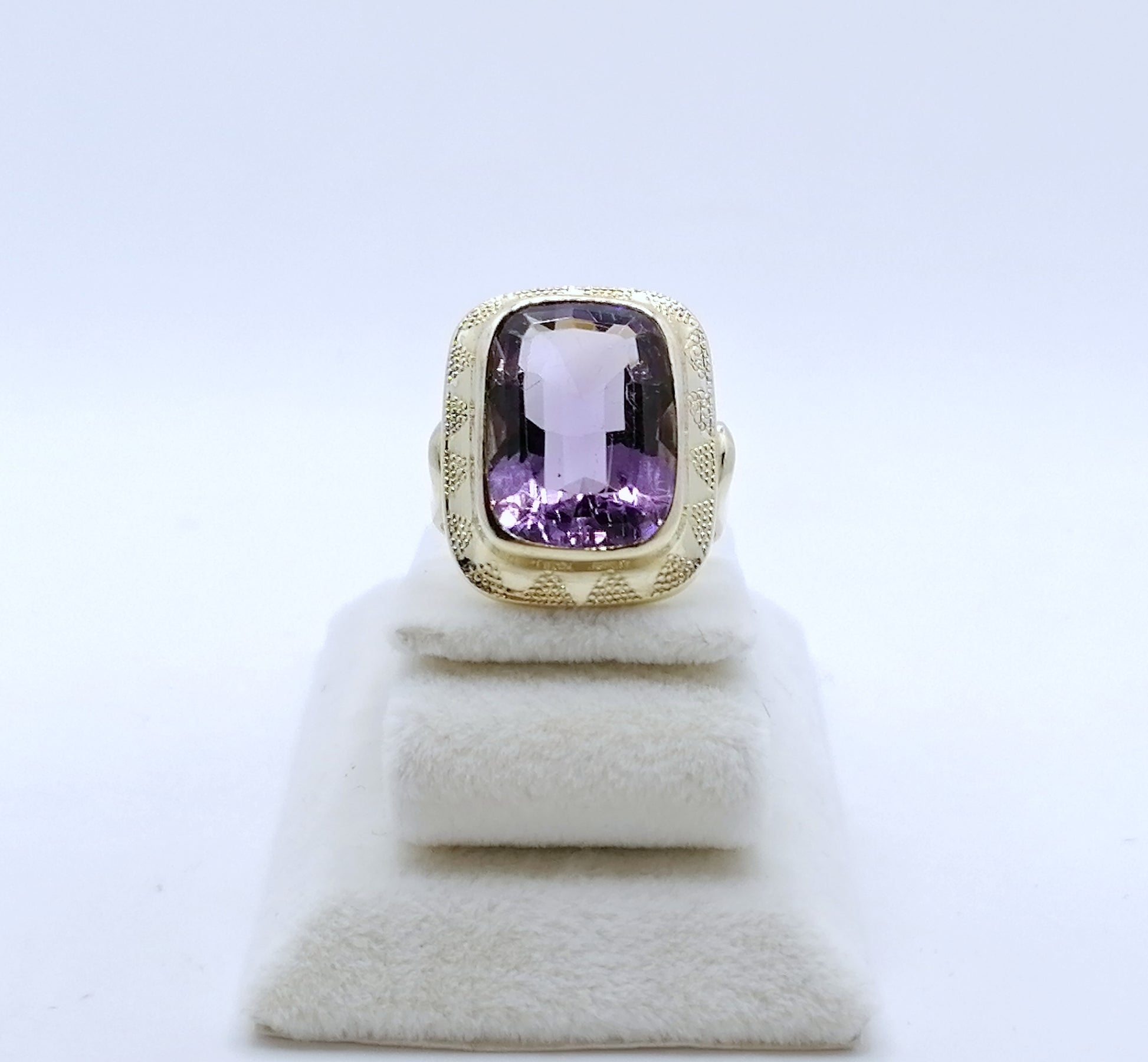 Neuwertiger Gold Damenring mit einem Amethyst. Das Schmuckstück ist aus 333er 8 Karat Gold gefertigt.