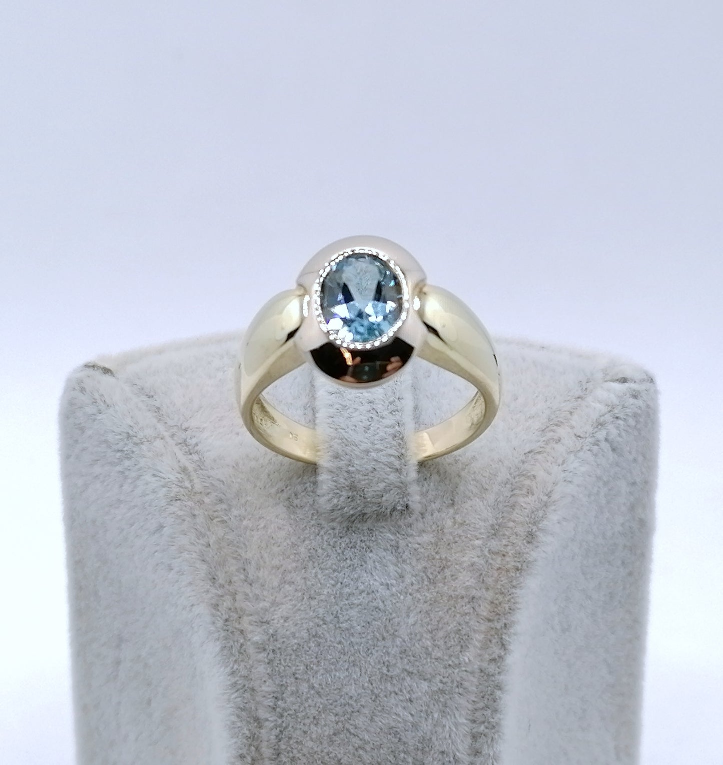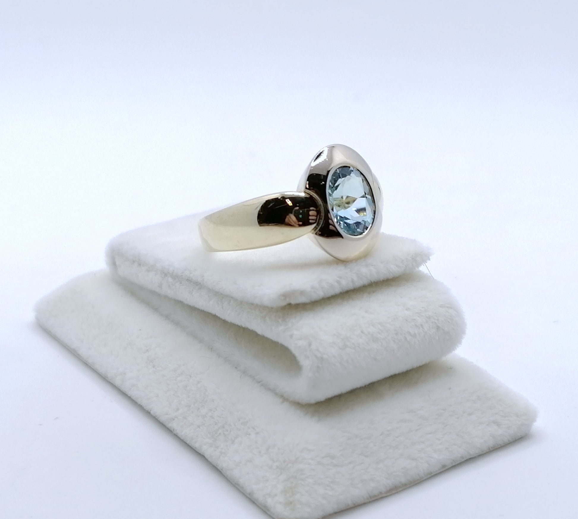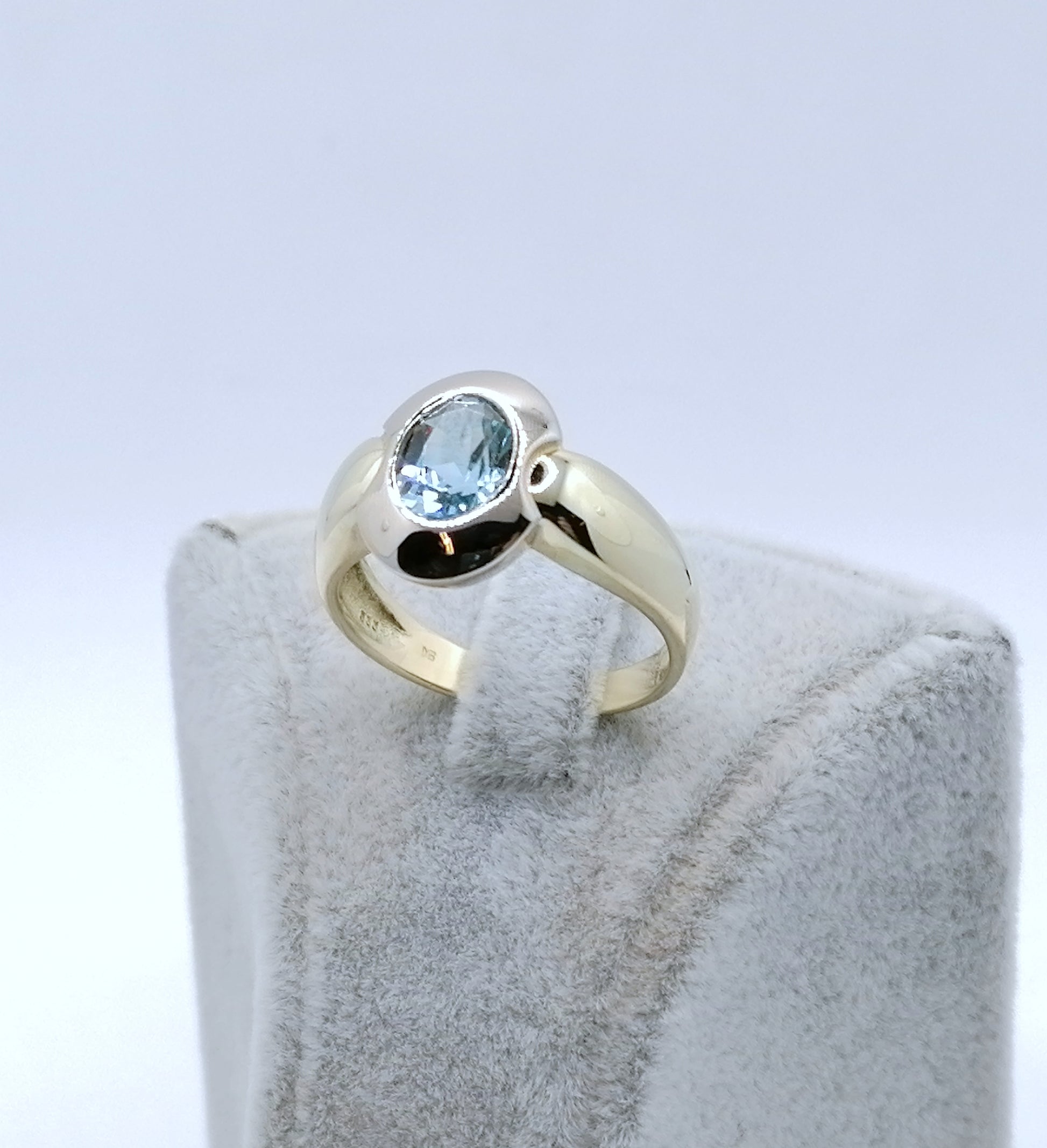 Neuwertiger Gold Damenring mit einem blau Topas. Der Ring ist aus 333er 8 Karat Gold gefertigt.