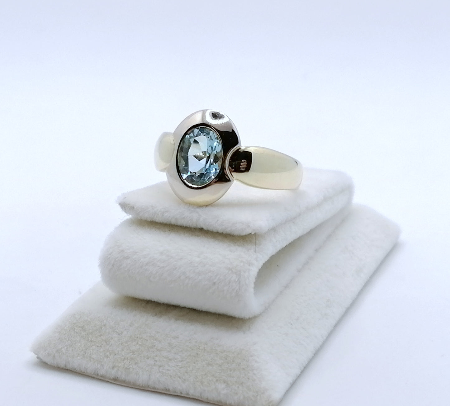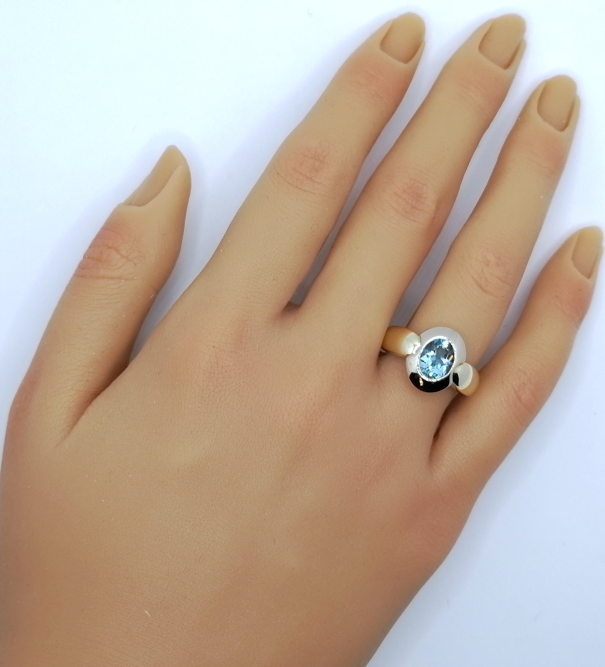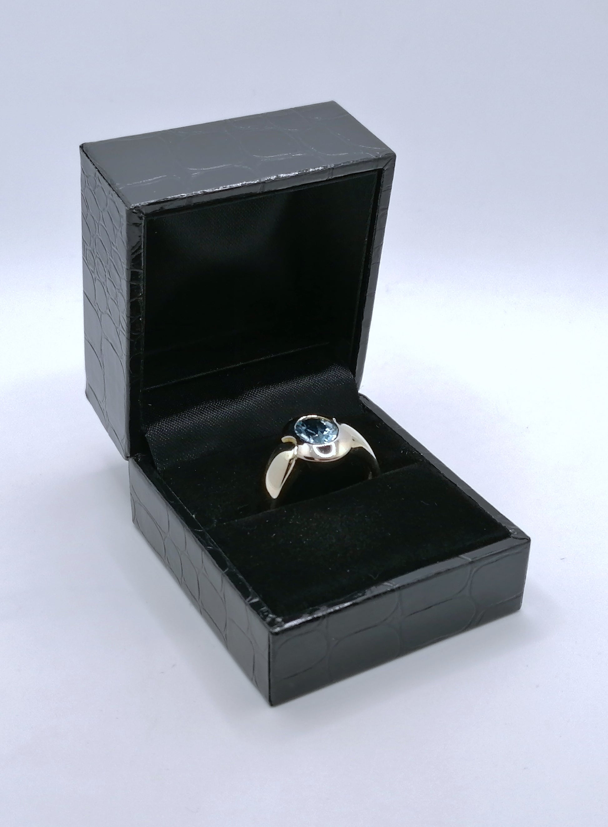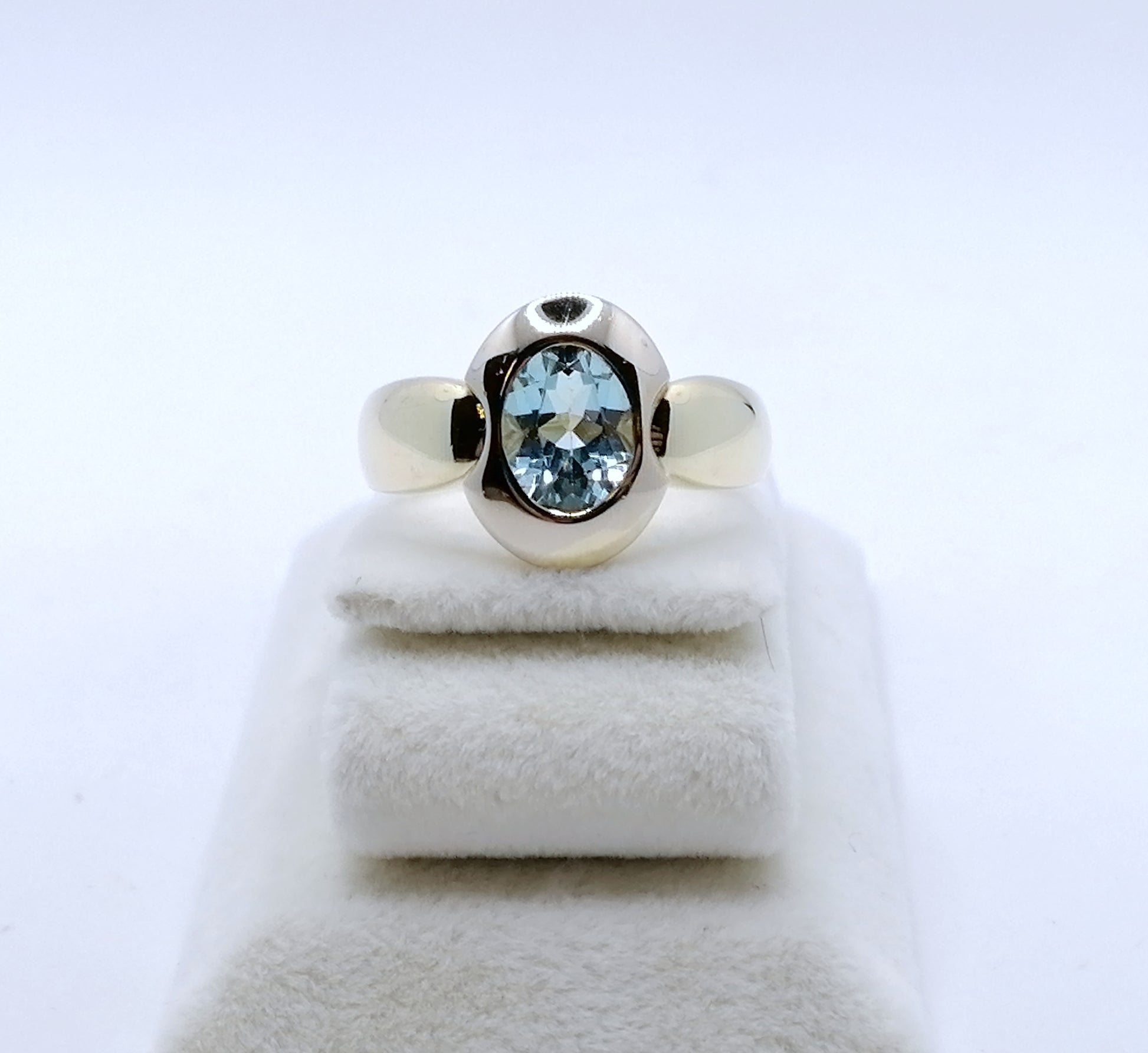 Neuwertiger Gold Damenring mit einem blau Topas. Der Ring ist aus 333er 8 Karat Gold gefertigt.