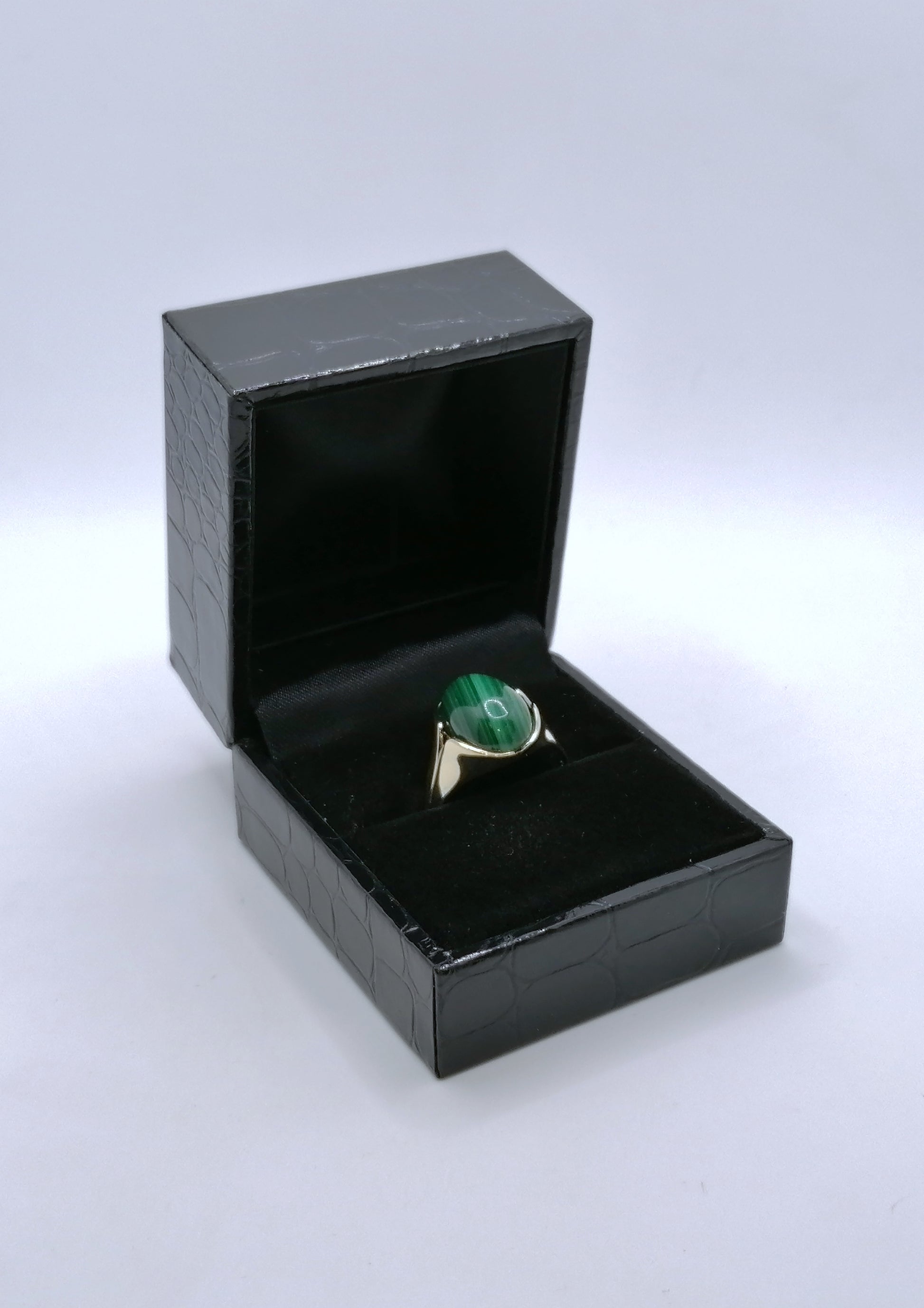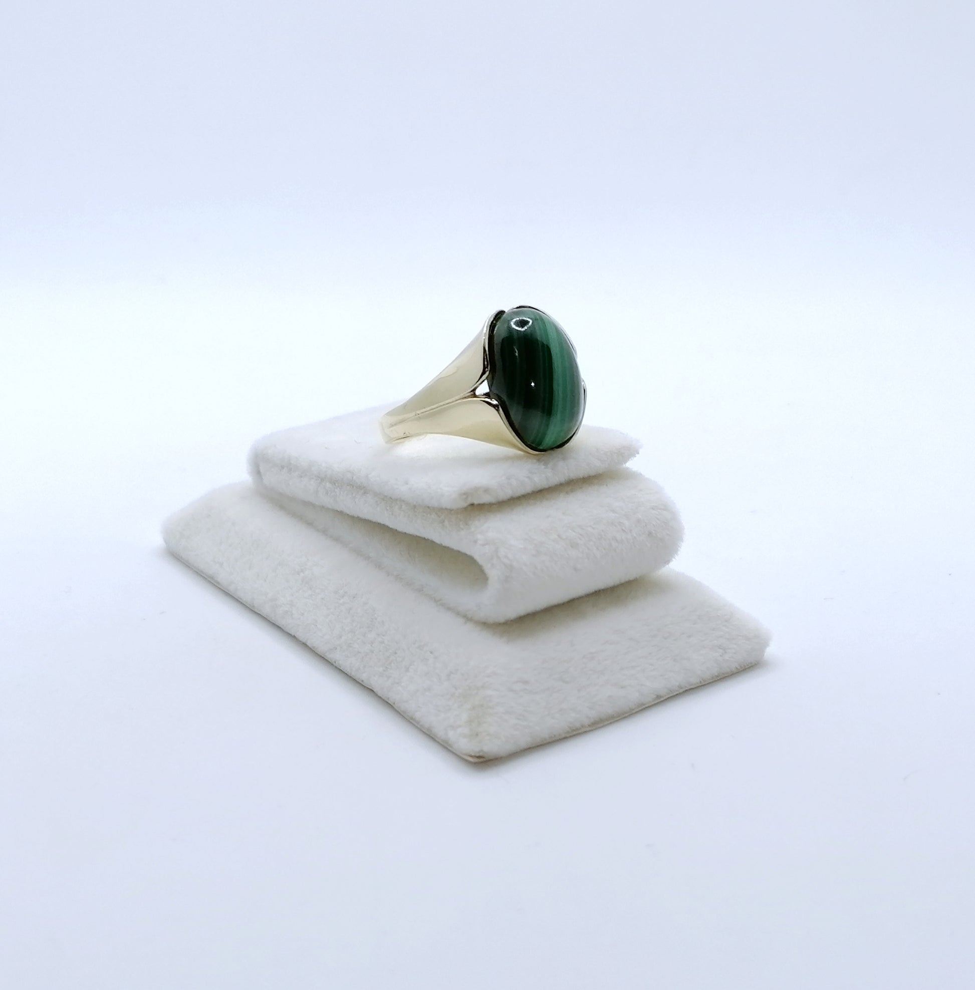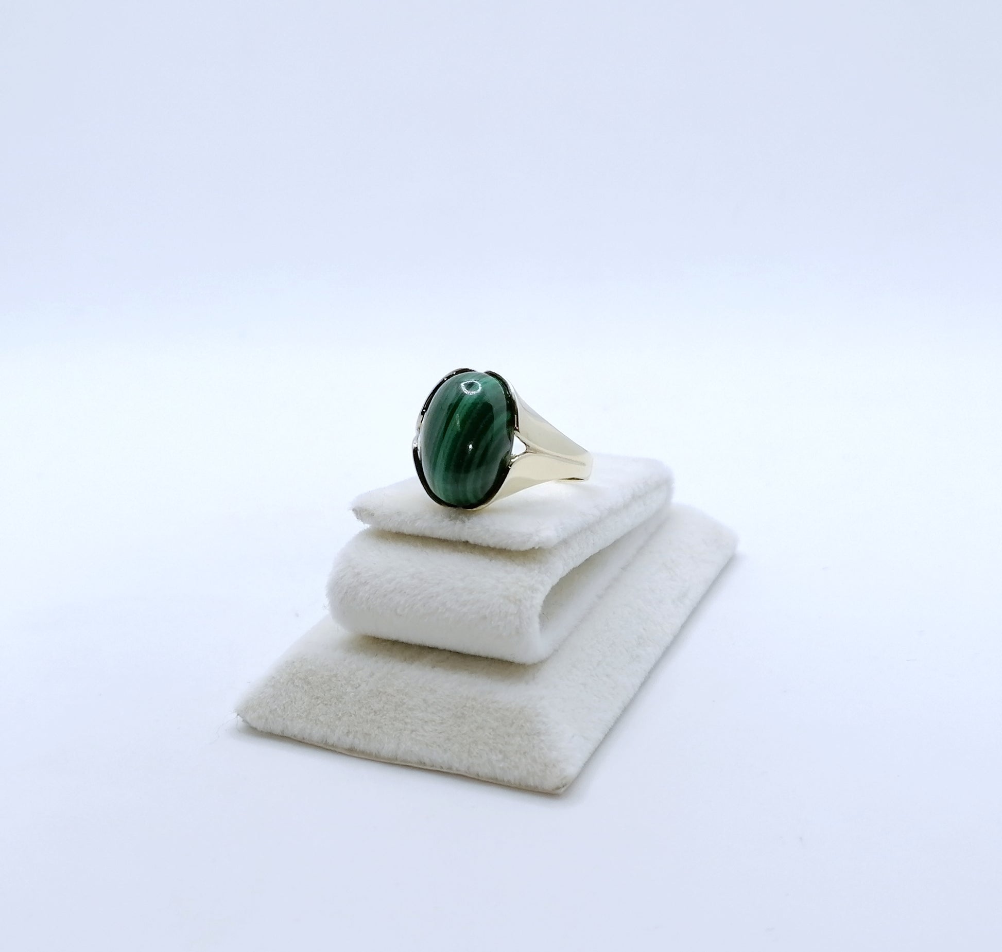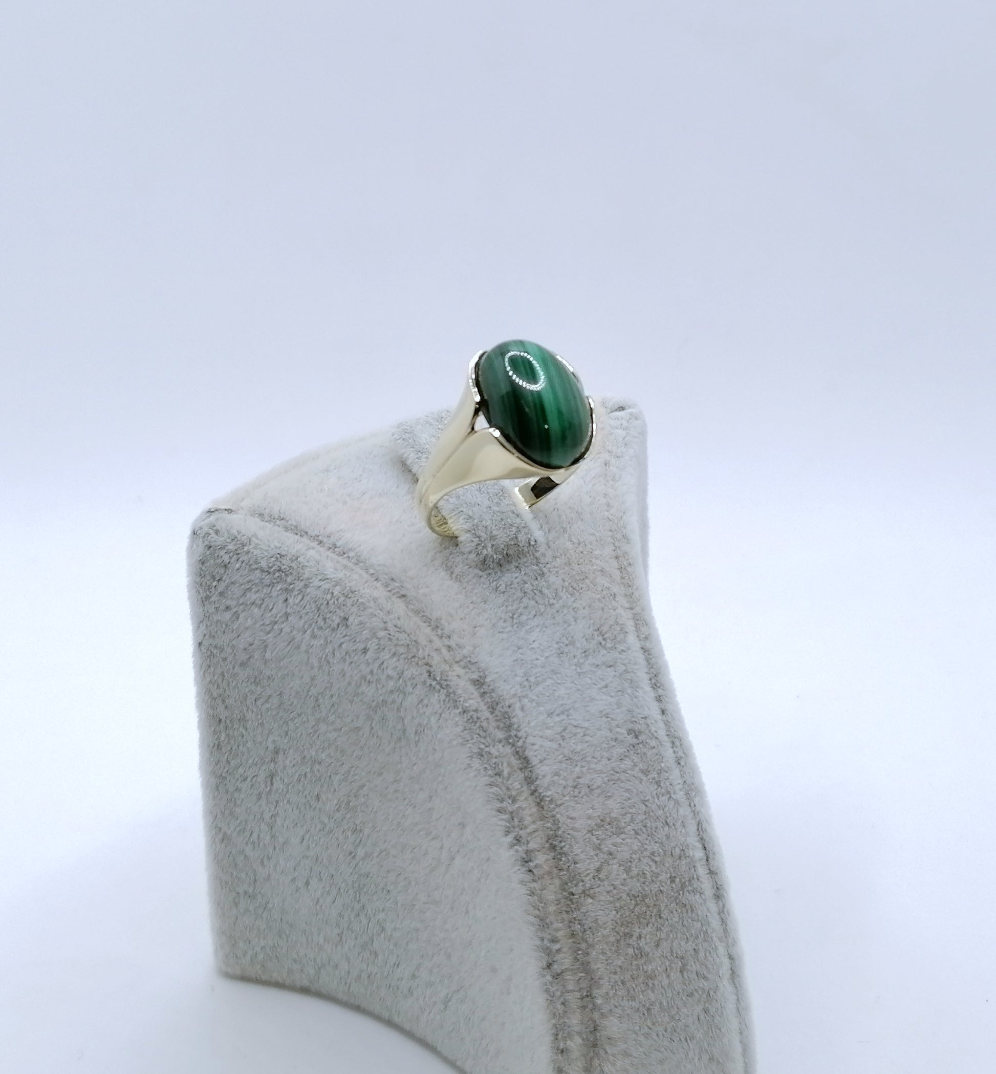 Neuwertiger Gold Damenring mit einem Malachit. Der Ring ist aus 333er 8 Karat Gold gefertigt.