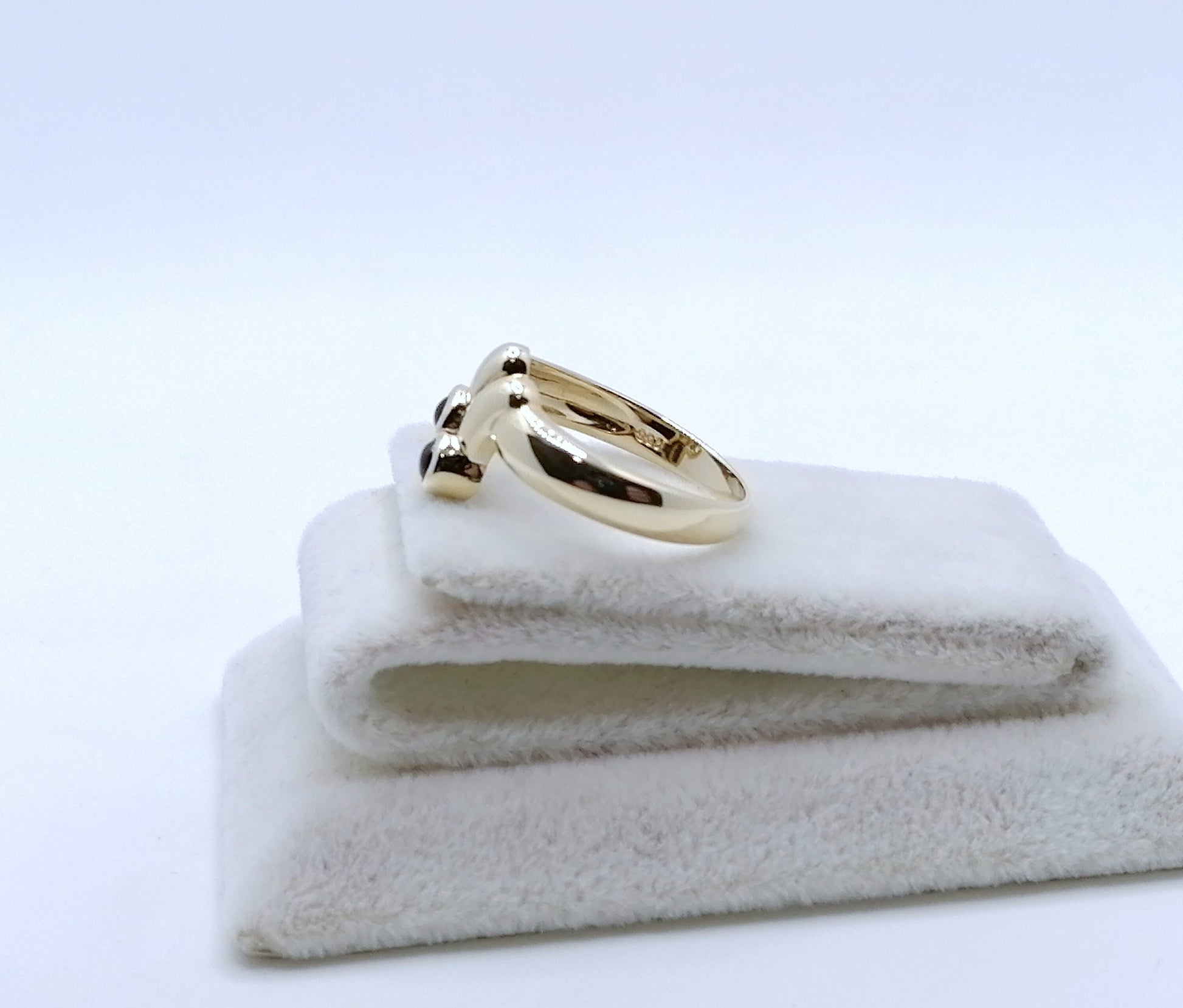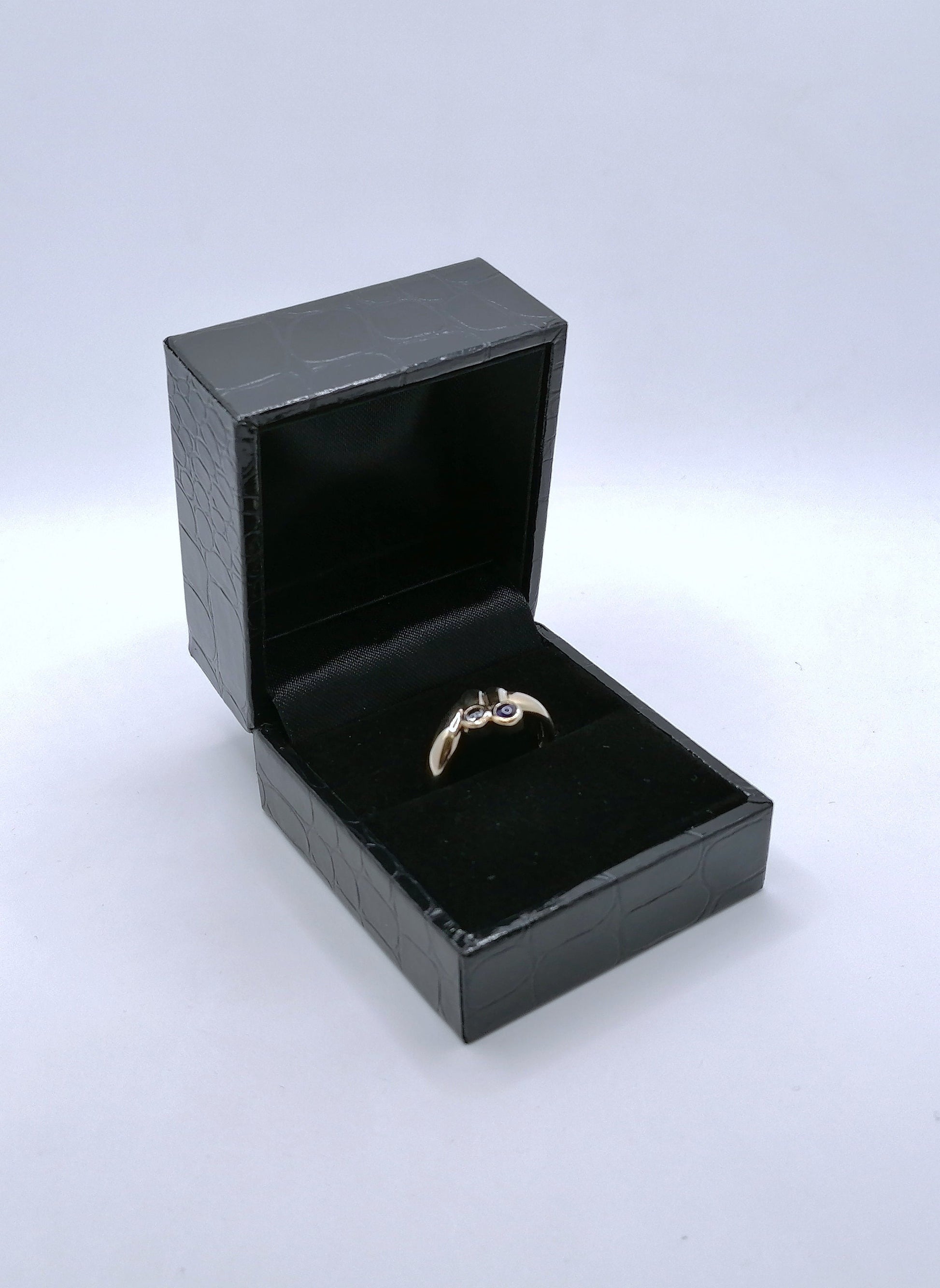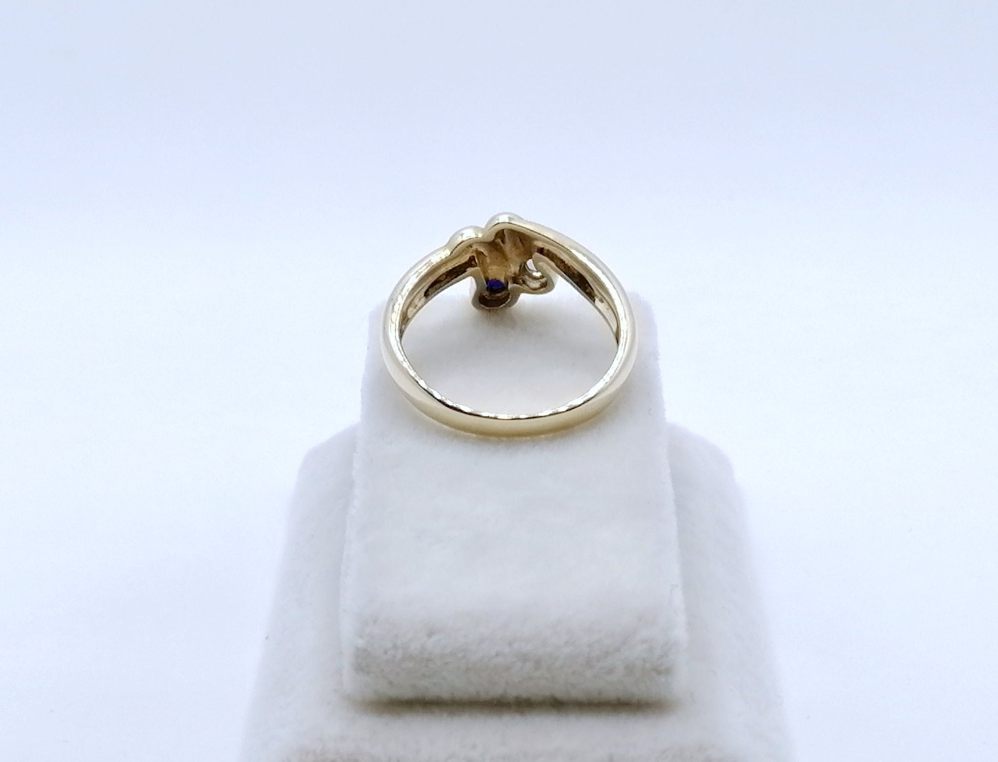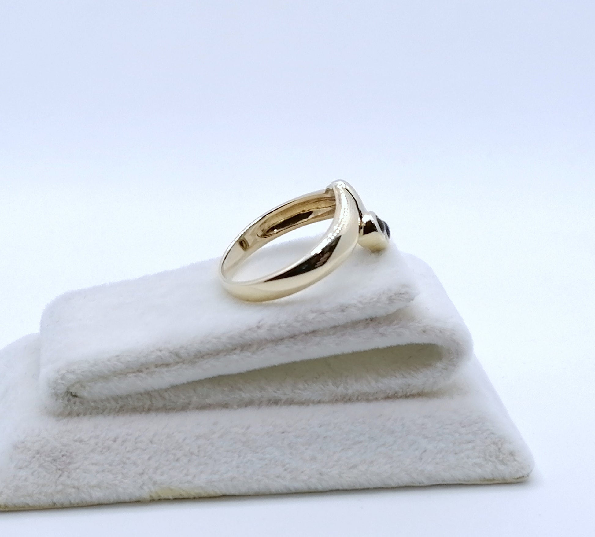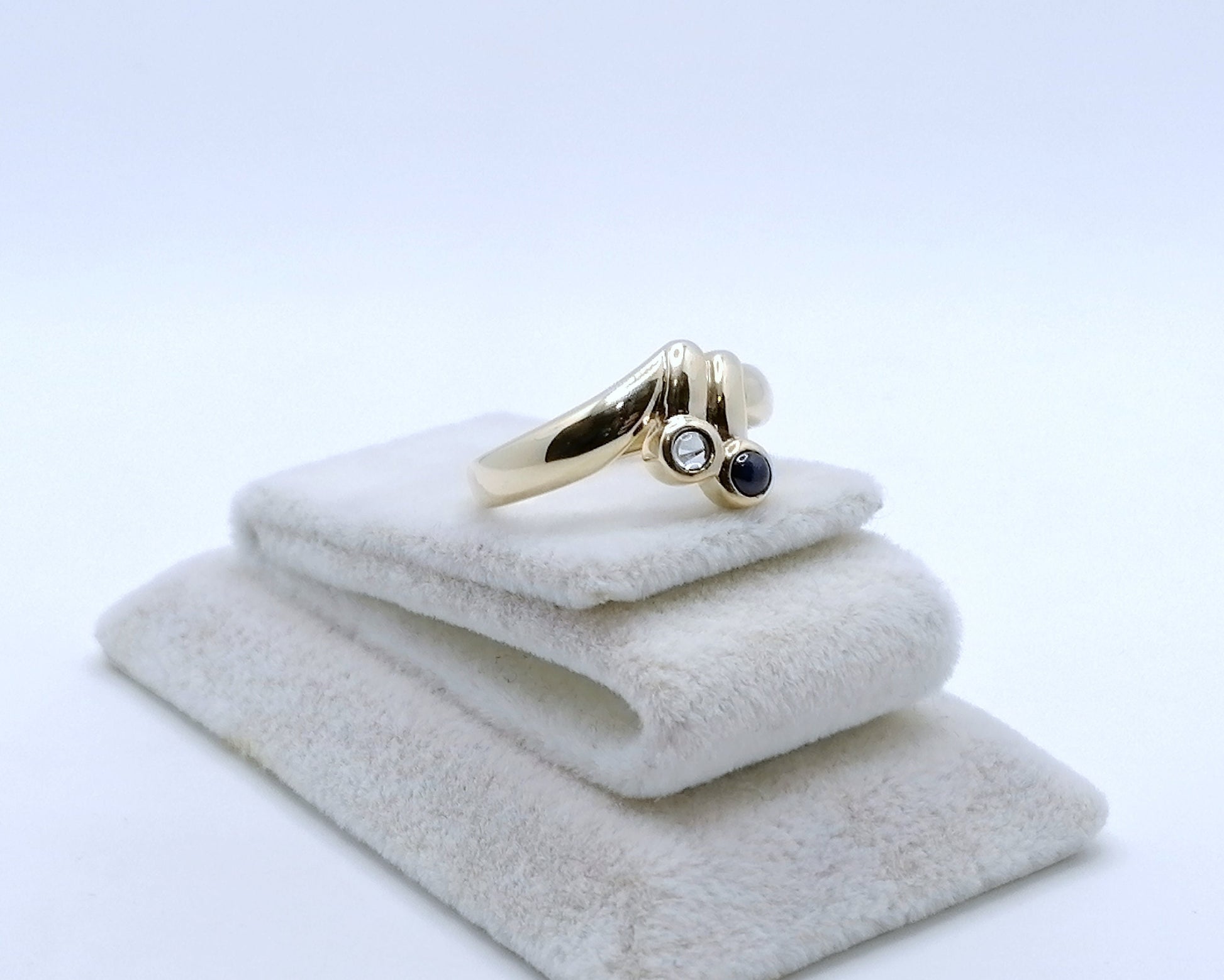 Gold Damenring mit einem Saphir Cabochon und einem Zirkonia. Der Ring ist aus 333er 8 karat Gold gefertigt und wartet gespannt auf seine neue Besitzerin.