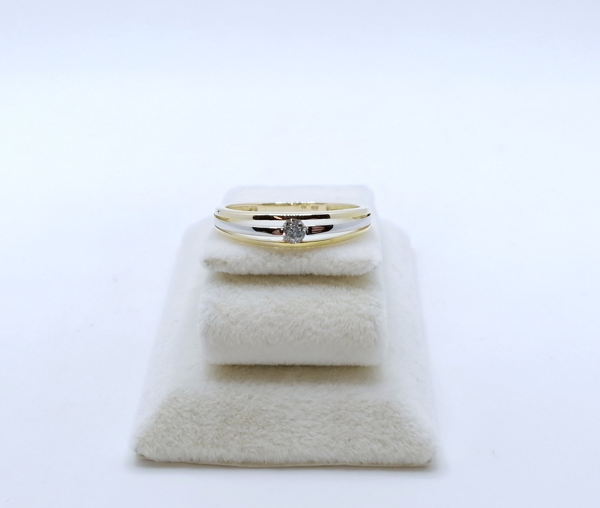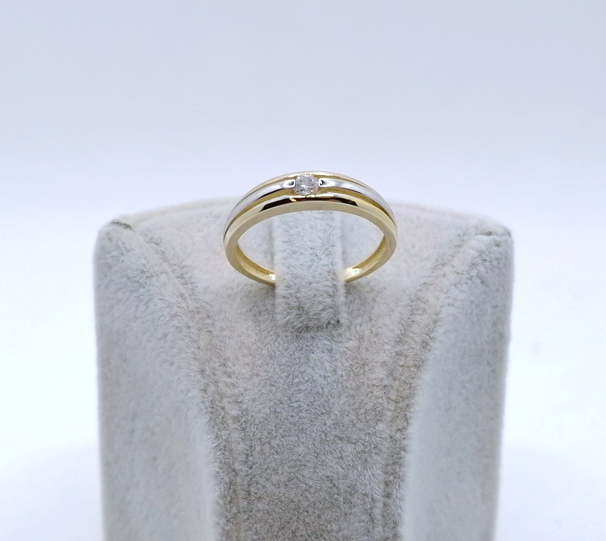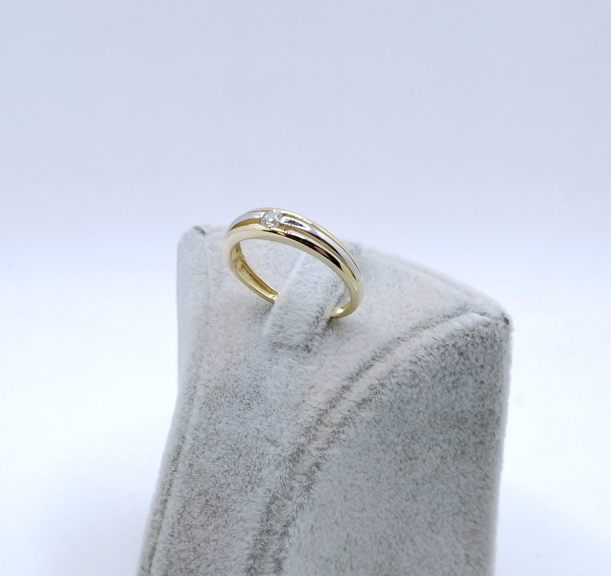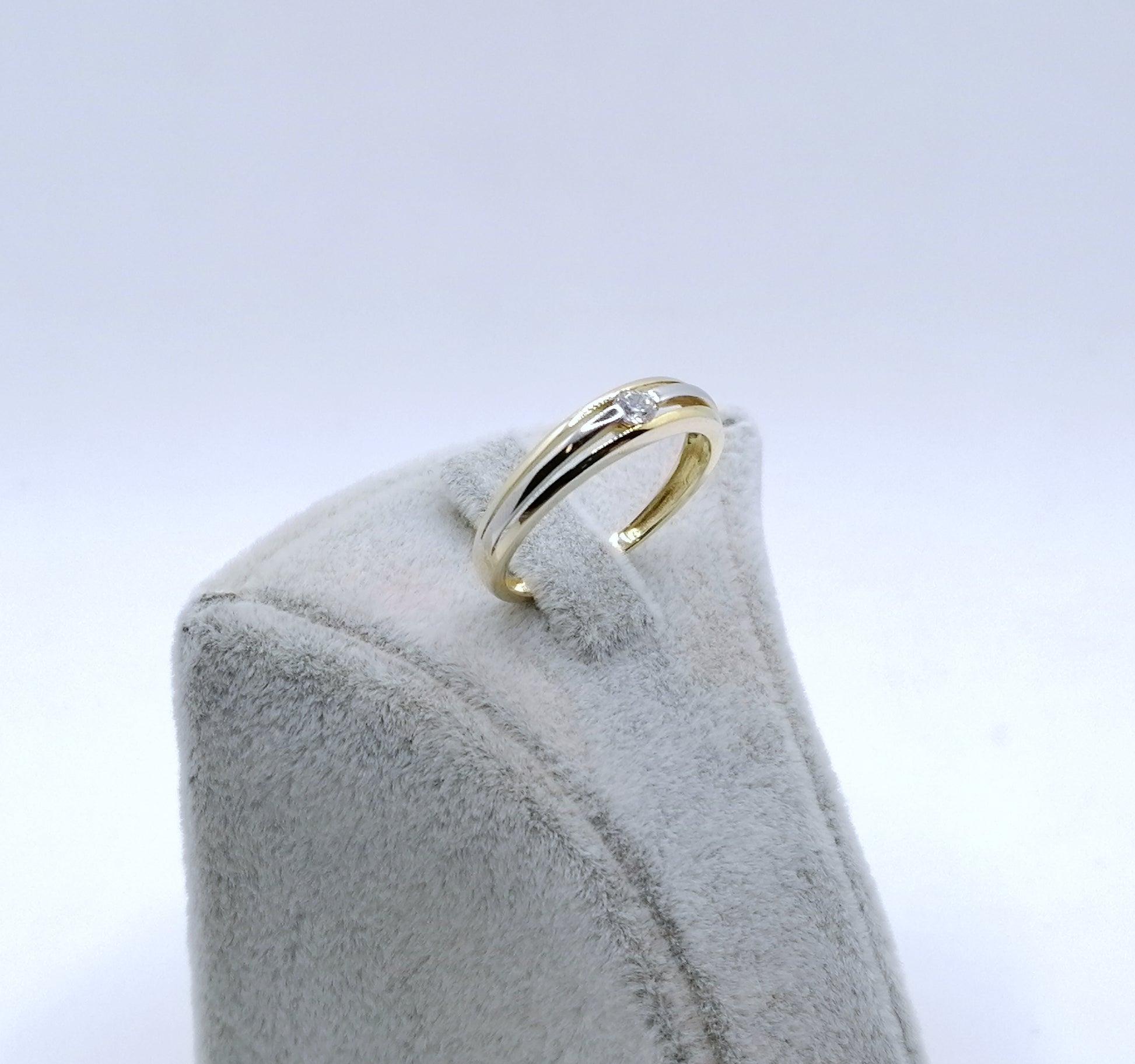 Neuwertiger Gold Damenring mit einem funkelnden Zirkonia. Der Ring ist aus 333er 8 Karat Gelbgold und Weißgold gefertigt.