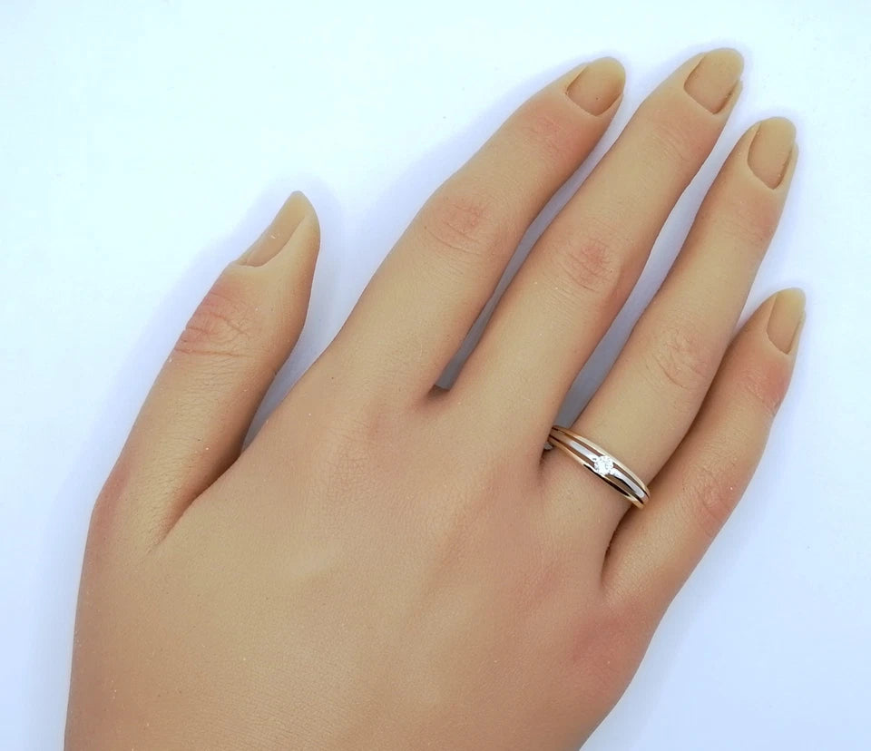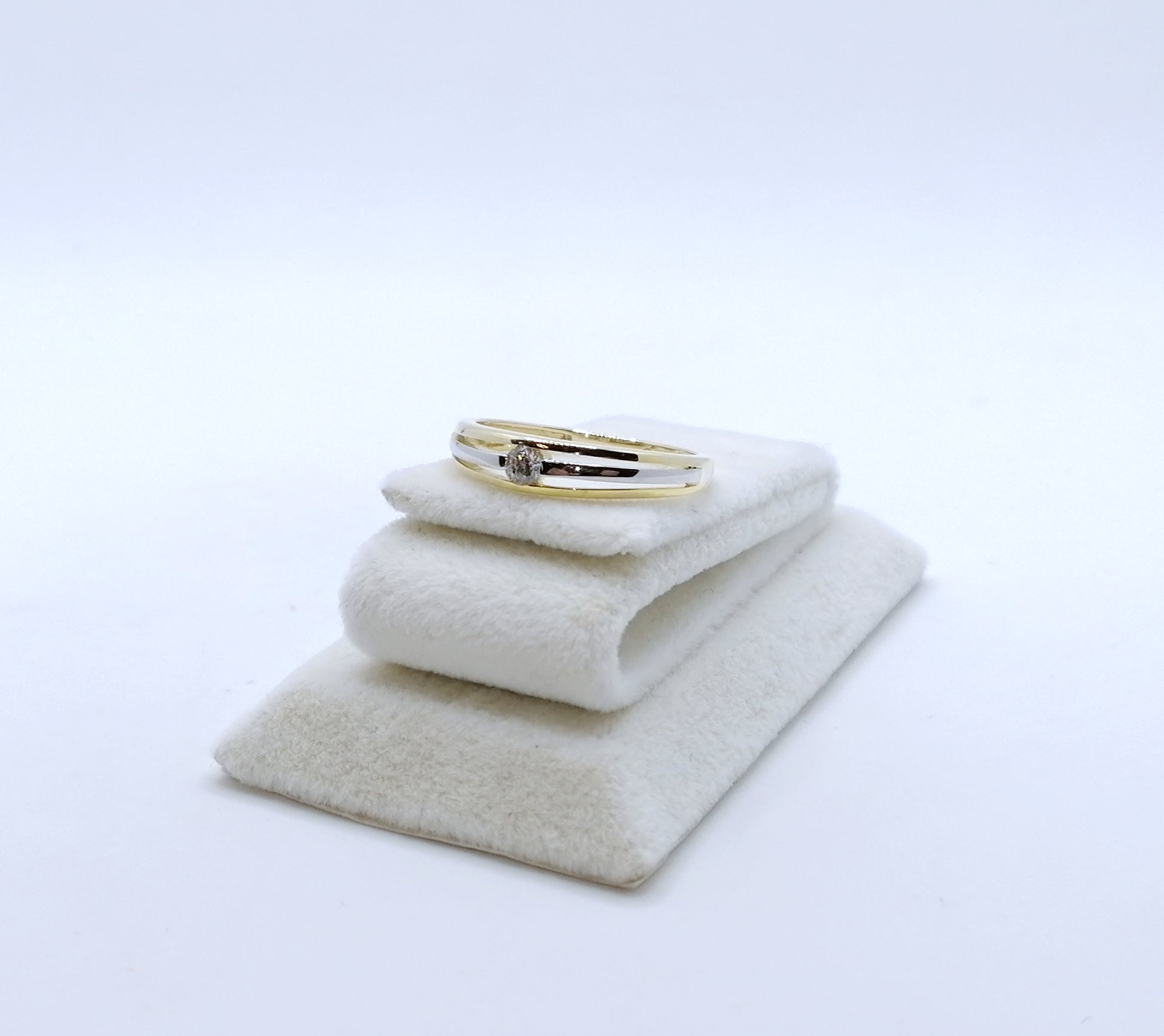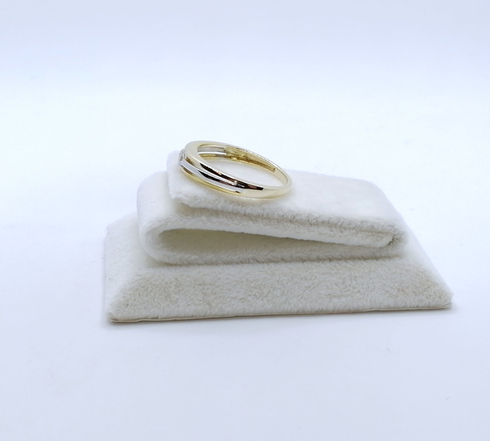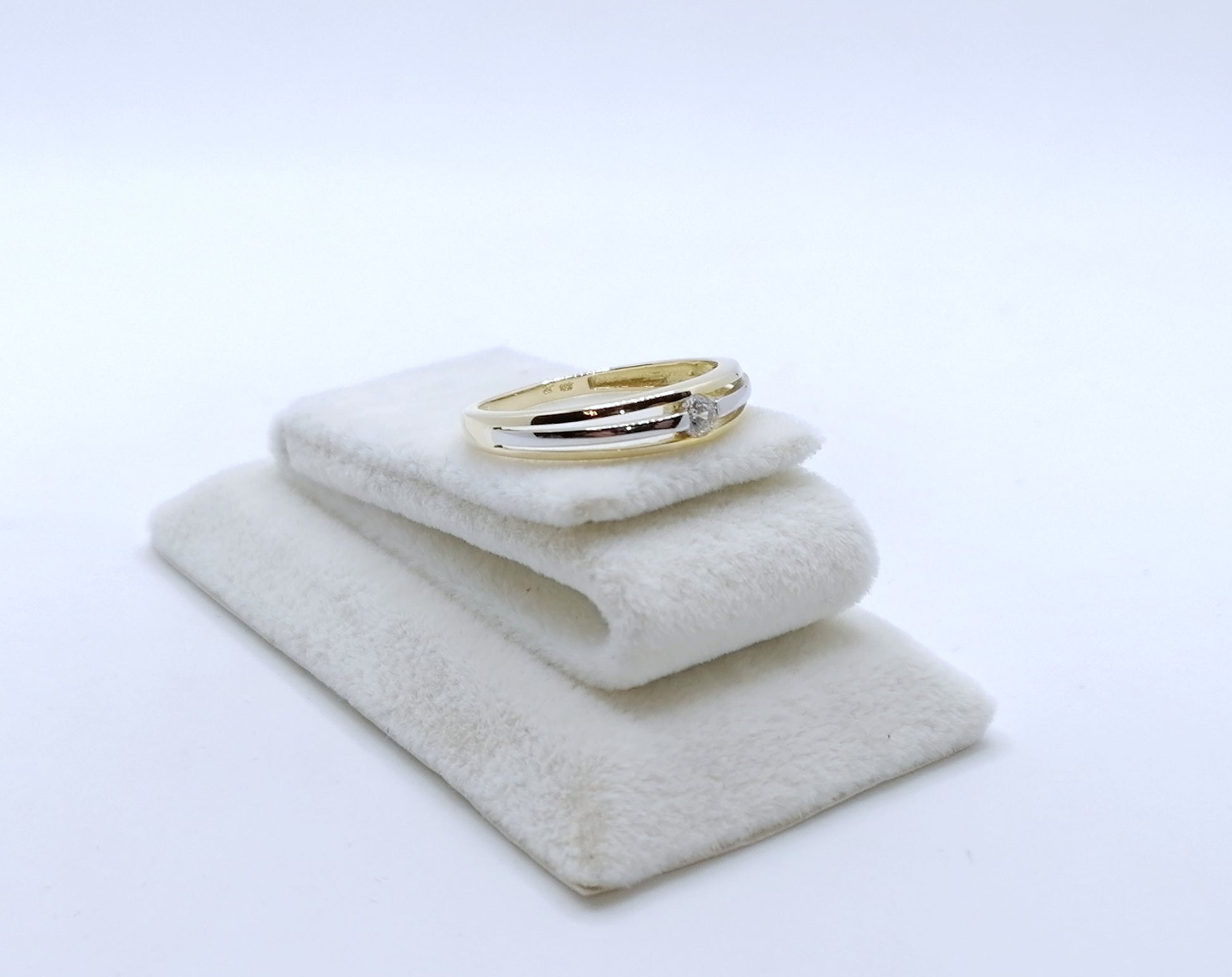 Neuwertiger Gold Damenring mit einem funkelnden Zirkonia. Der Ring ist aus 333er 8 Karat Gelbgold und Weißgold gefertigt.
