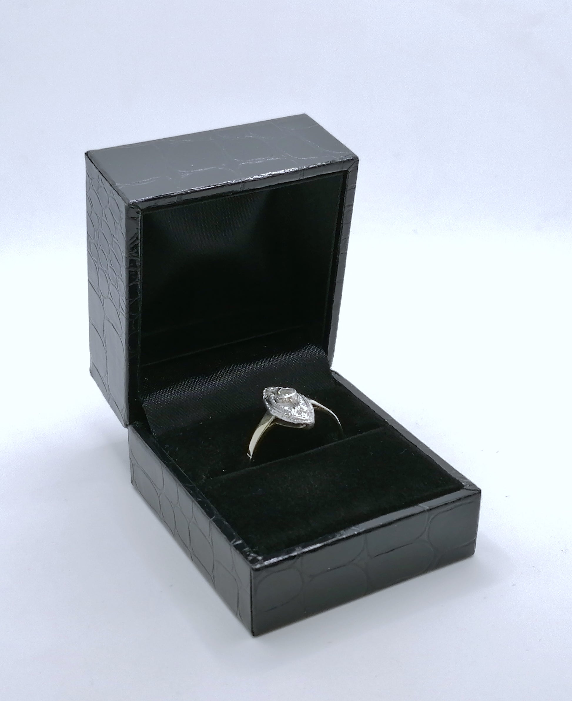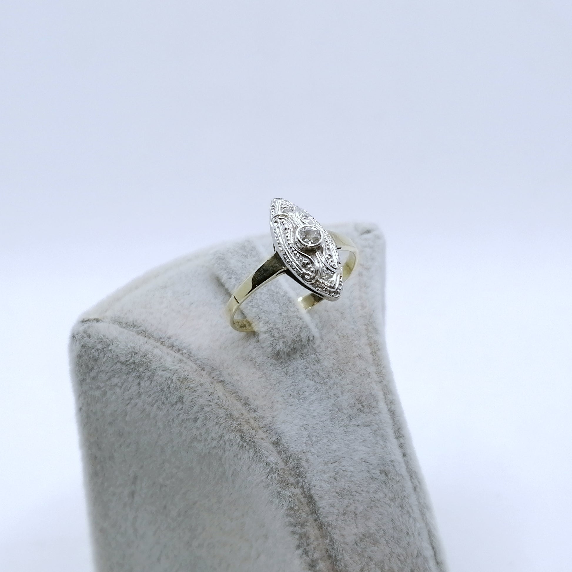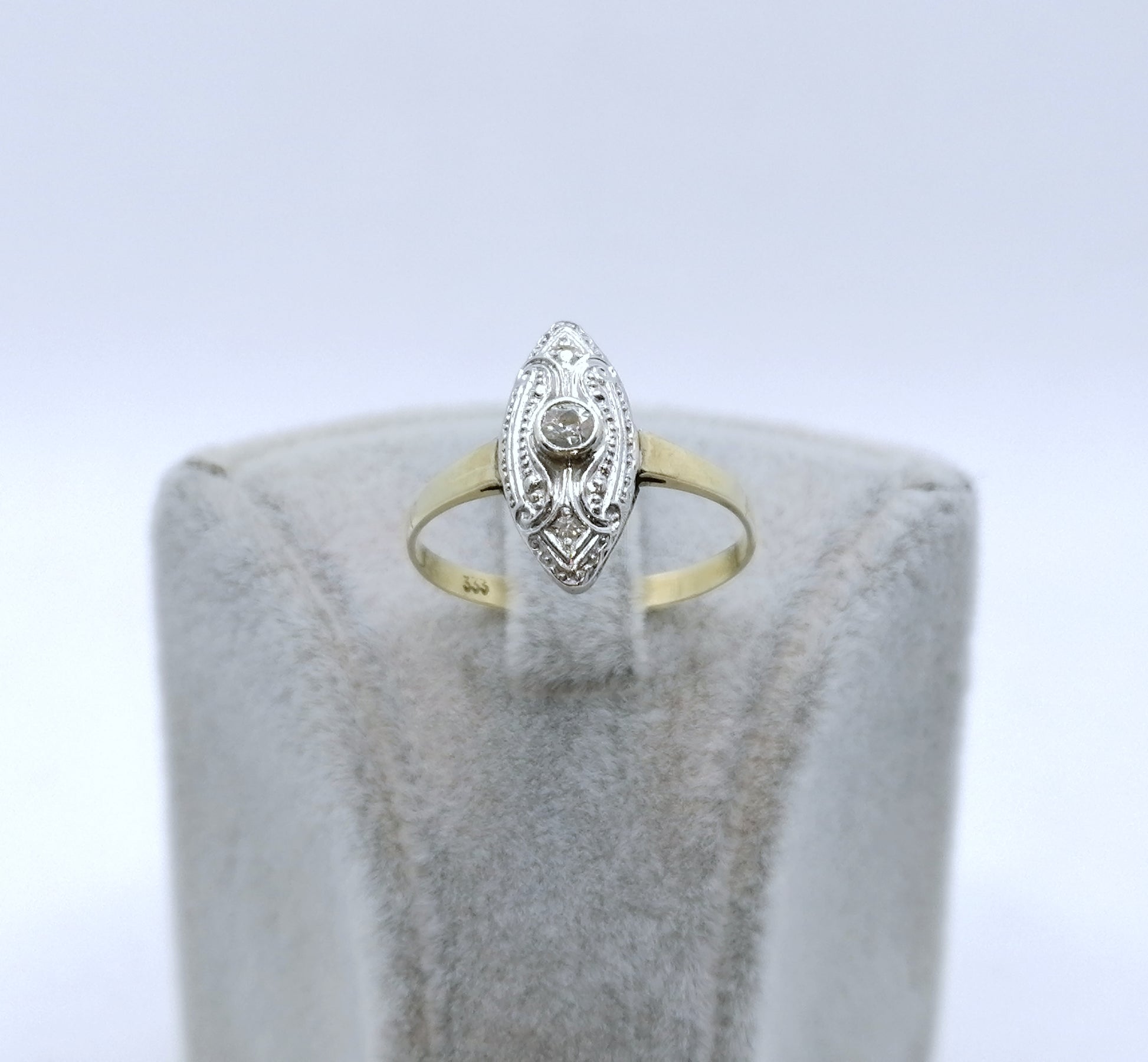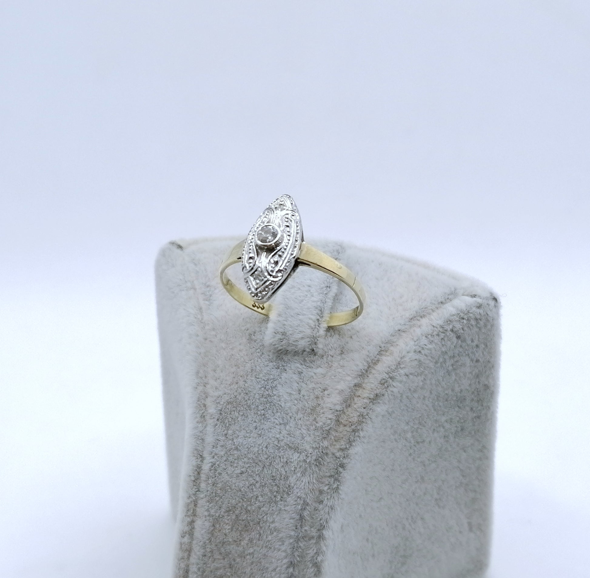 Art Artdeco Gold Damenring mit funkelnden Zirkonia. Der Ring ist aus 333er 8 Karat Gold gefertigt.