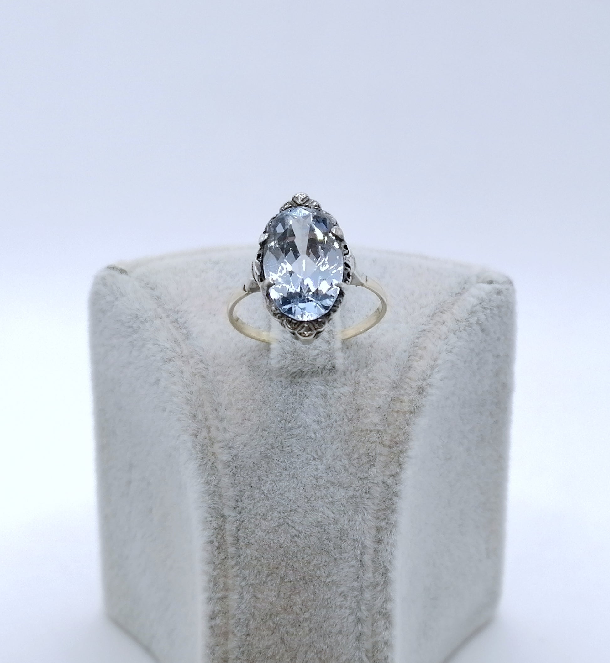 Ring Gold 333er und Silber Art Deco Spinell Damenring Gr. 53