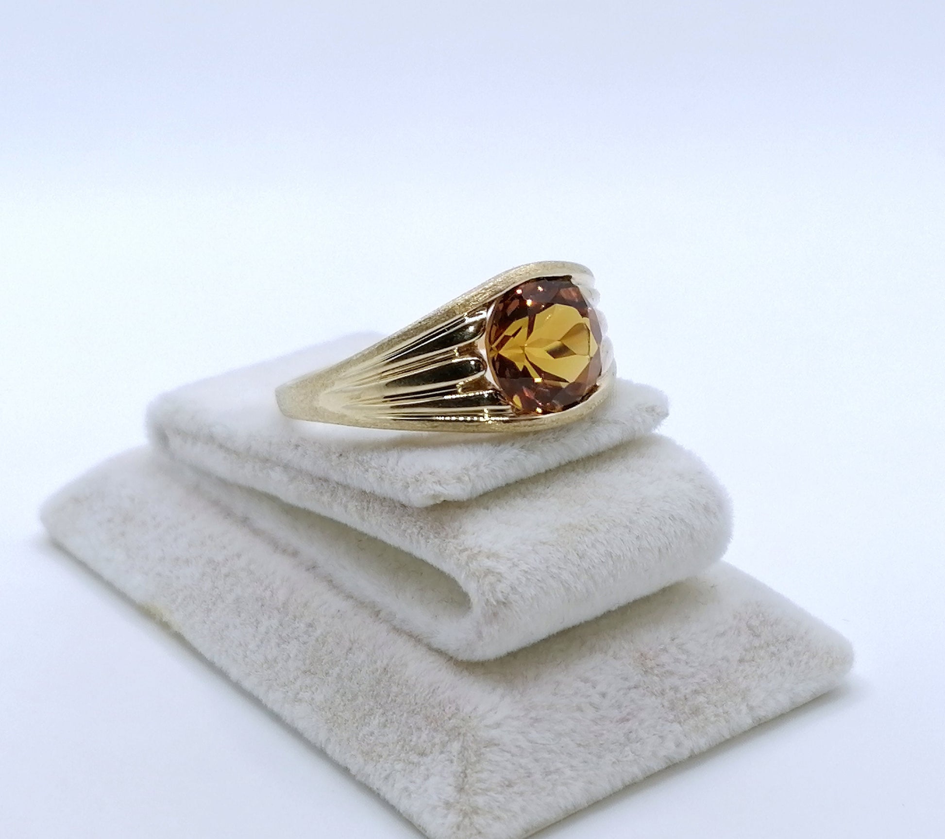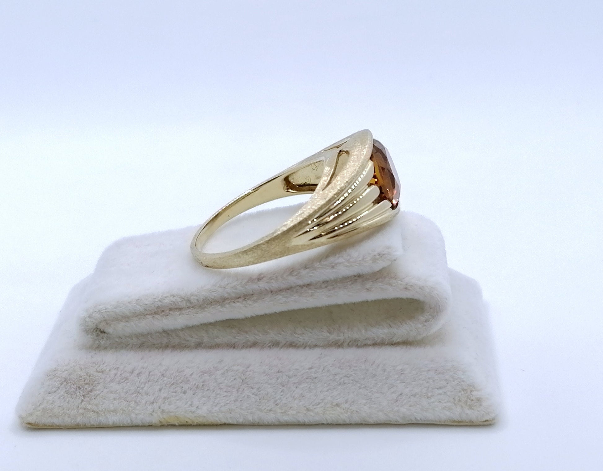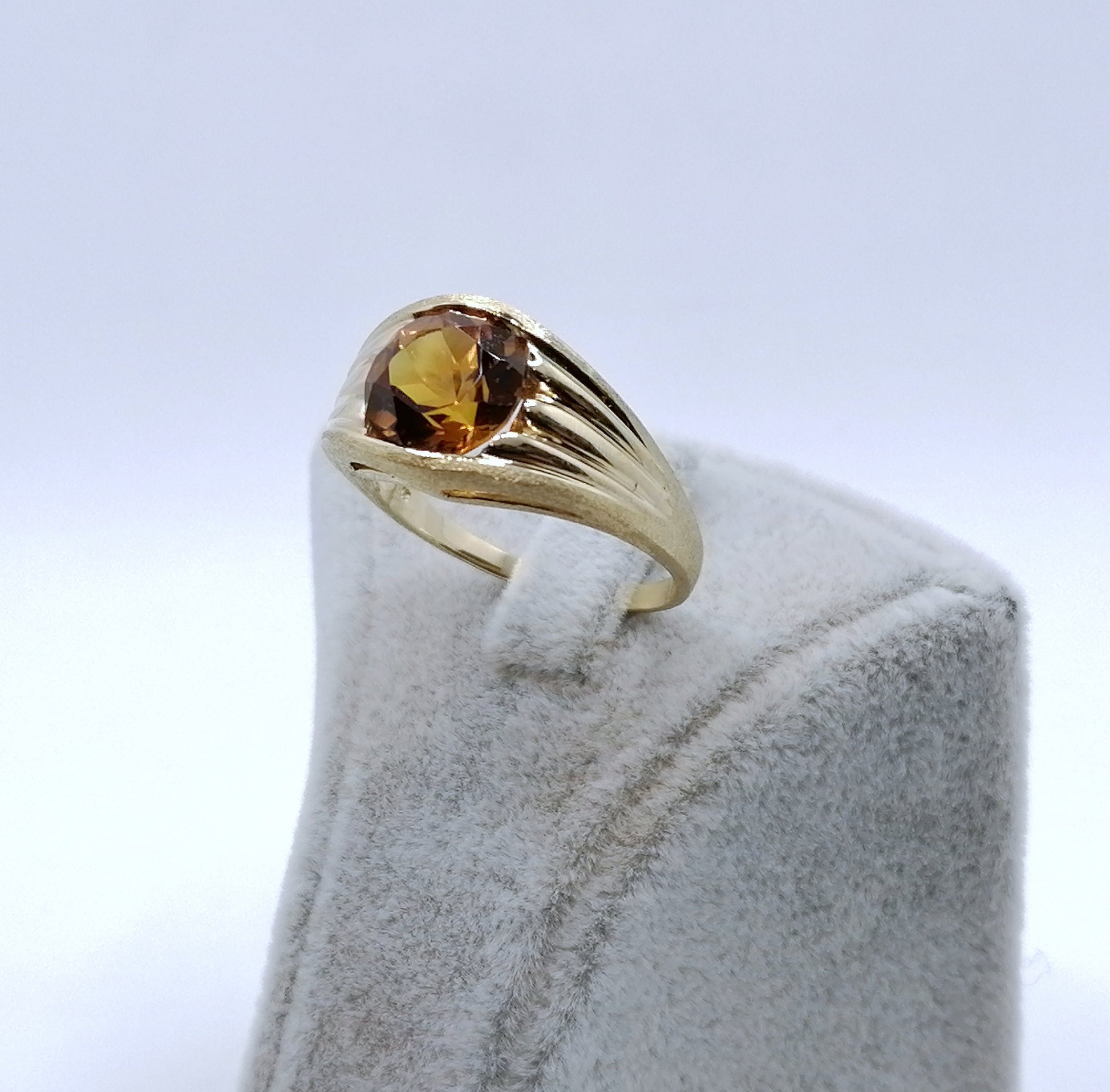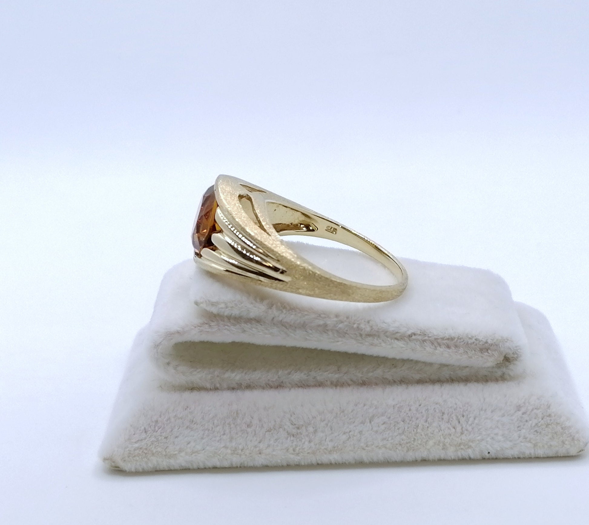 Gold Damenring mit einem Citrin / Sonnen Amethyst. Der Ring ist aus 375er 9 Karat Gold gefertigt und teils in Hochglanz teils Matt verarbeitet.