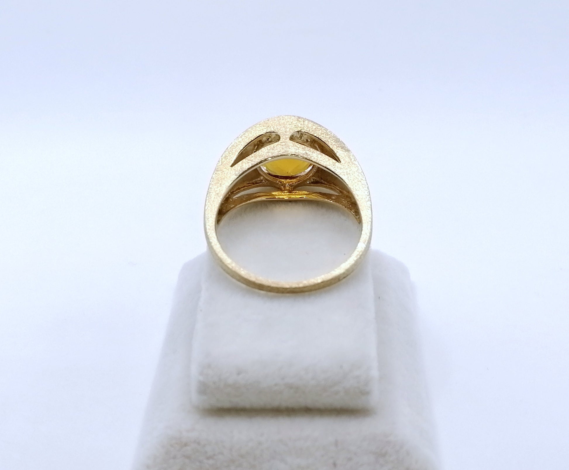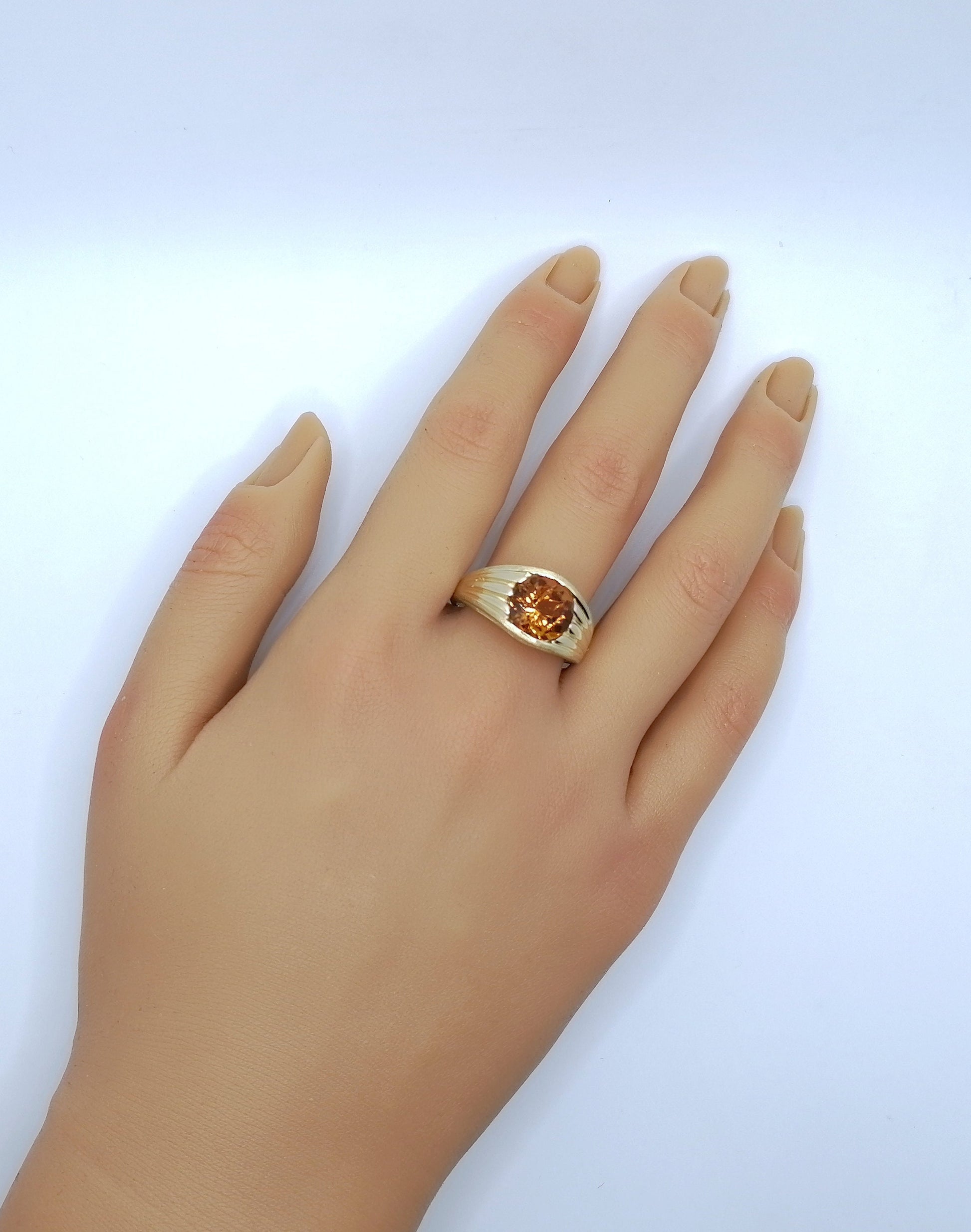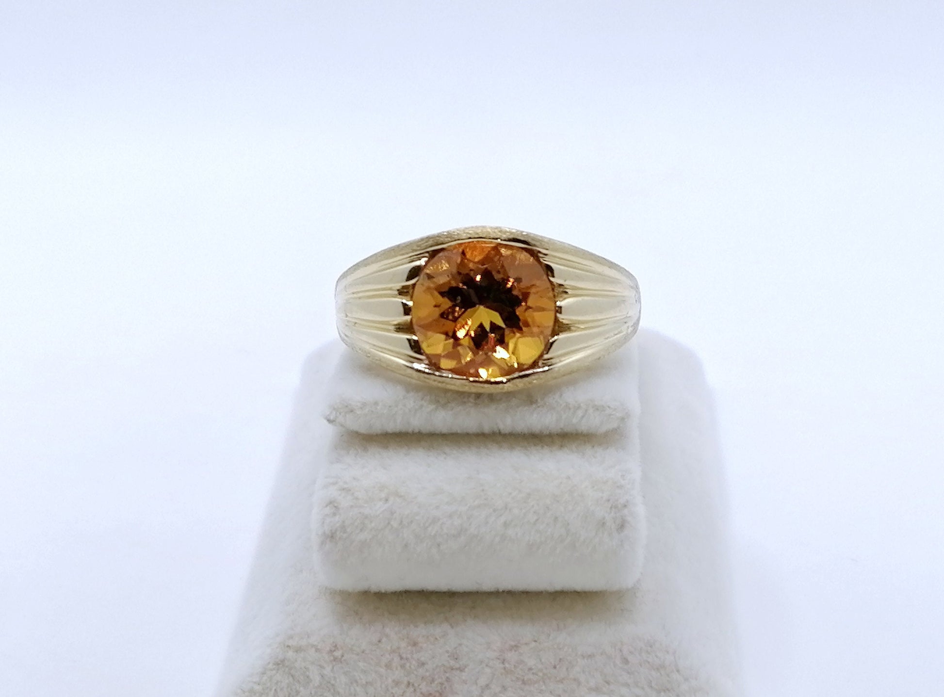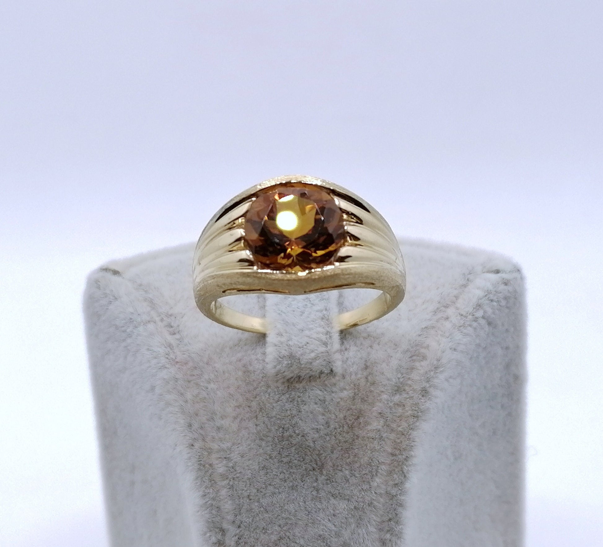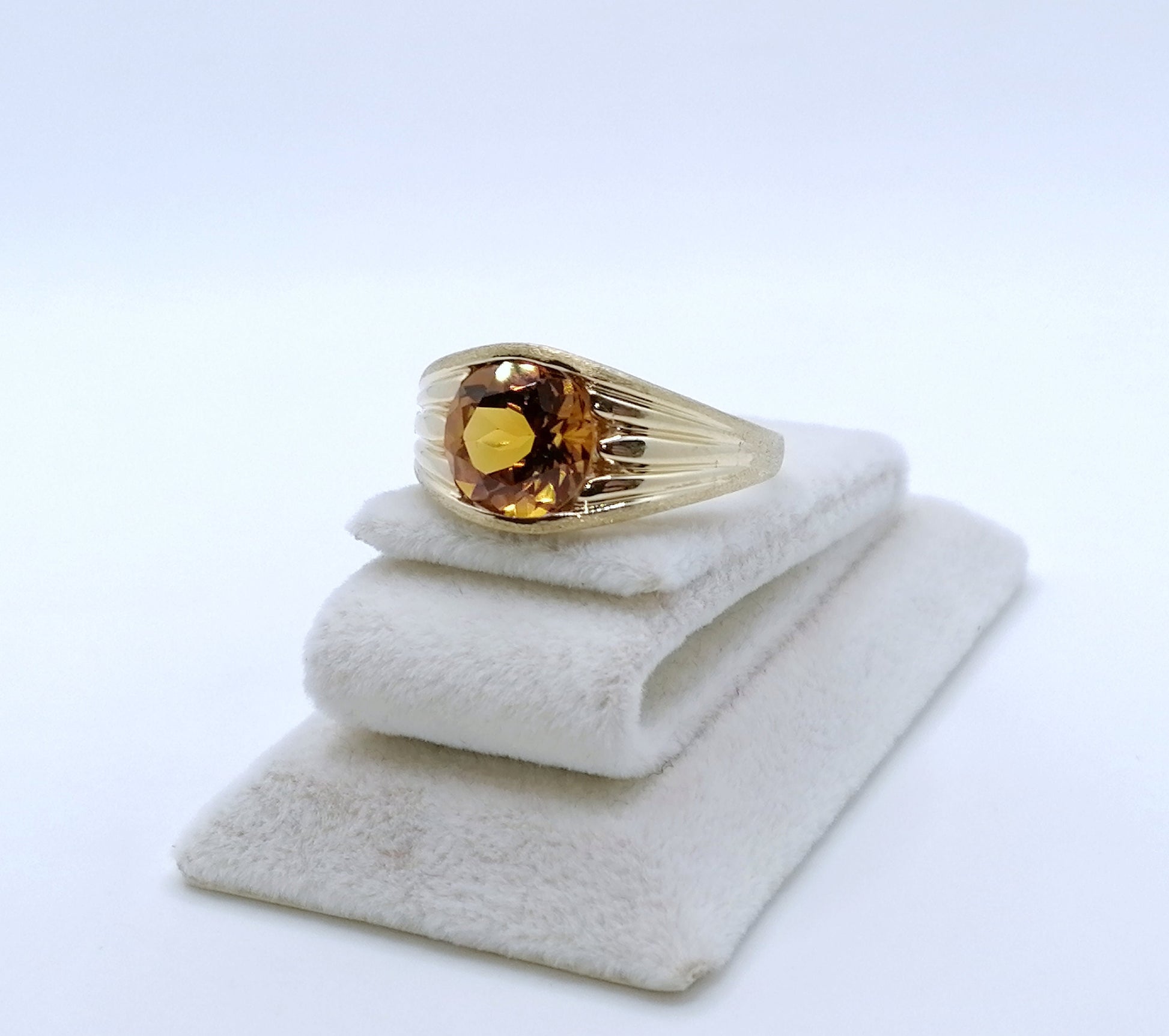 Gold Damenring mit einem Citrin / Sonnen Amethyst. Der Ring ist aus 375er 9 Karat Gold gefertigt und teils in Hochglanz teils Matt verarbeitet.