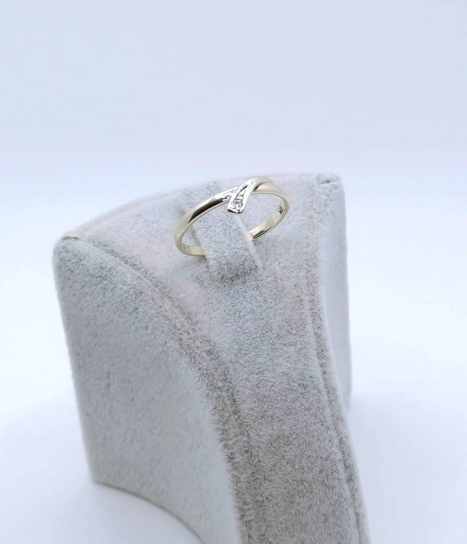 Ein feiner gold Damenring mit einem kleinen funkelnden Zirkonia. Dieses Schmuckstück ist aus 375er 9 Karat Gold gefertigt und wartet gespannt auf seine neue Besitzerin.