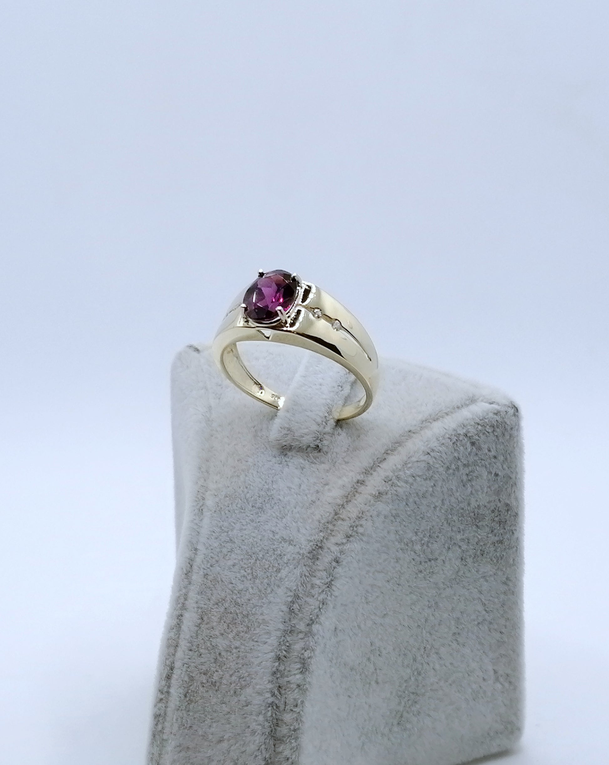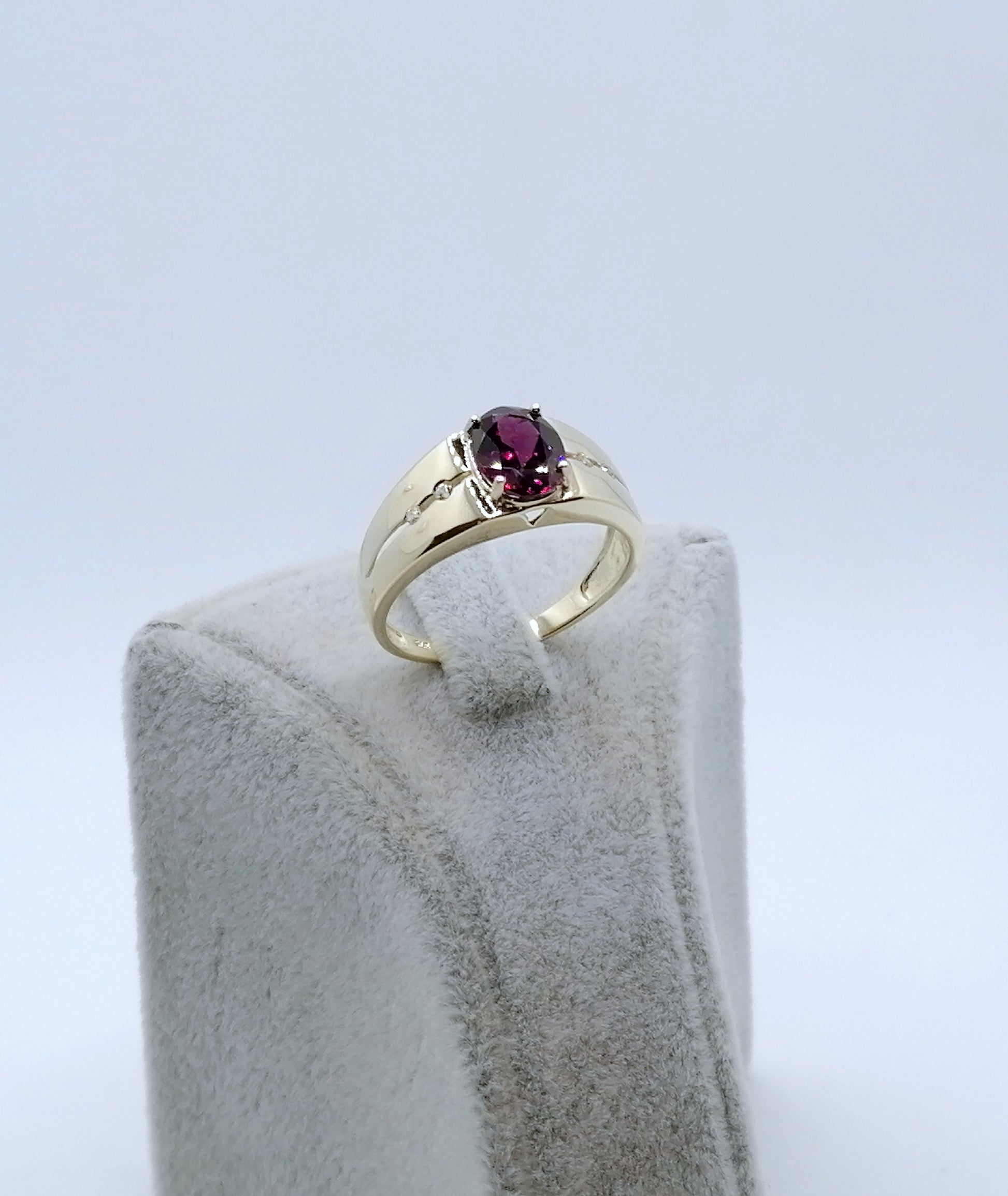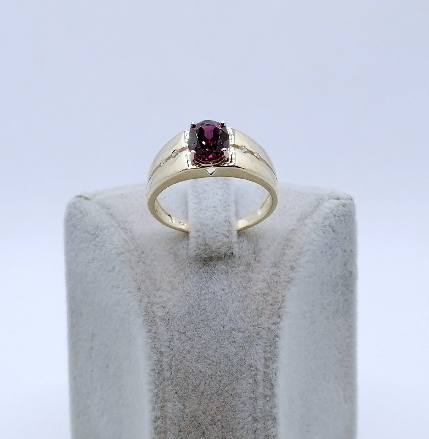 Ring Gold 375er mit Rhodolith Granat und Diamanten Gr. 63