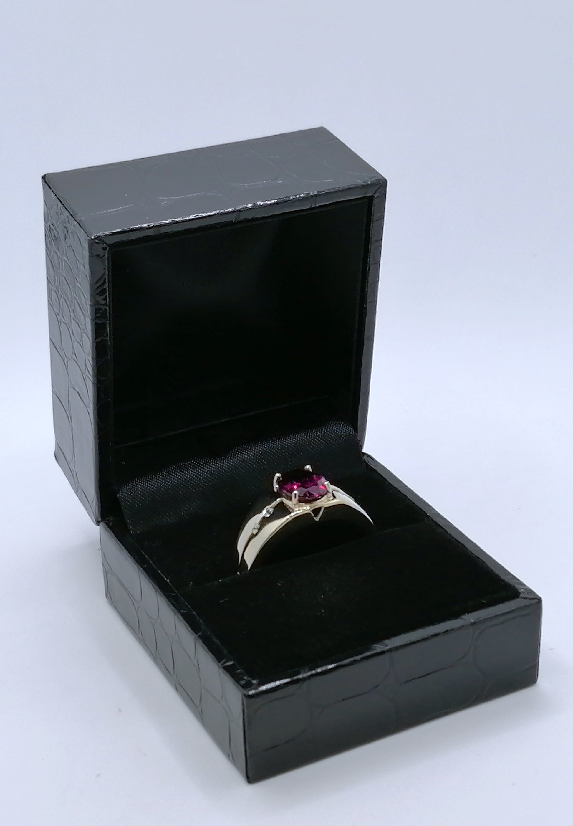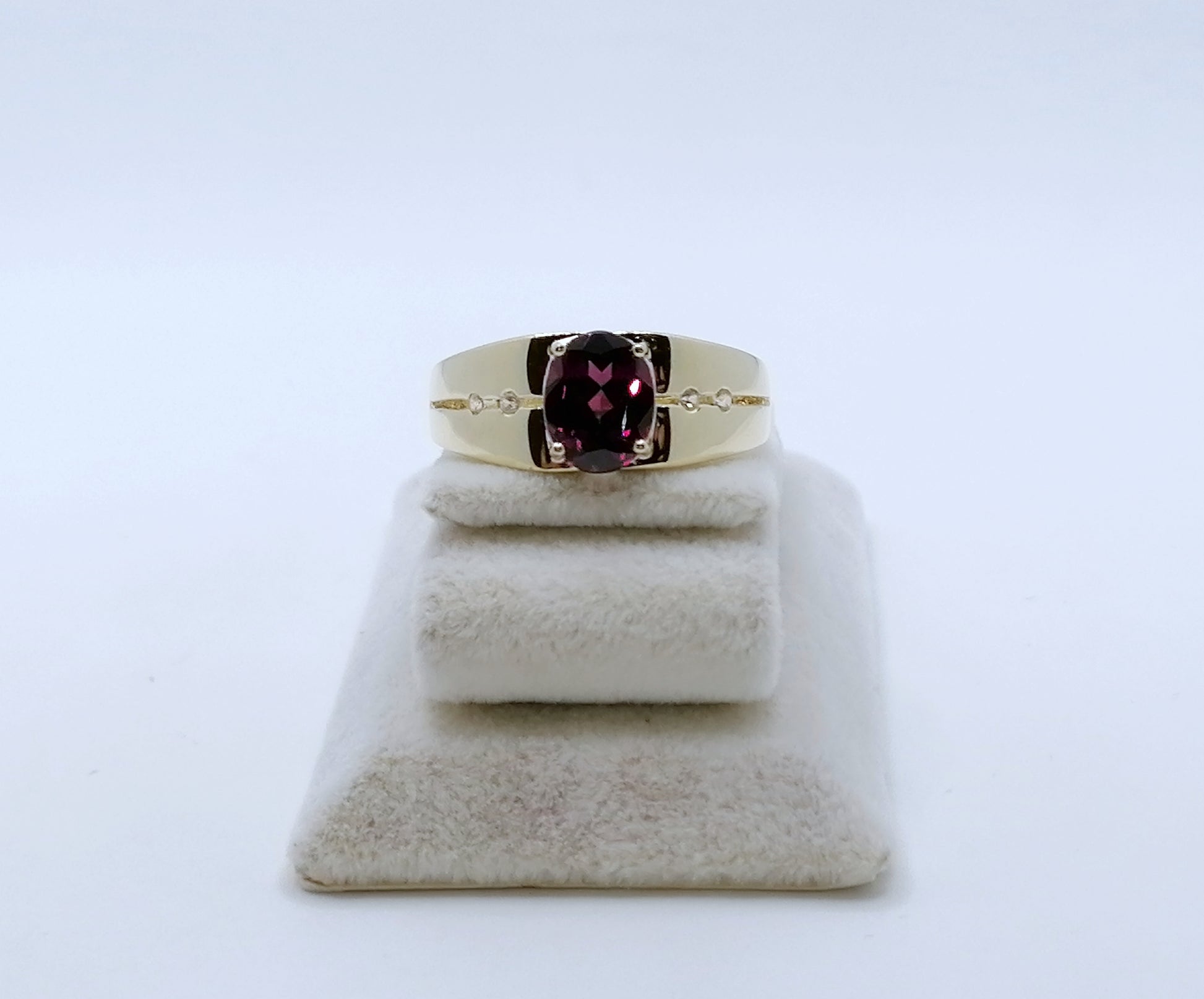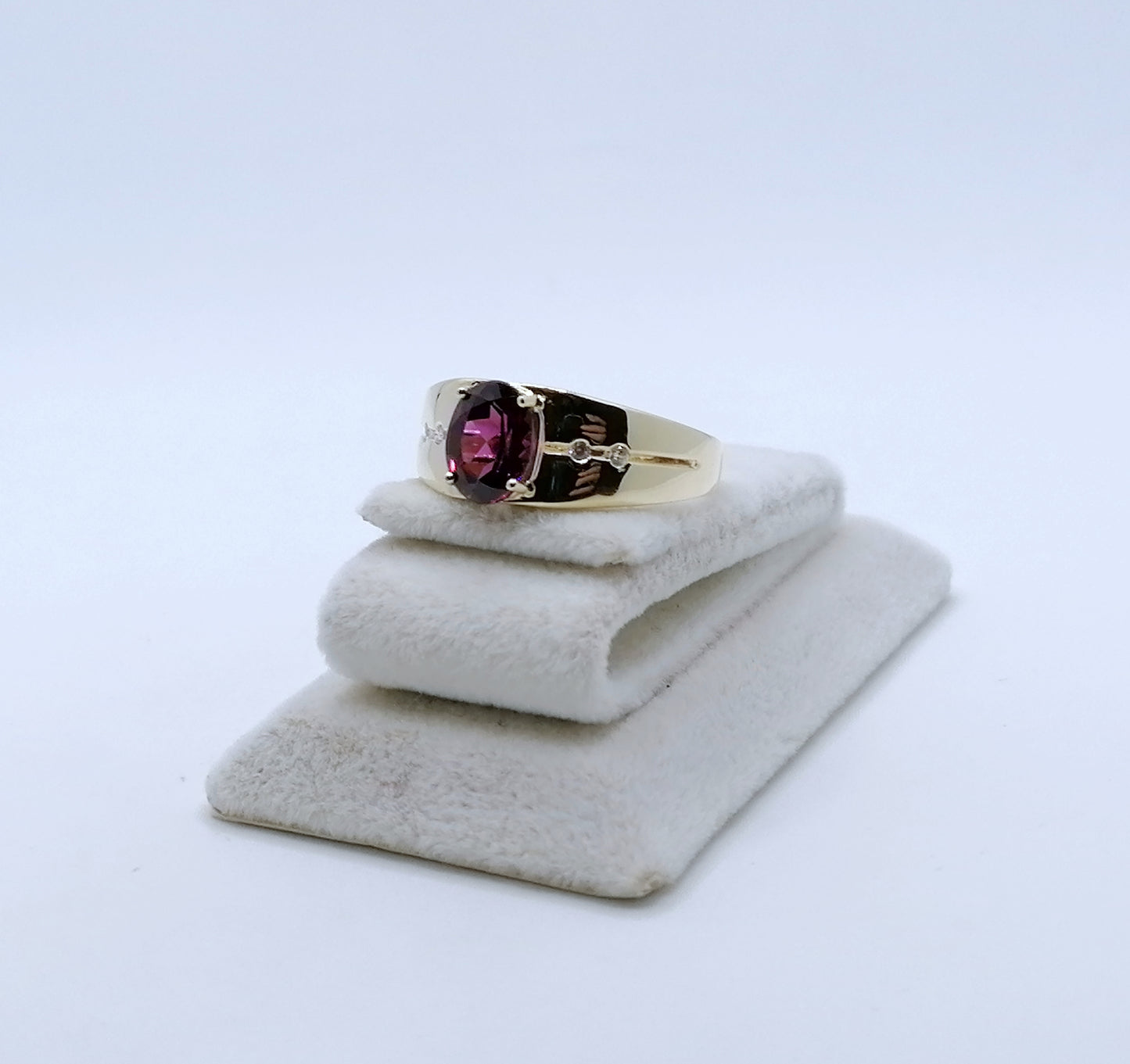 Ring Gold 375er mit Rhodolith Granat und Diamanten Gr. 63