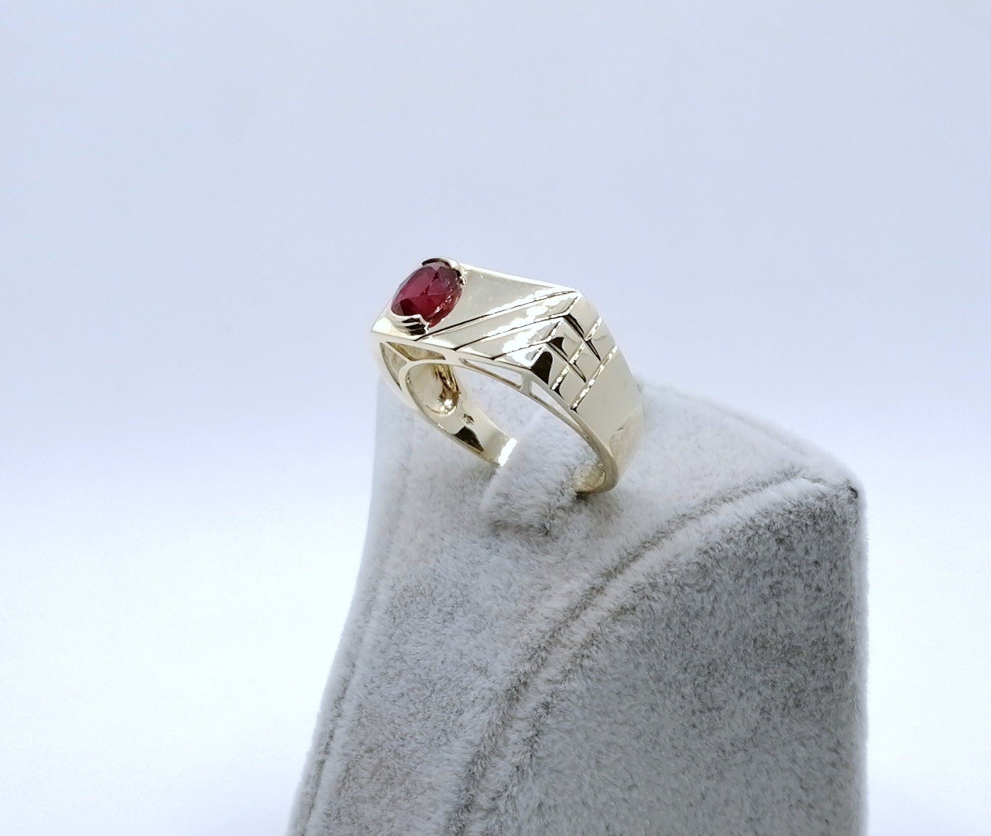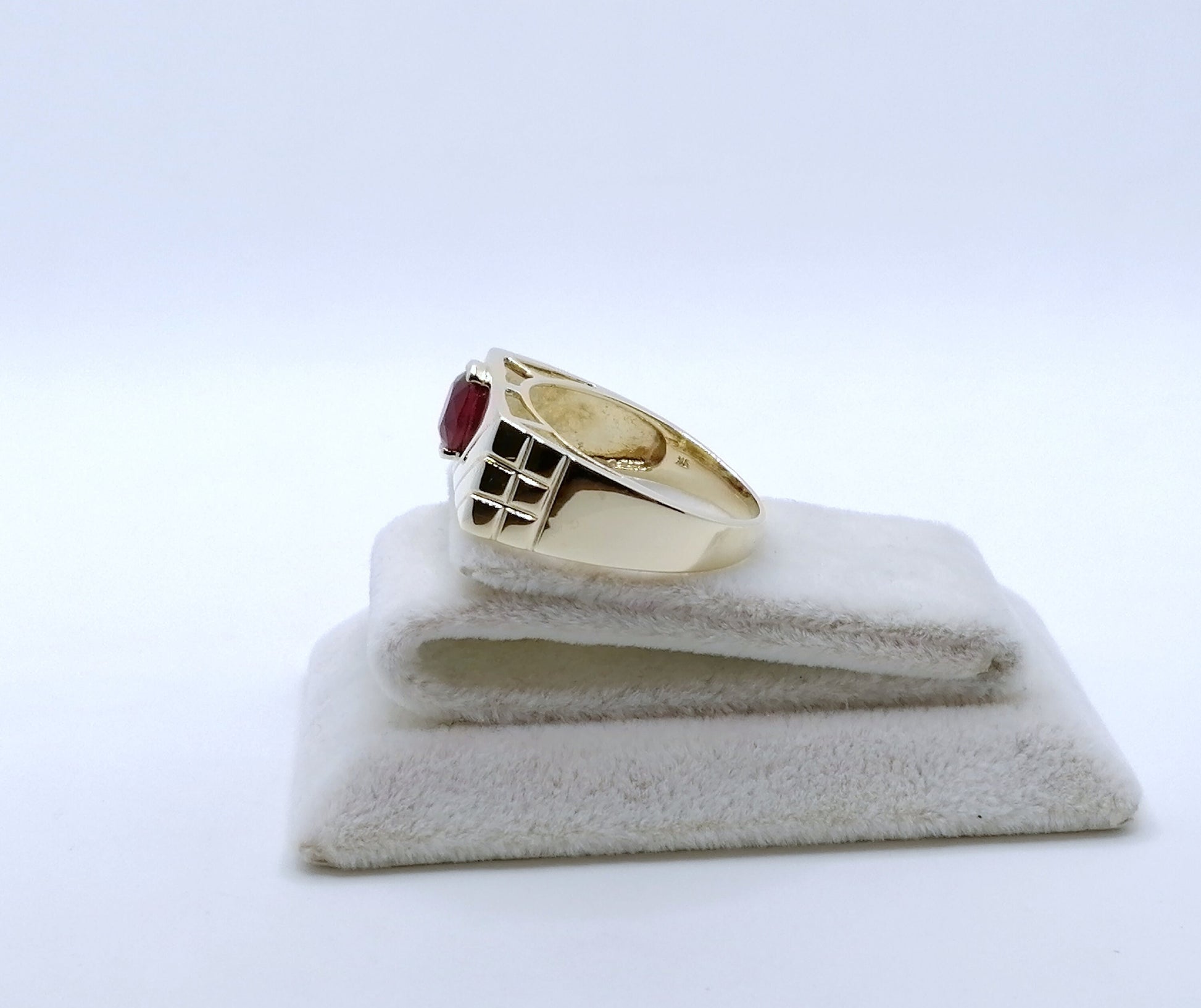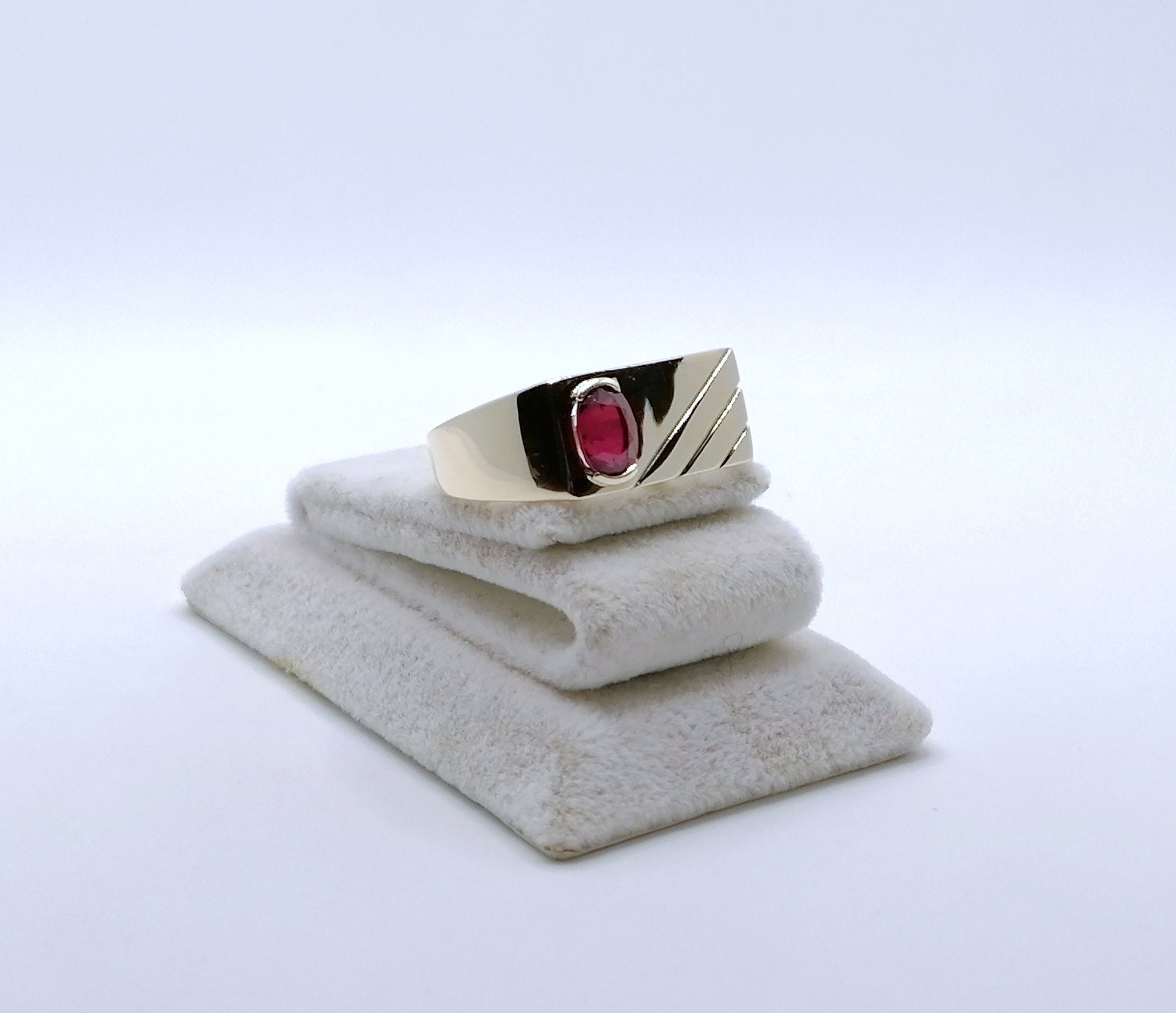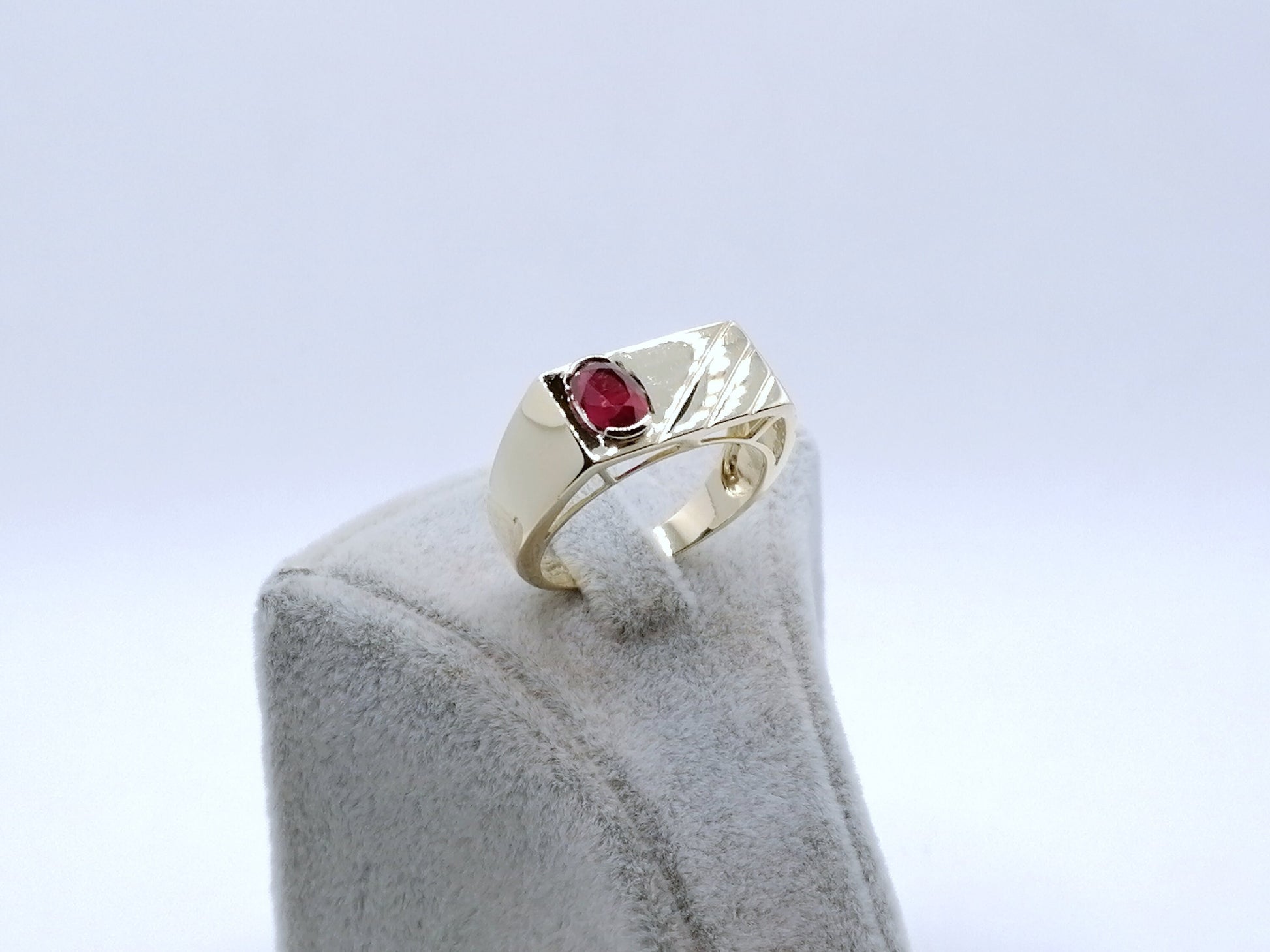 Gold Siegelring mit einem Rubin Edelstein. Der Ring ist aus 375er 9 Karat Gold gefertigt.