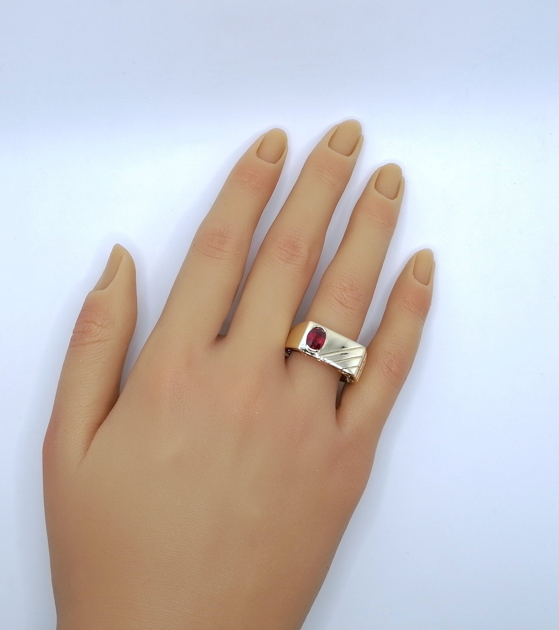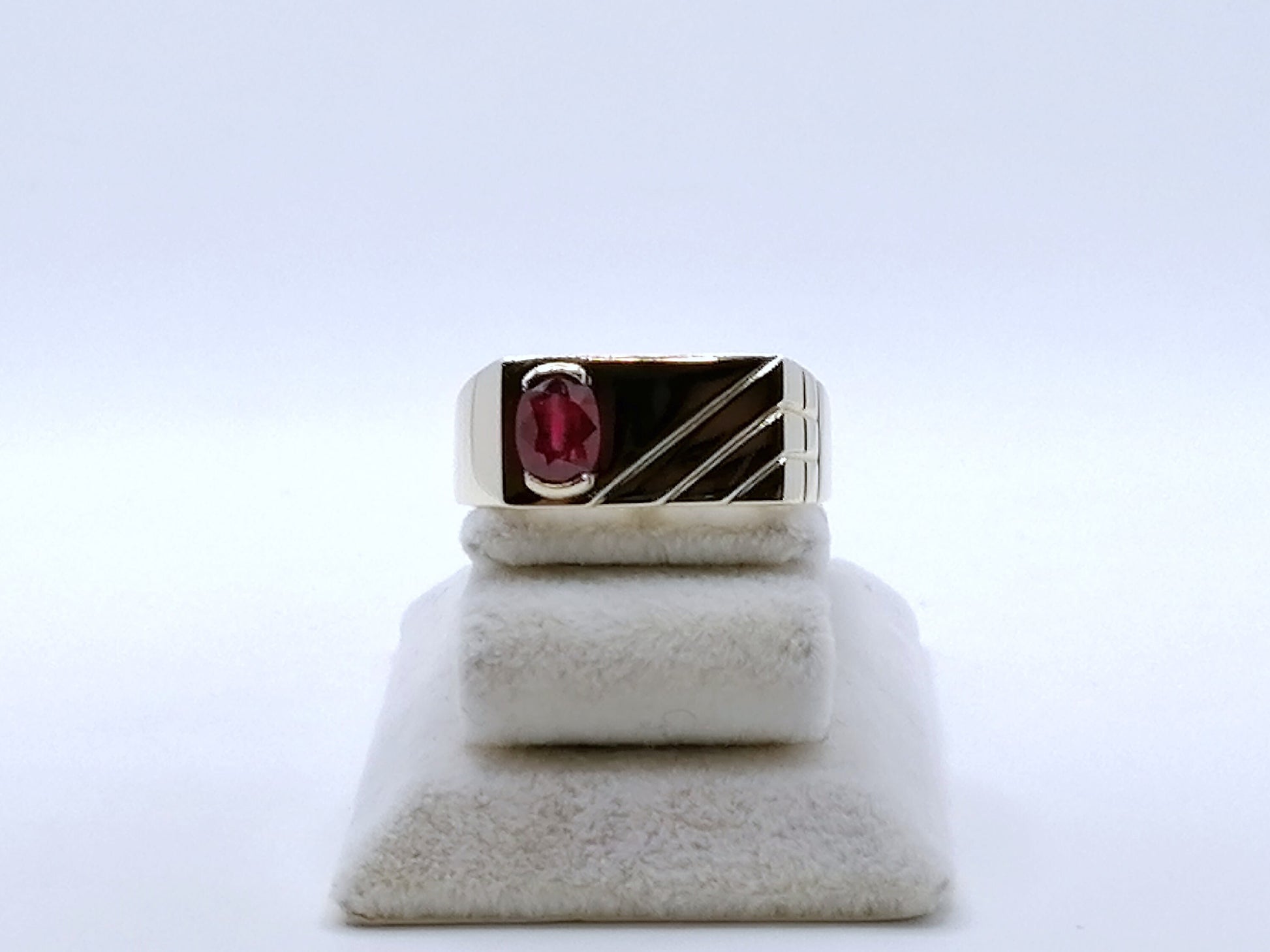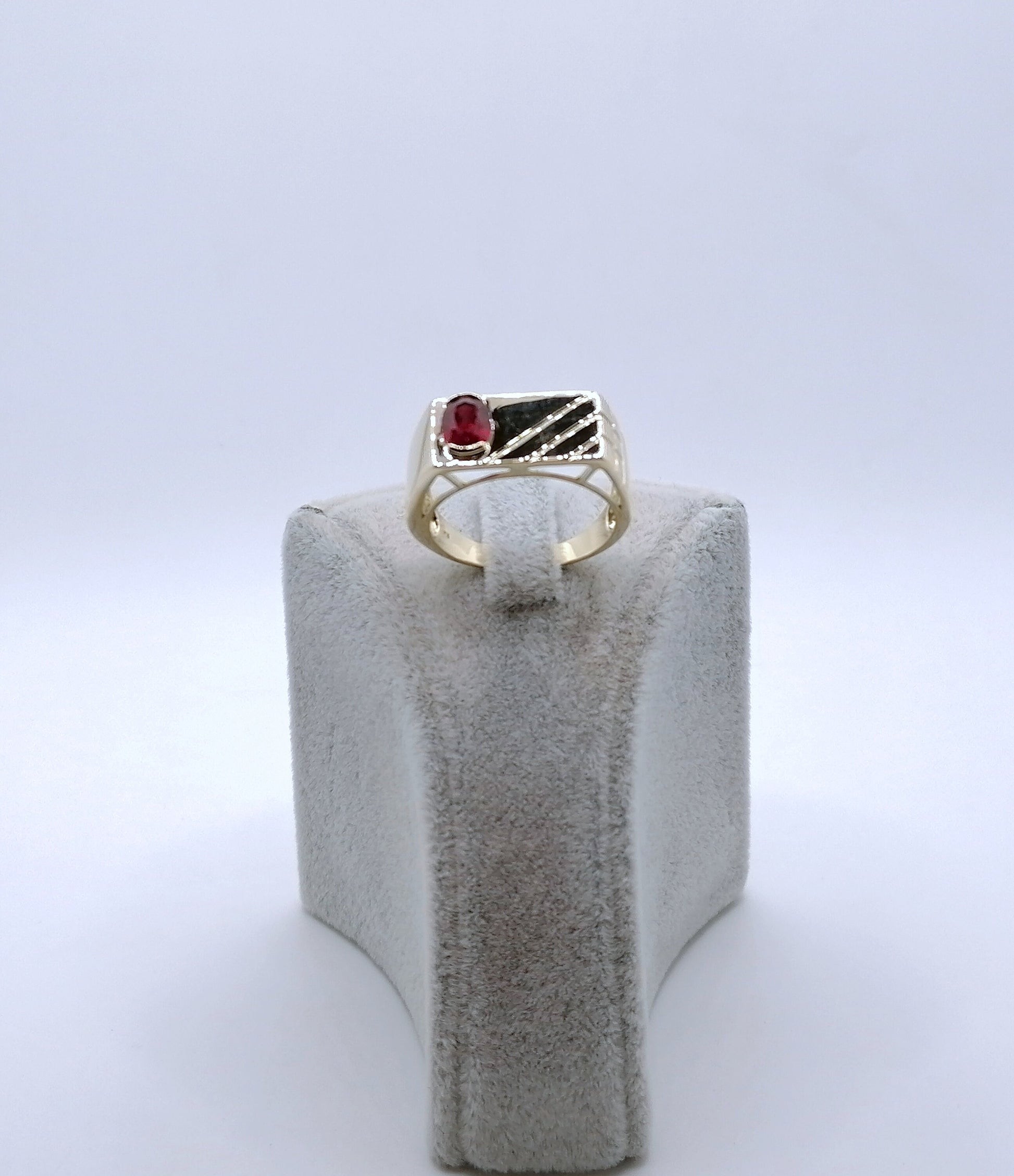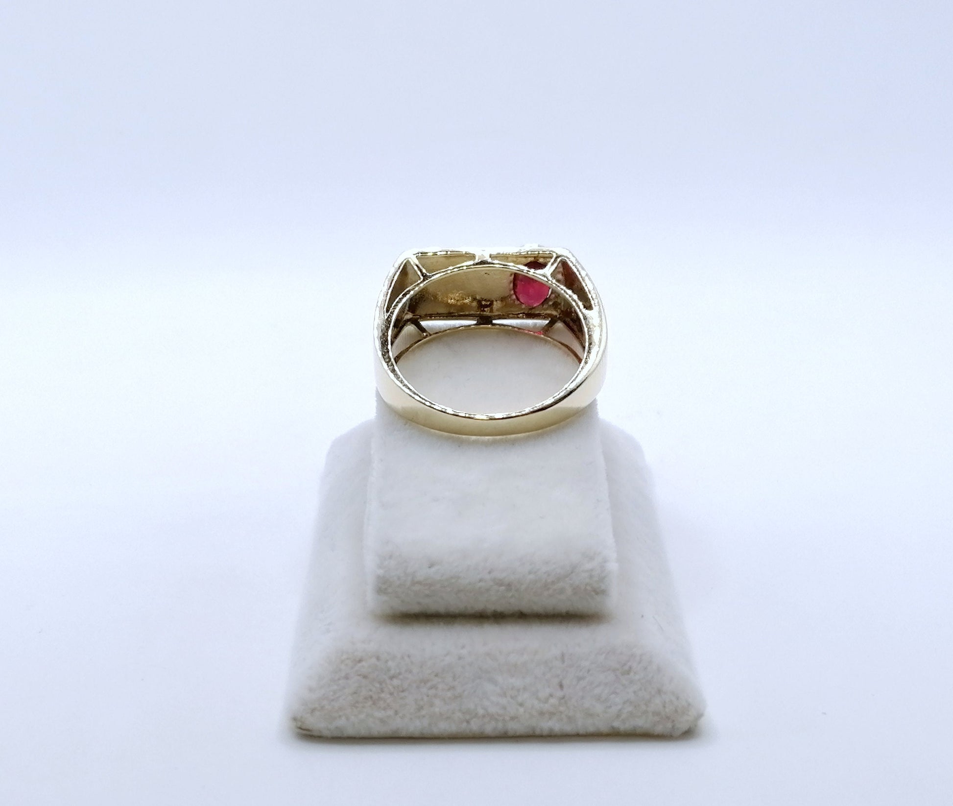 Gold Siegelring mit einem Rubin Edelstein. Der Ring ist aus 375er 9 Karat Gold gefertigt.