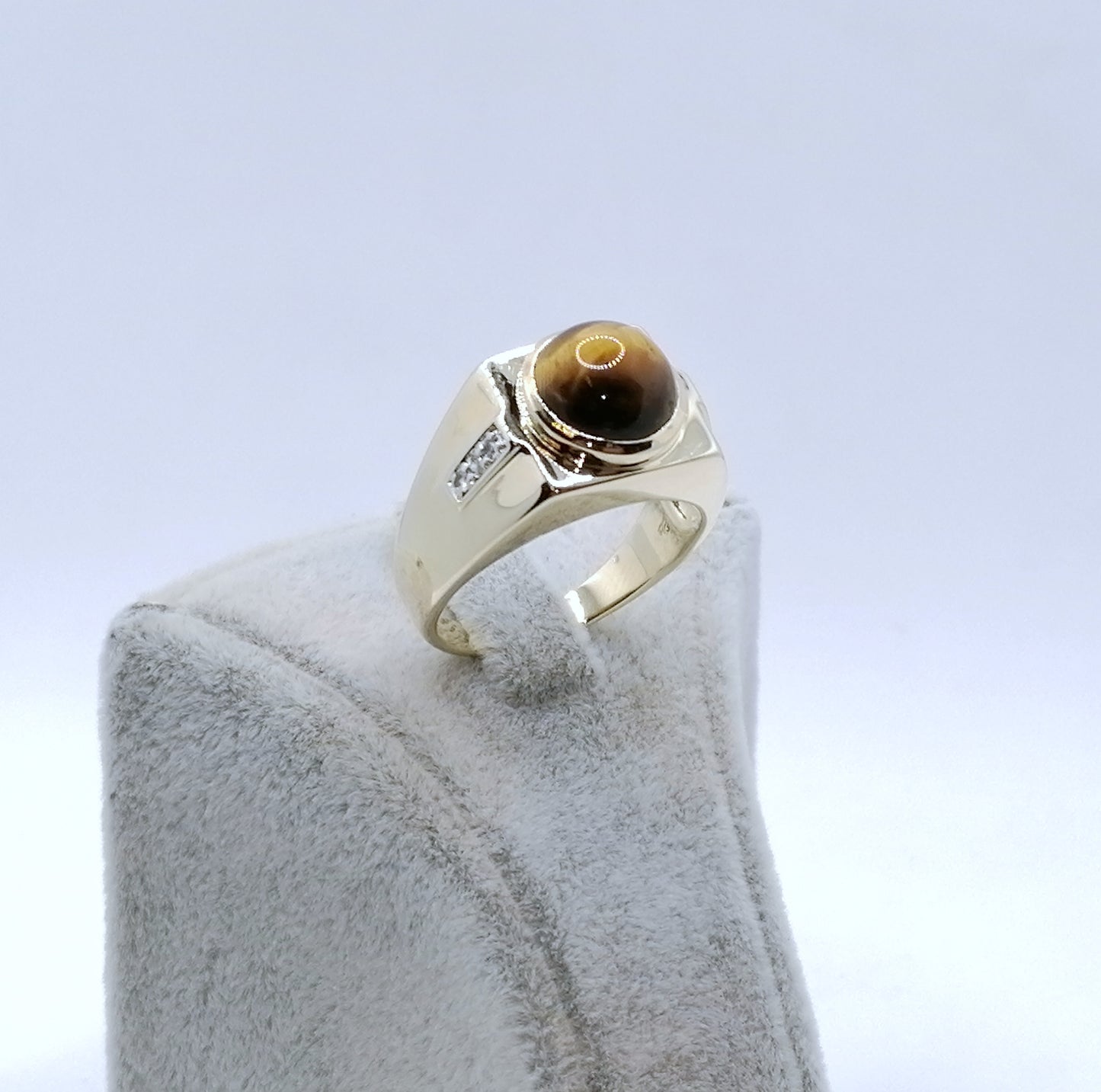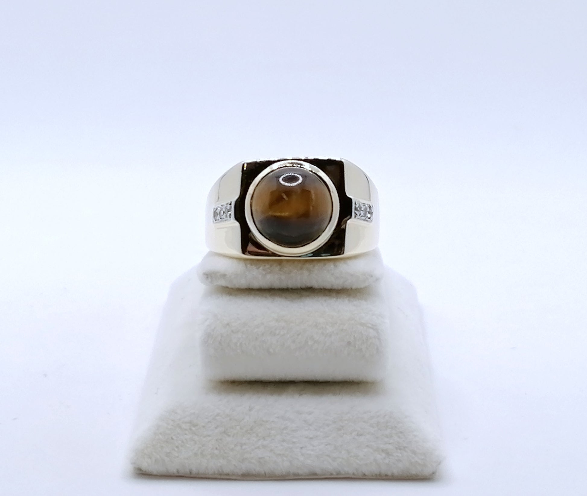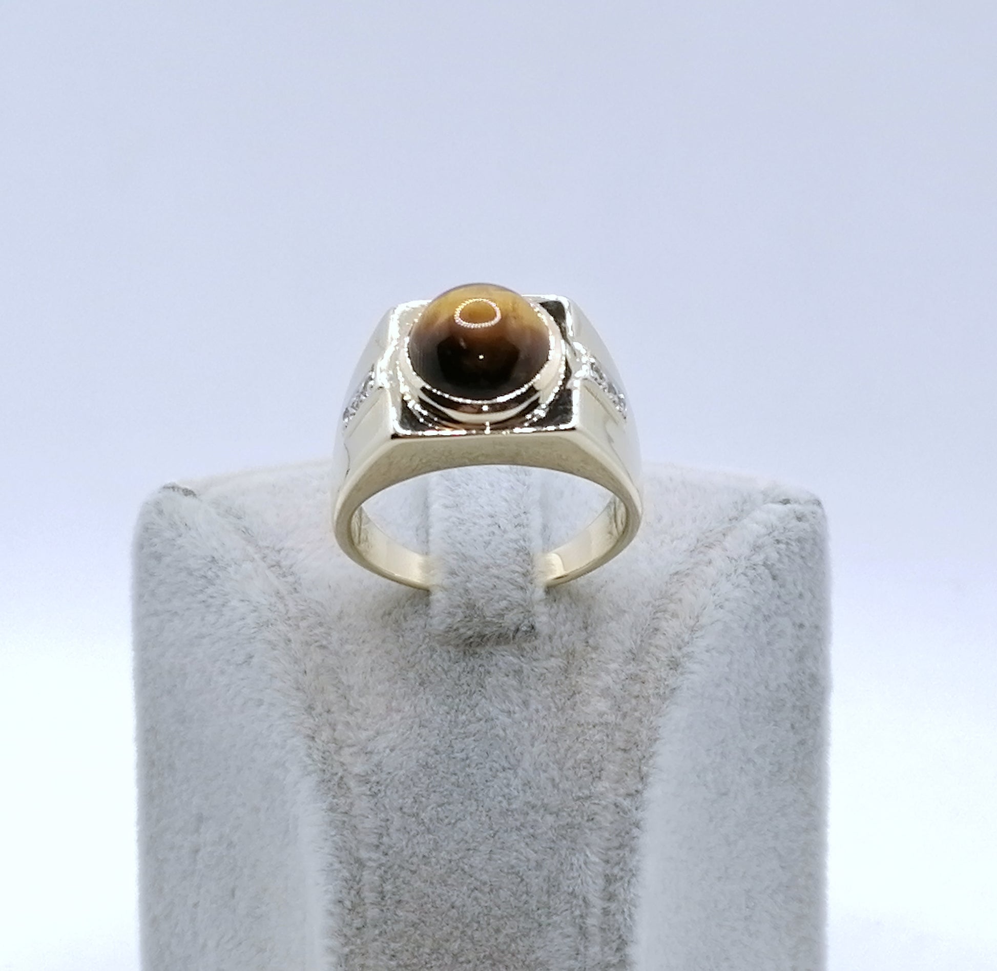 Ring Gold 375er mit Tigerauge und Zirkonen Gr. 63