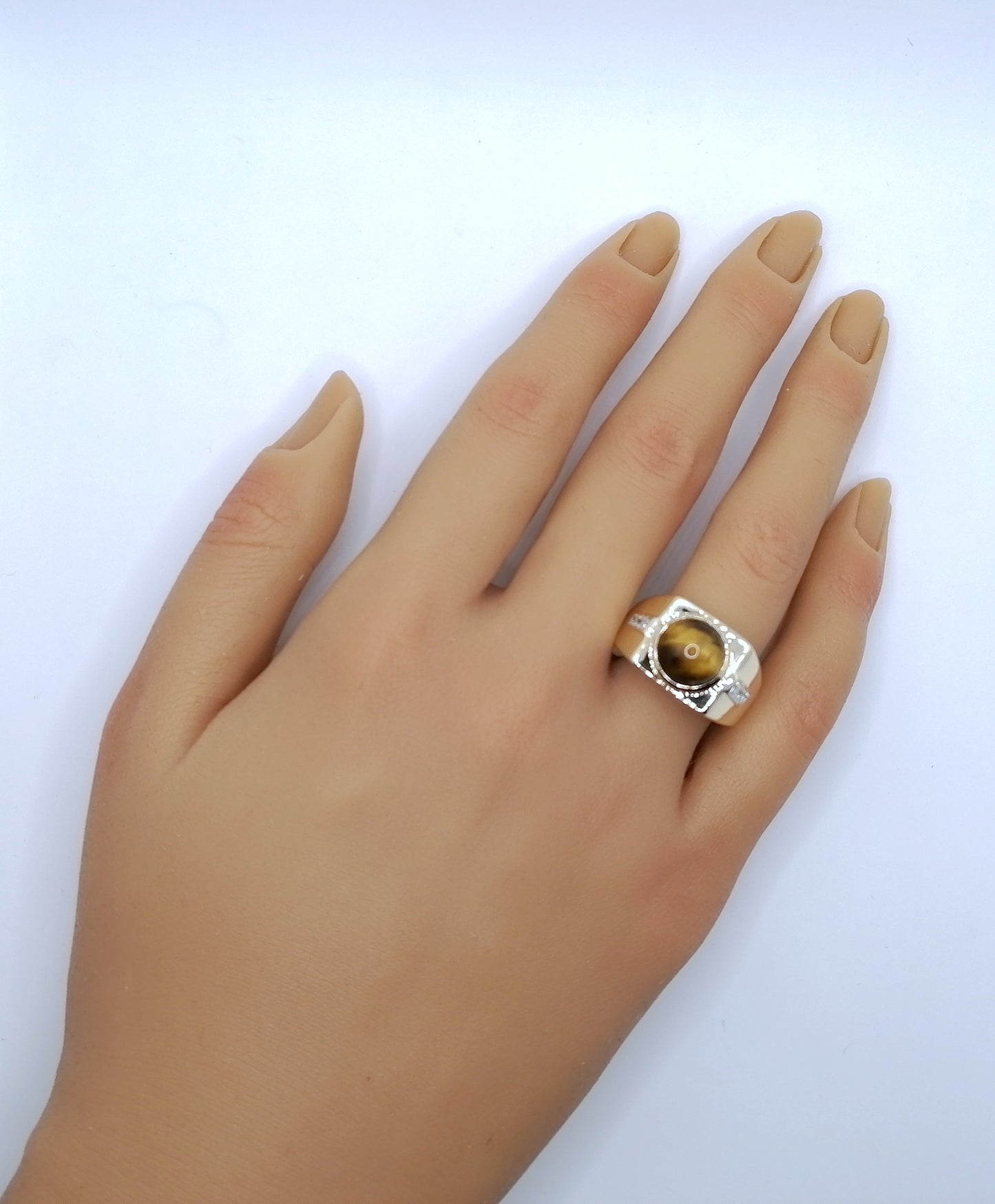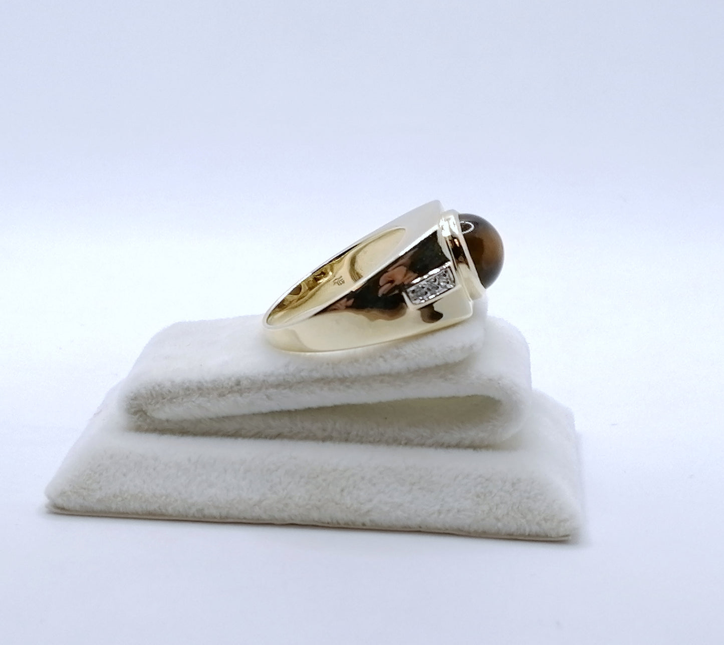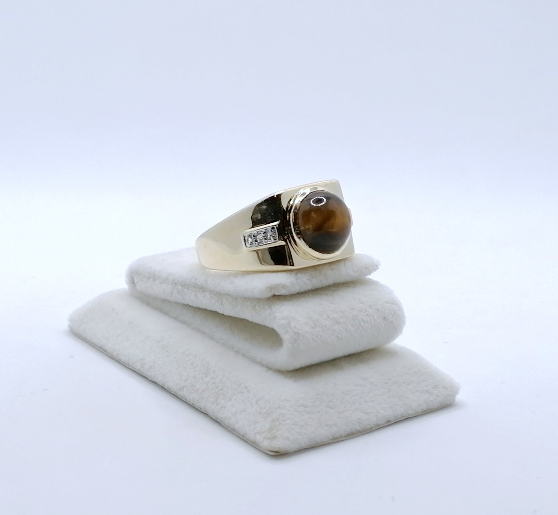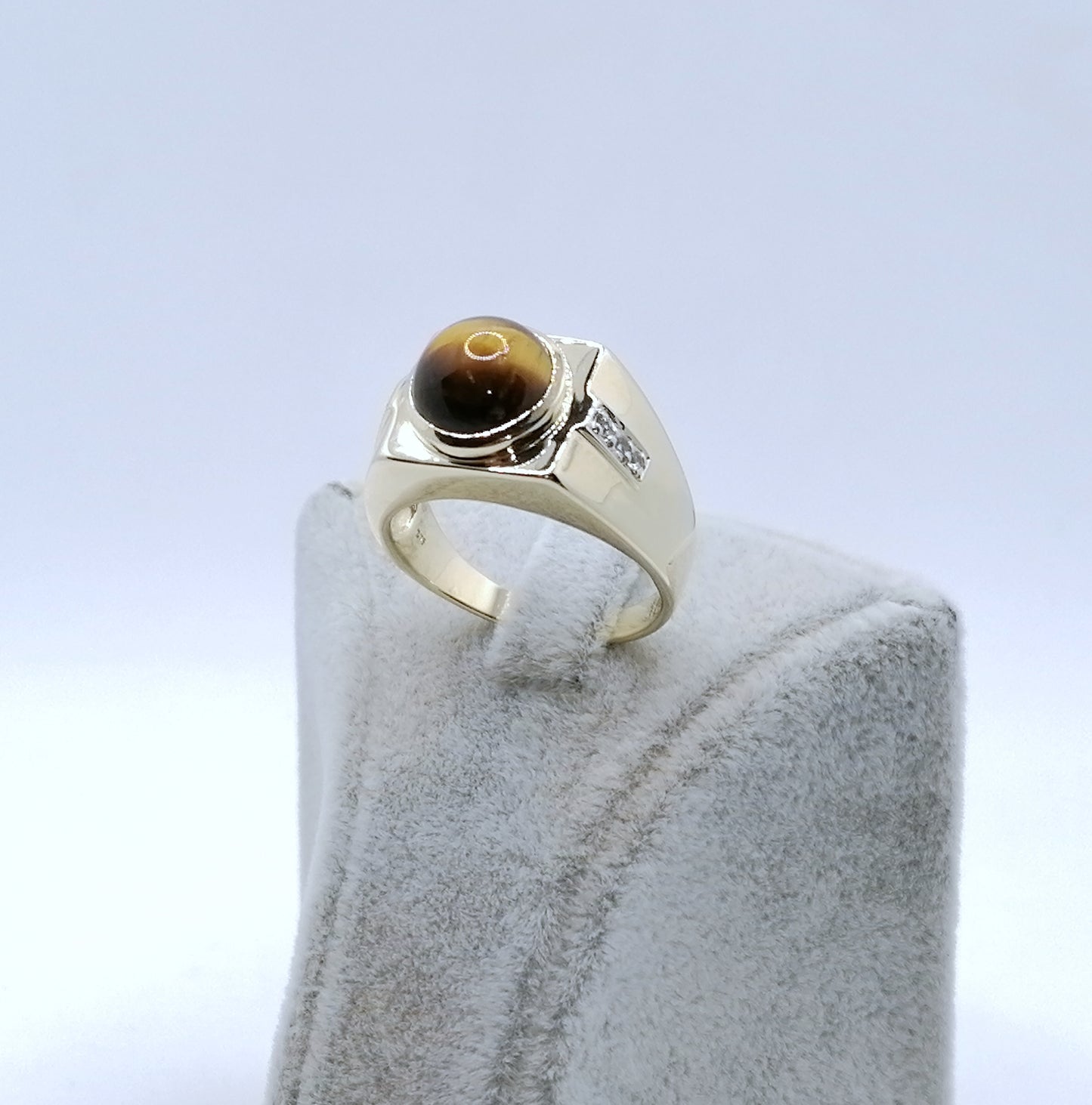 Ring Gold 375er mit Tigerauge und Zirkonen Gr. 63