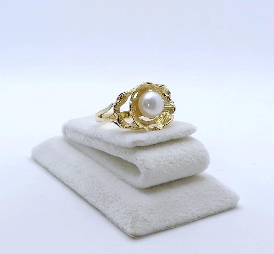 Traumhafter Gold Damenring mit einer Süßwasserzuchtperle. Das Schmuckstück ist aus 375er 9 Karat Gold gefertigt.
