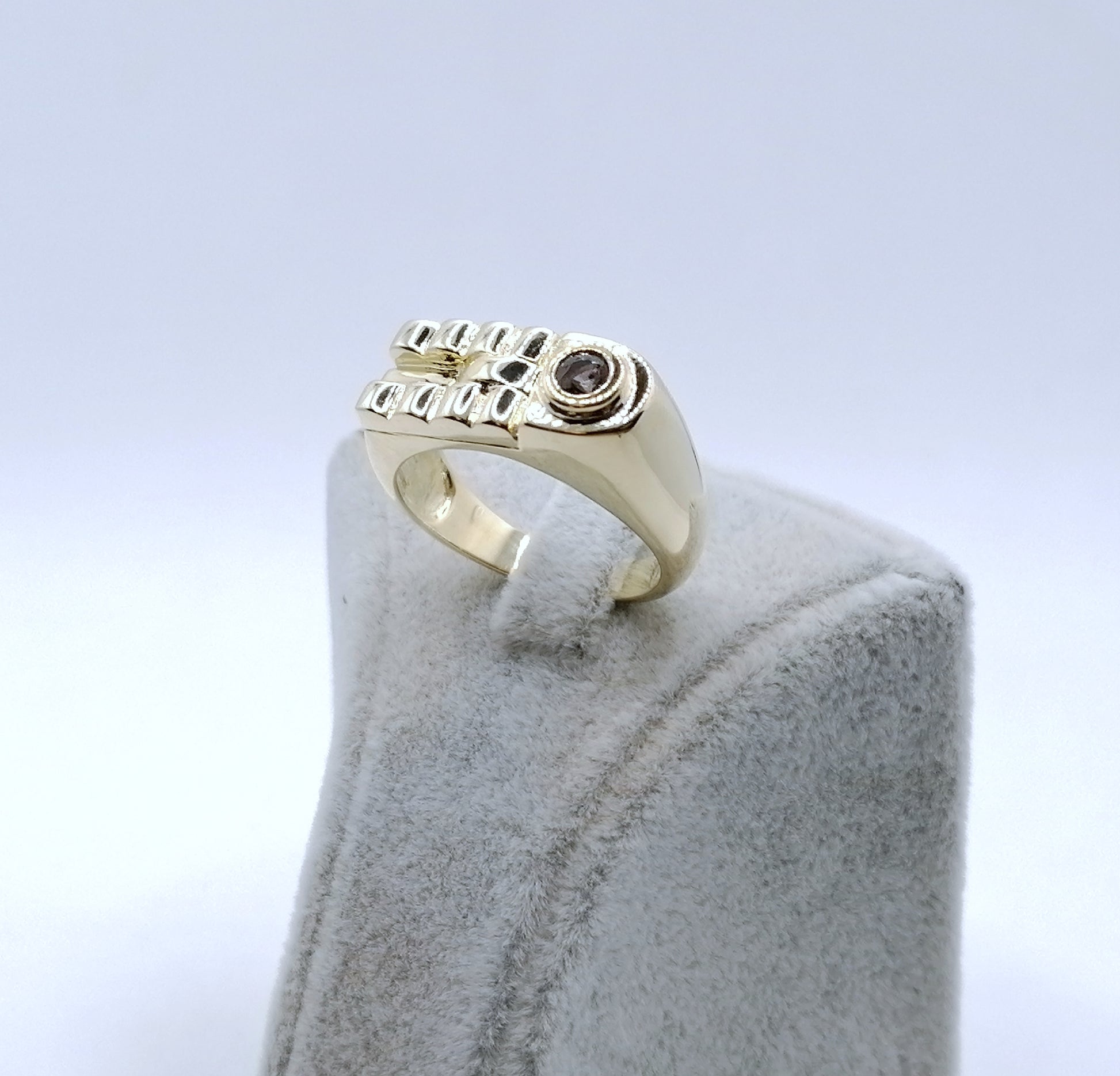Neuwertiger Gold Siegelring mit einem braunen Topas. Der Ring ist aus 375er 9 karat Gold gefertigt.