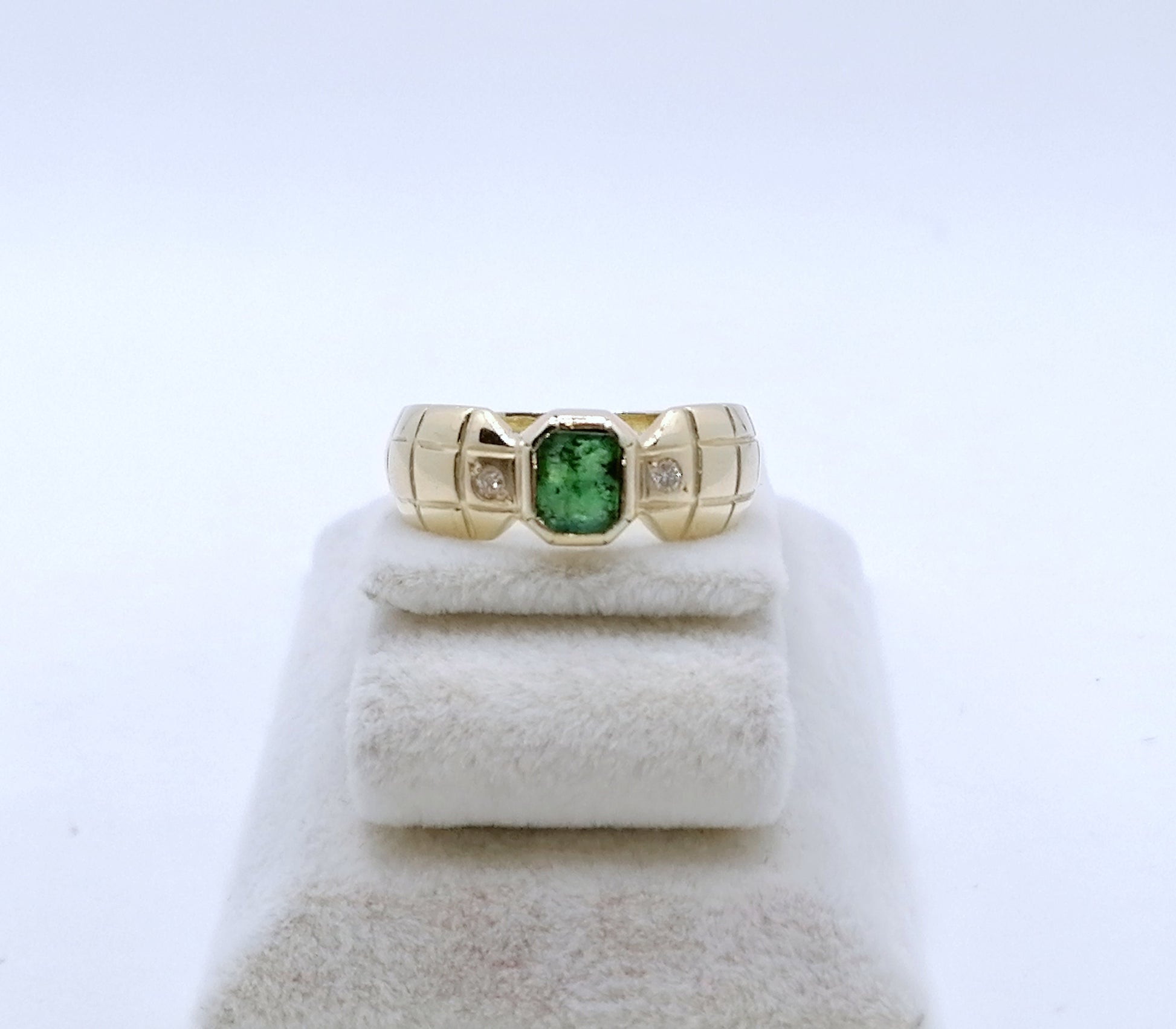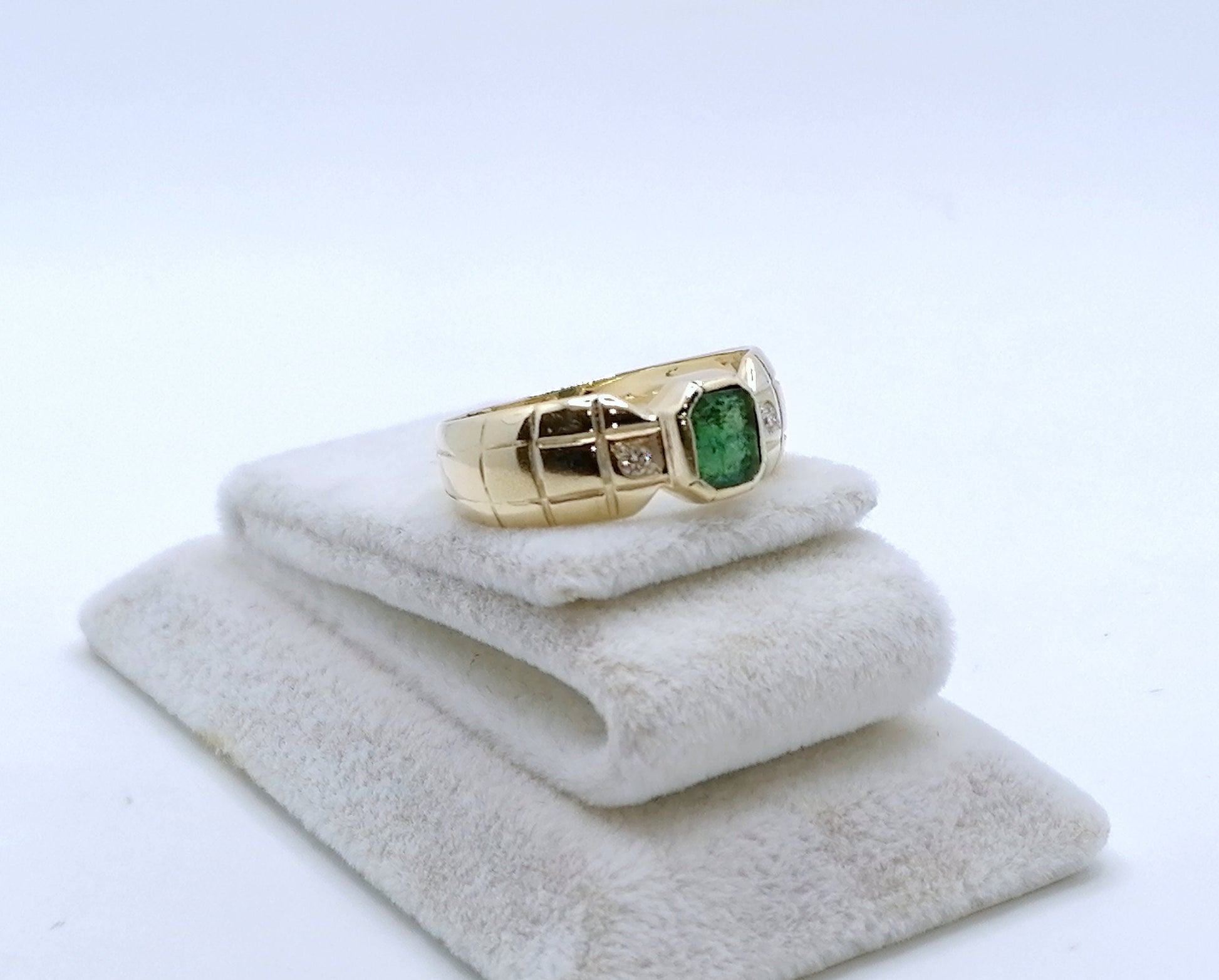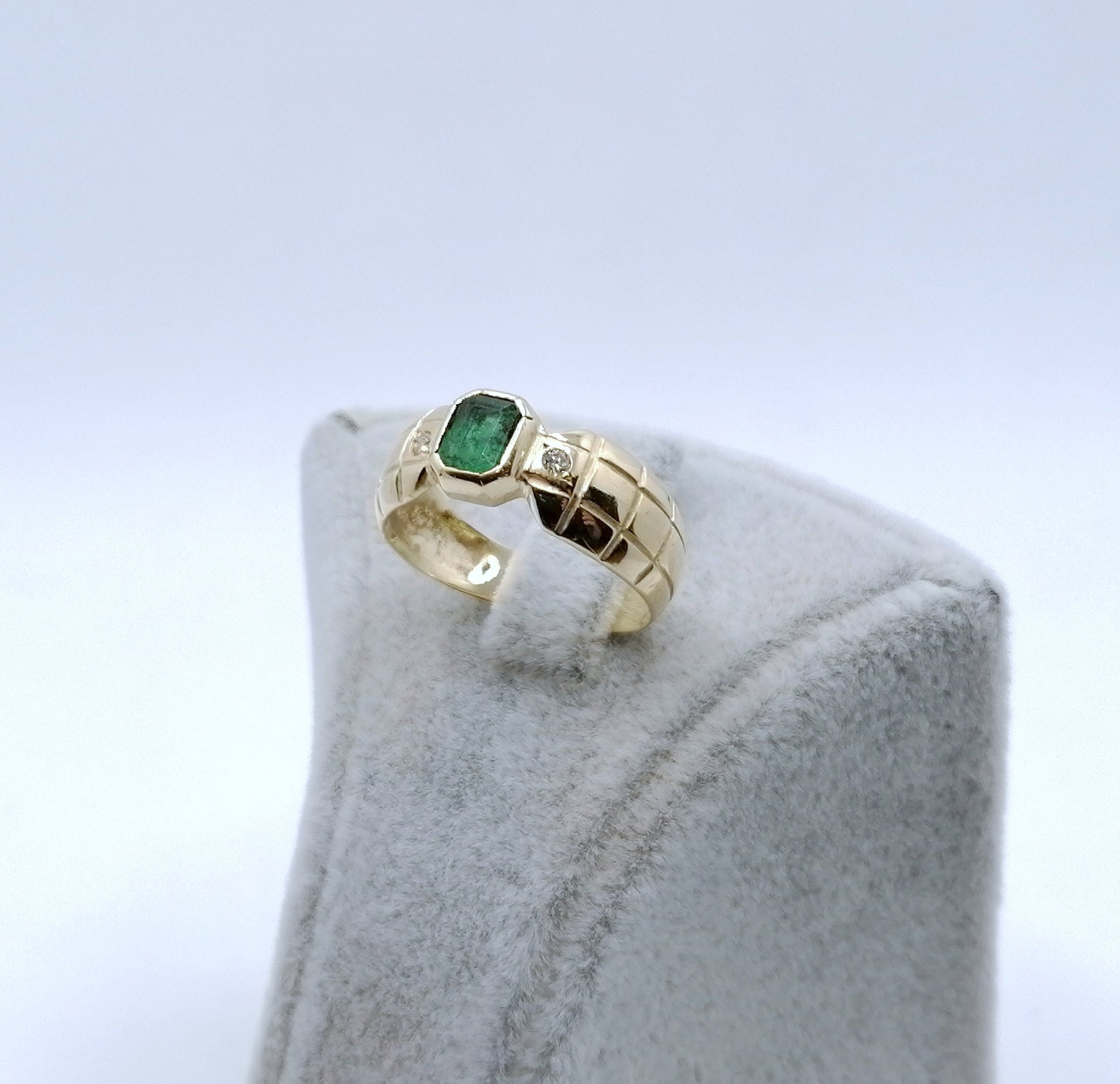Ring Gold 583er UdSSR Sowjet mit Smaragd und Brillanten Gr. 57