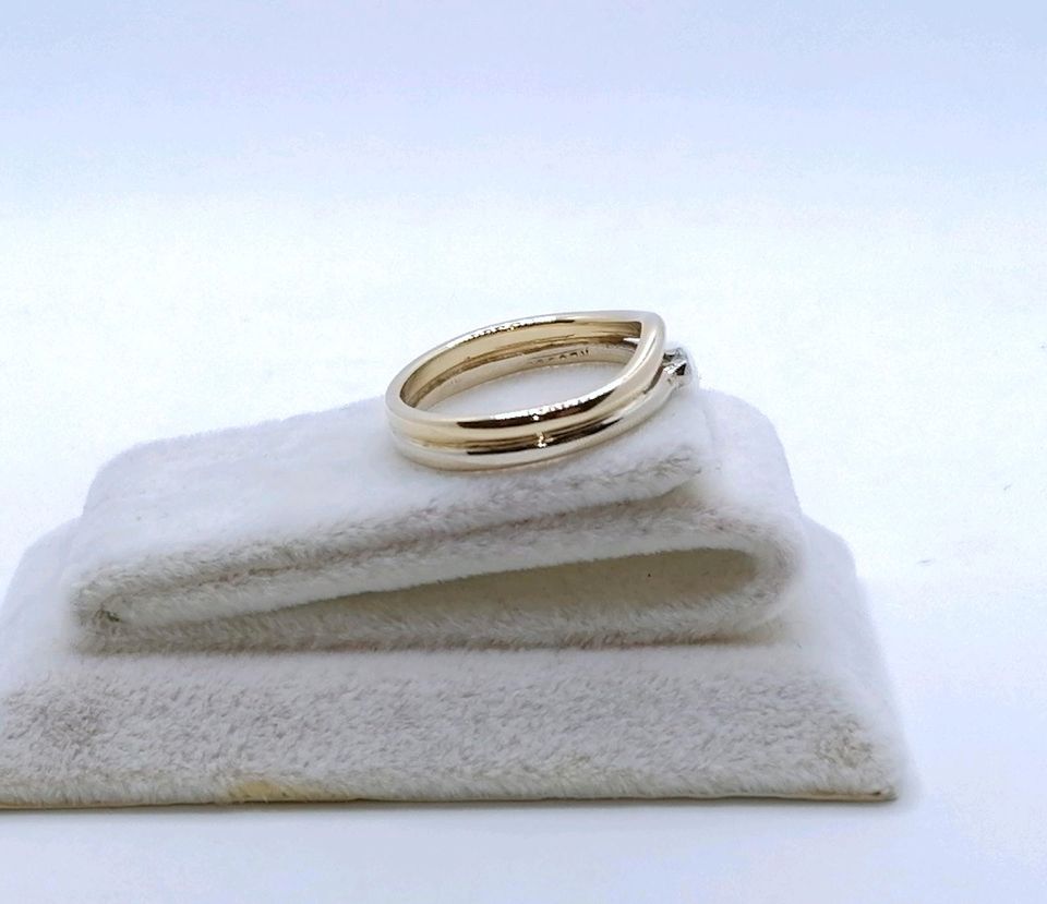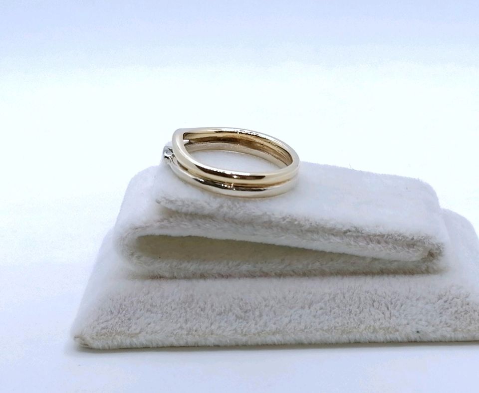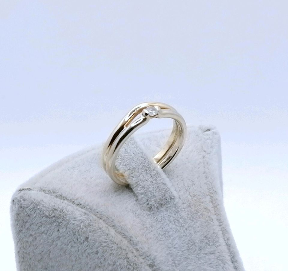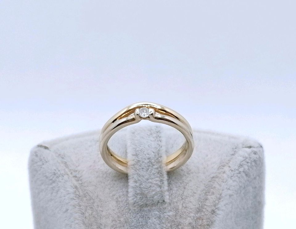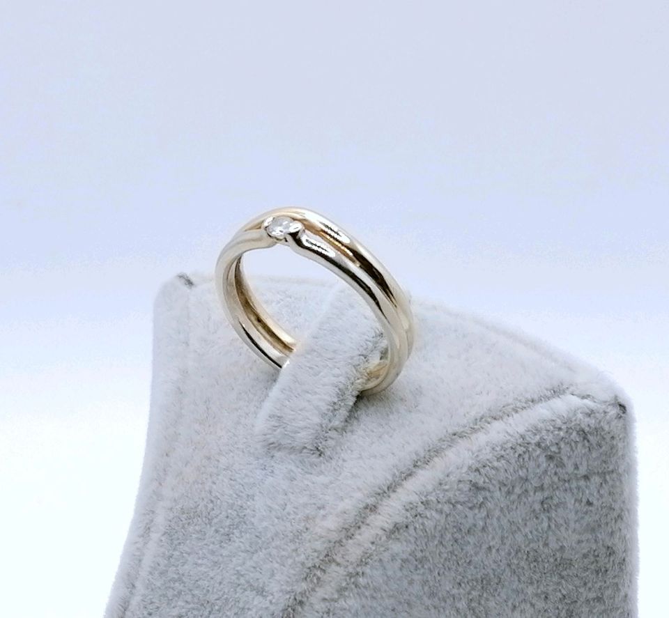 Bicolor (Gelbgold & Weißgold) Damenring mit einem Zirkonia. Der Ring ist aus 585er 14 karat Gold gefertigt.