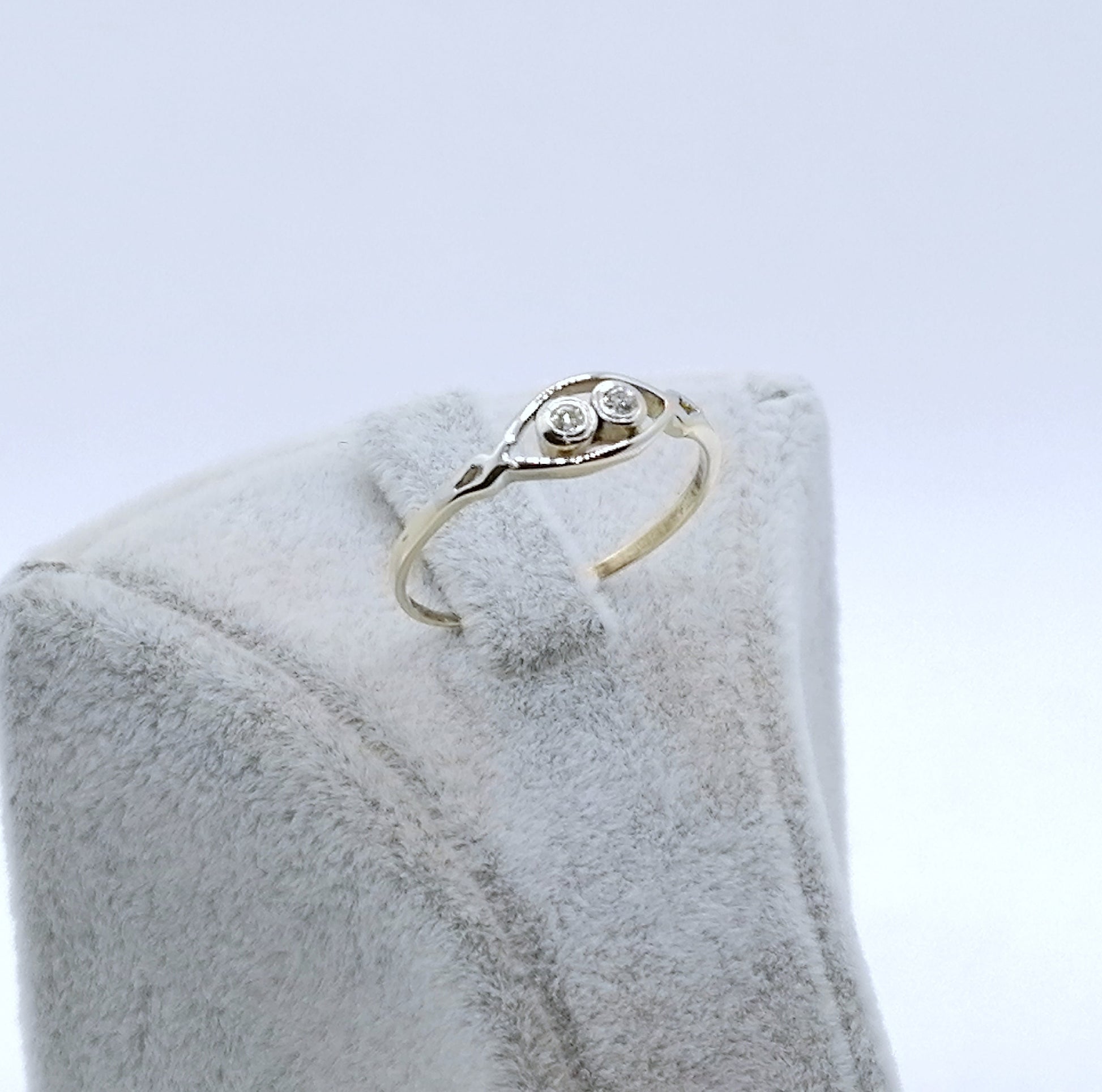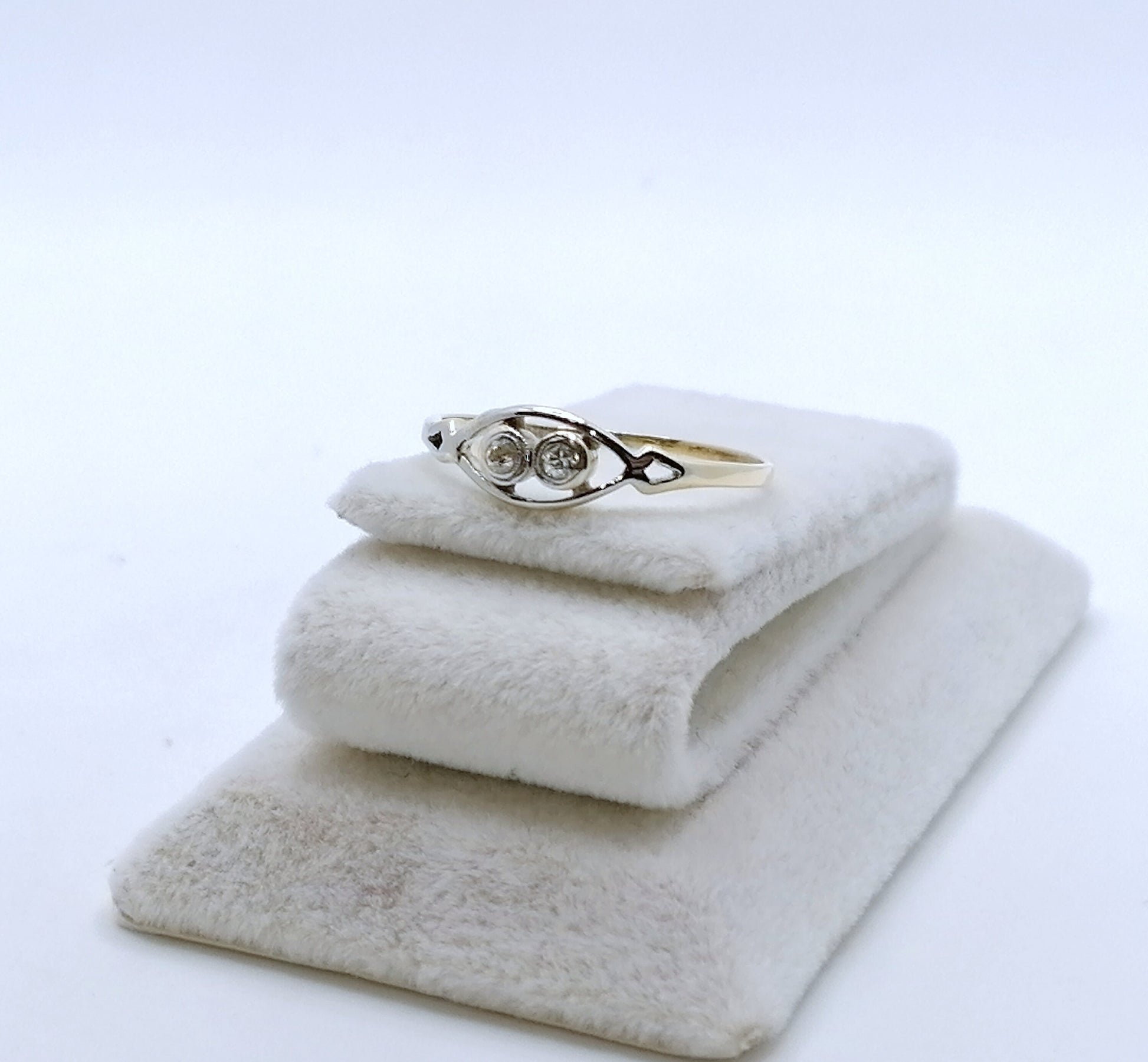 Artdeco Gold Damenring mit zwei funkelnden Brillanten im Altschliff. Der Ring ist aus 585er 14 karat Gold gefertigt.