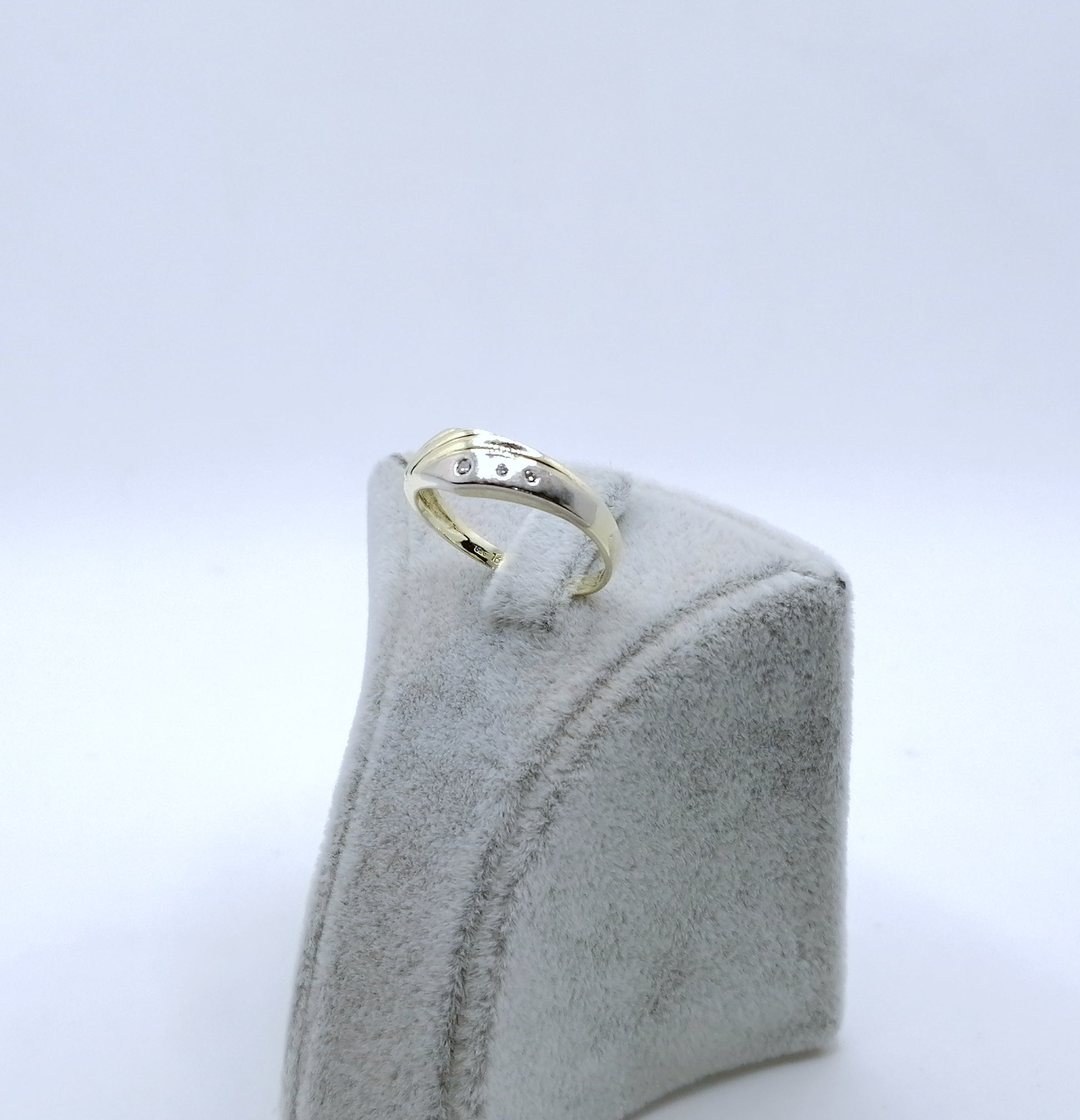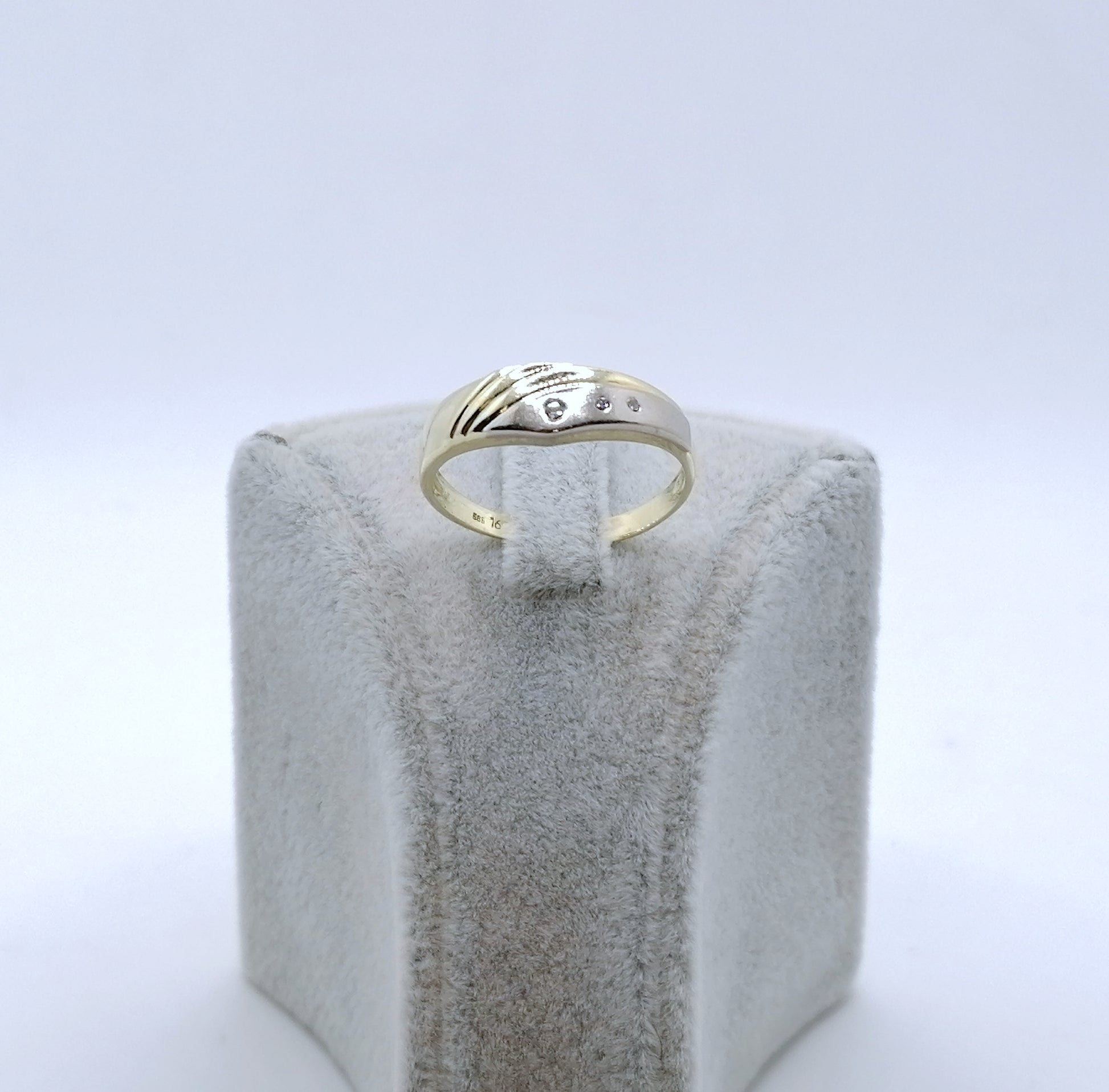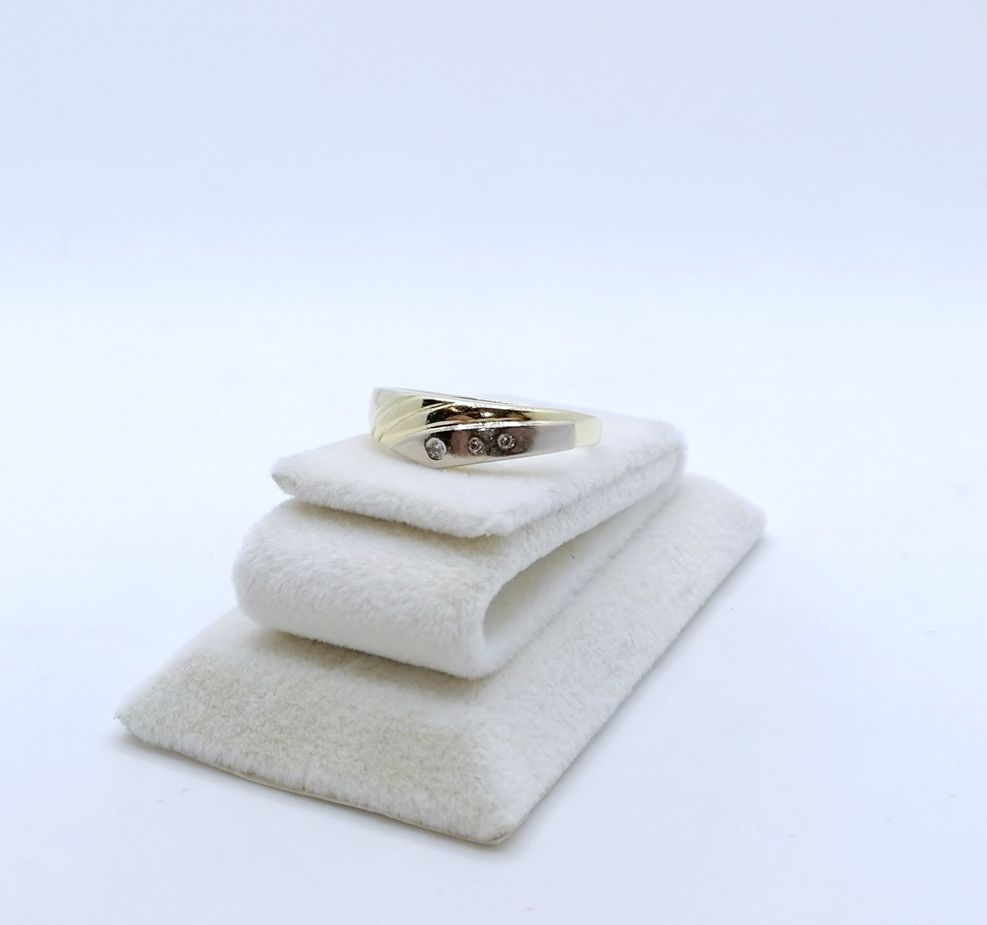Gold Damenring mit drei funkelnden Diamantsplitter. Der Ring ist aus 585er 14 Karat Gelbgold und Weißgold gefertigt.