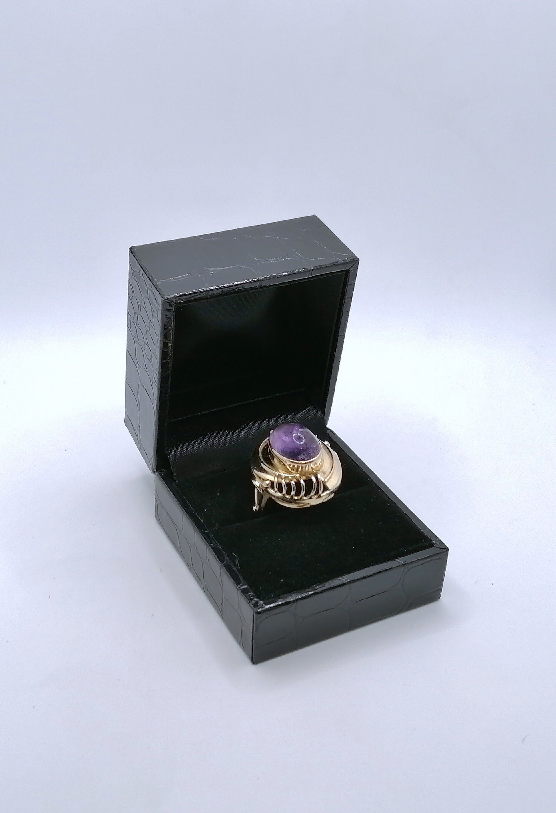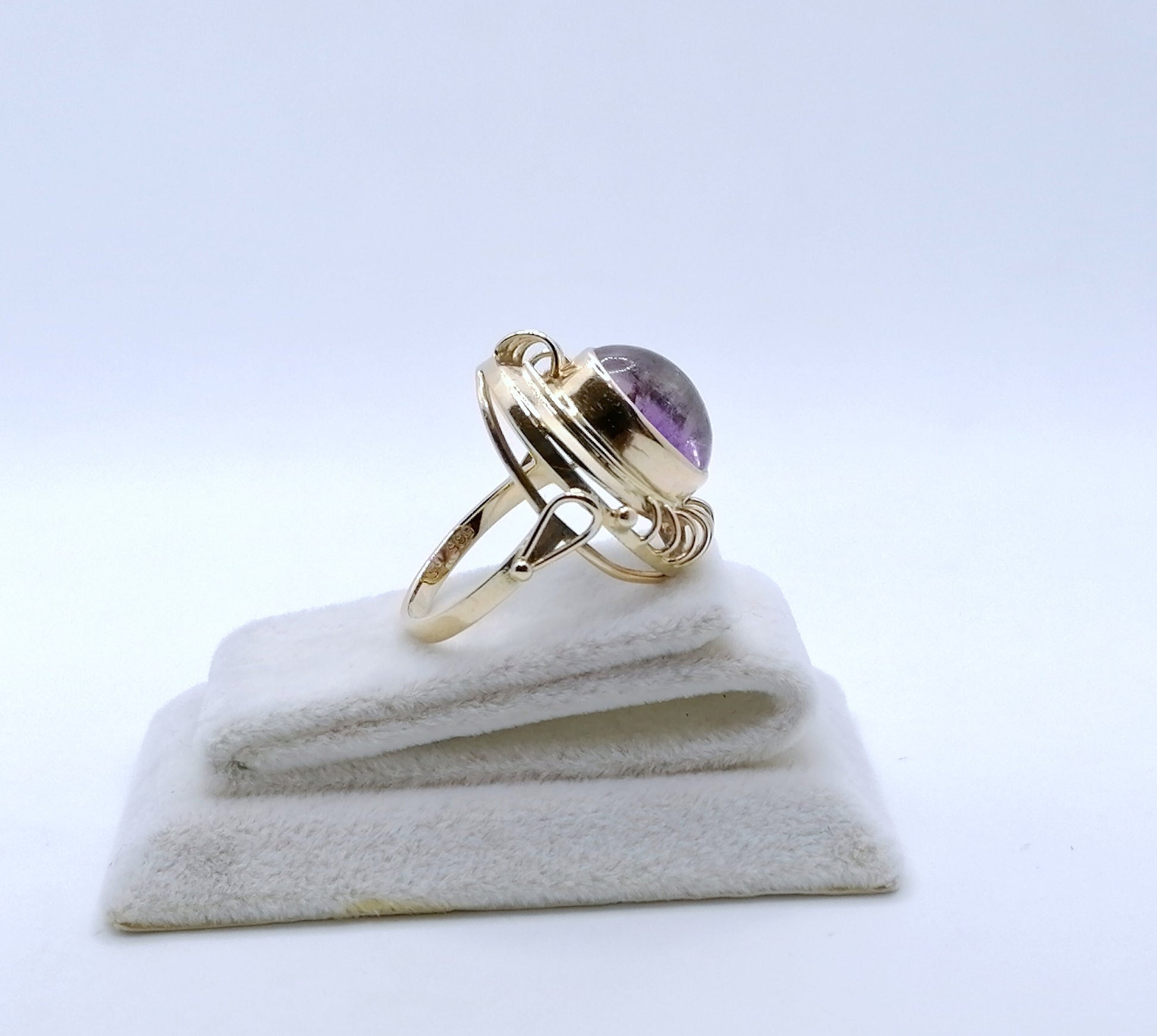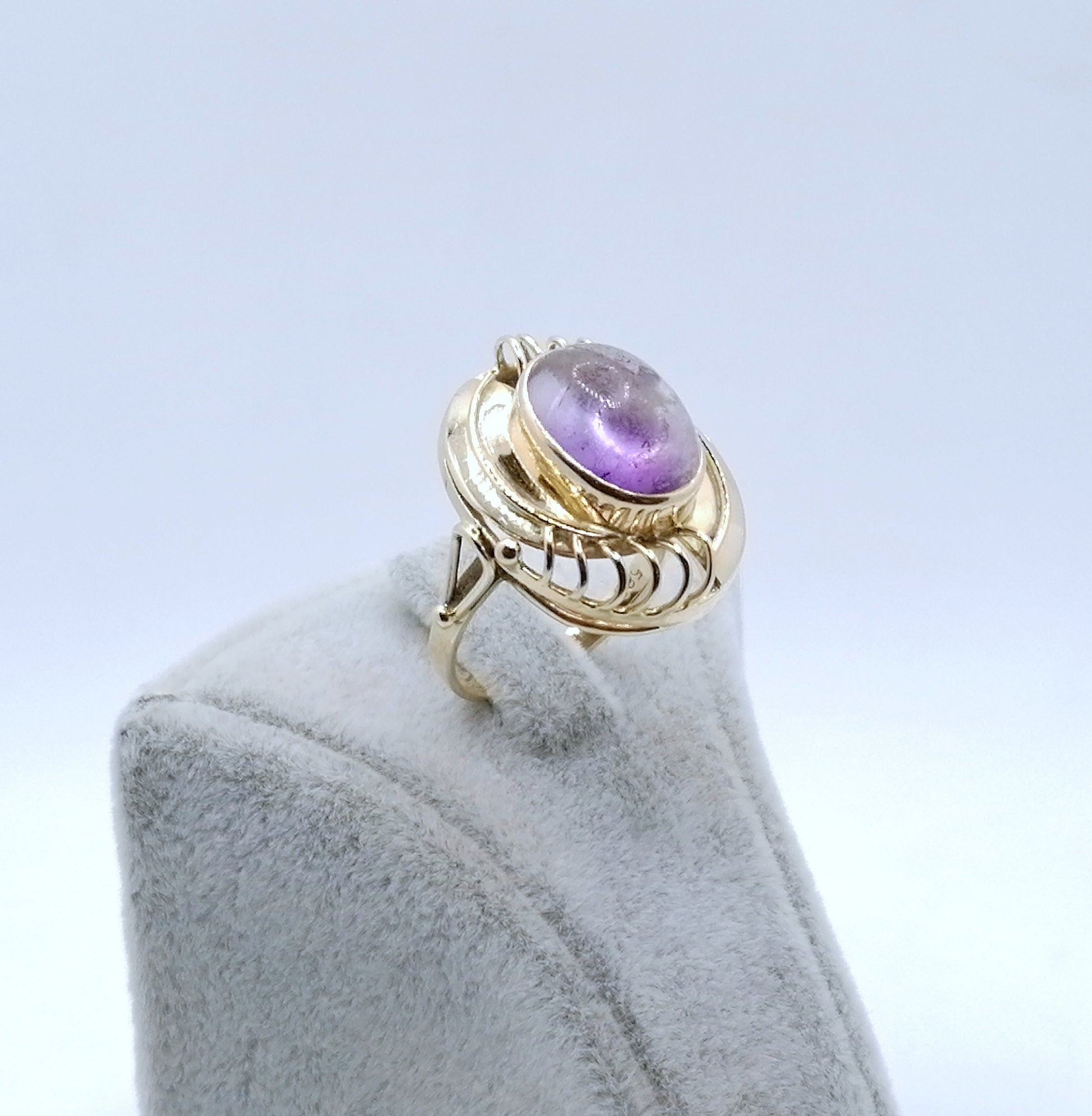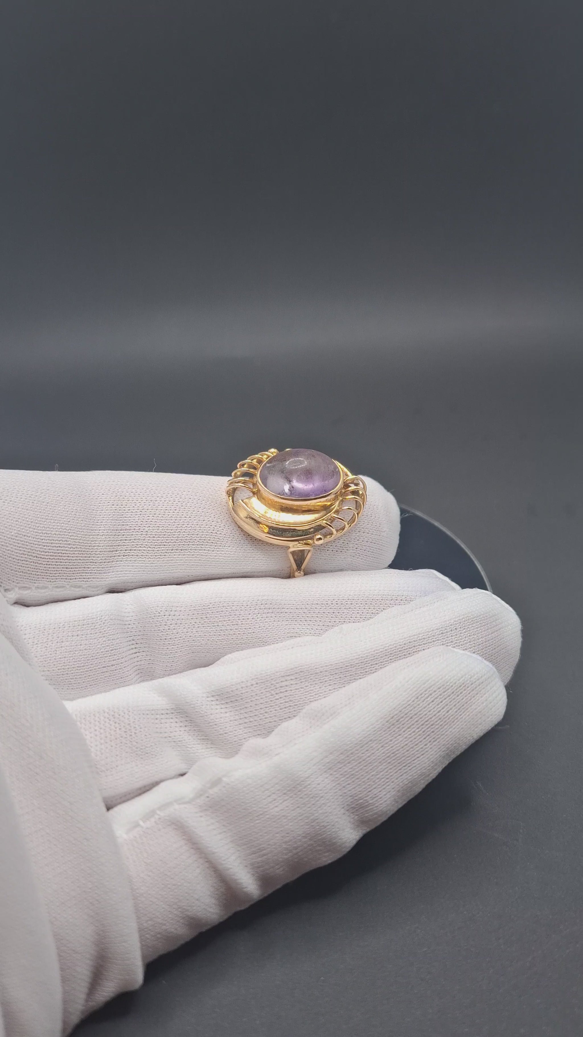 Einzigartiger Gold Damenring mit einem Amethyst Cabochon. Der Ring ist aus 585er 14 Karat Gold gefertigt.