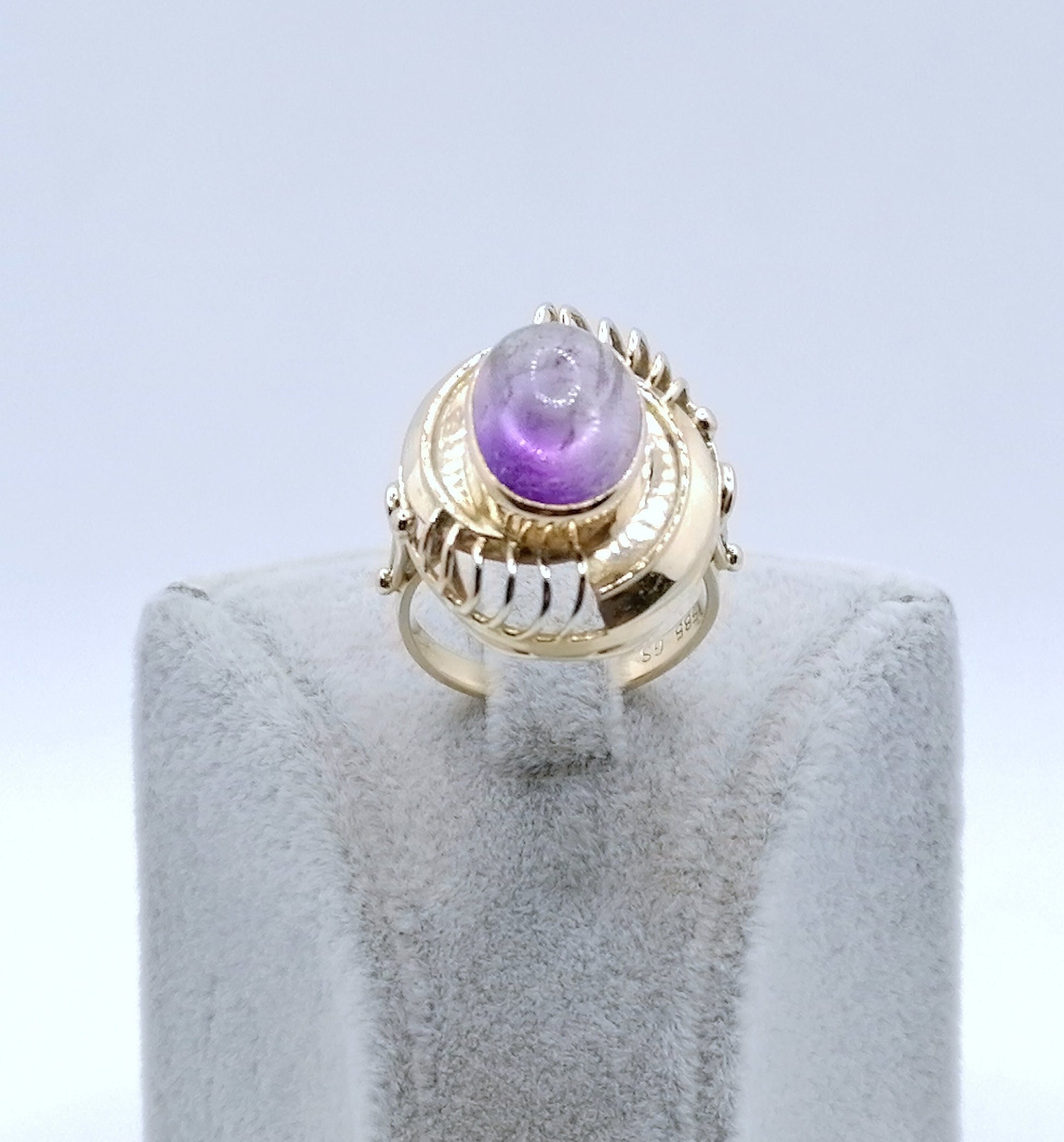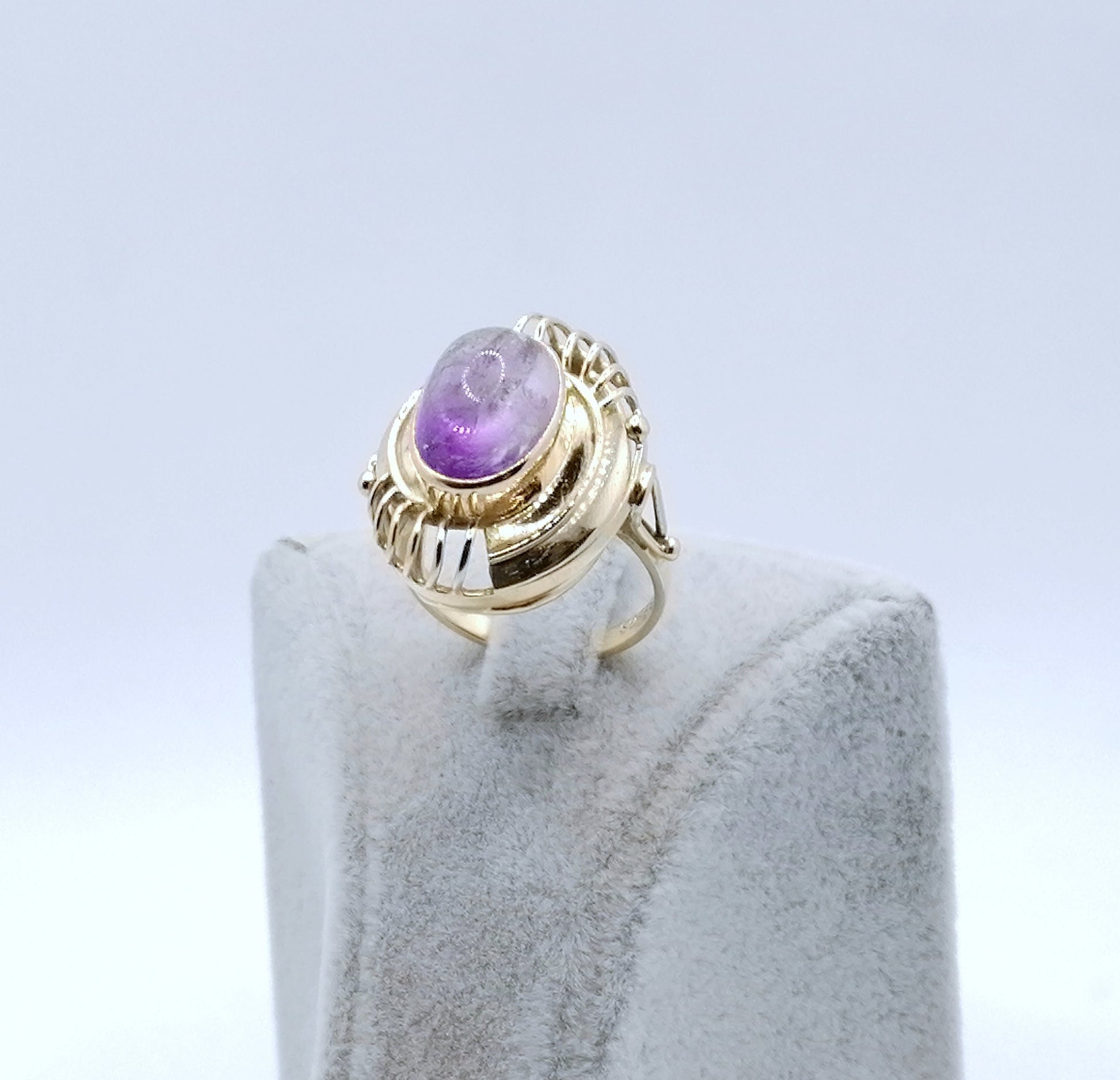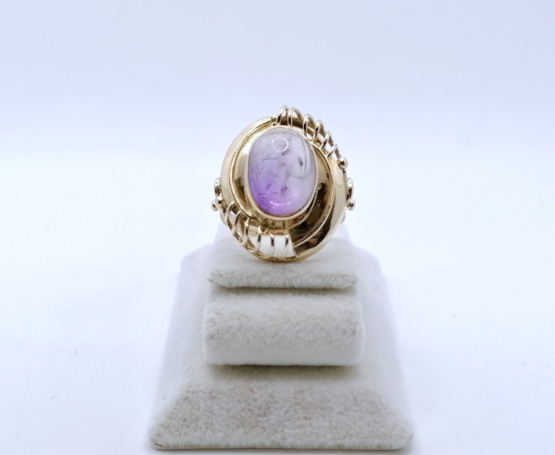 Ring Gold 585er mit Amethyst Cabochon prunkvoll Gr. 57