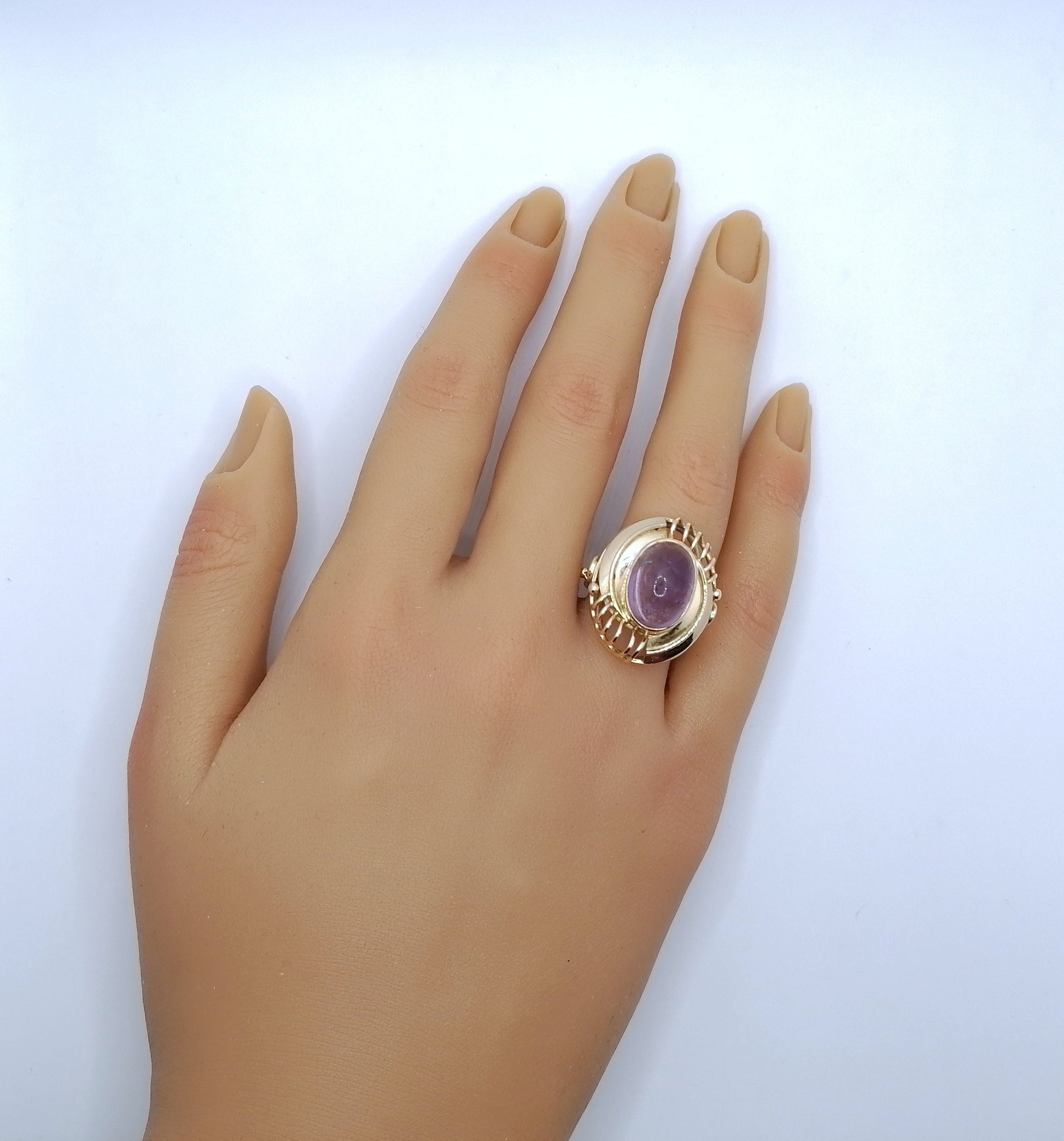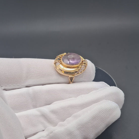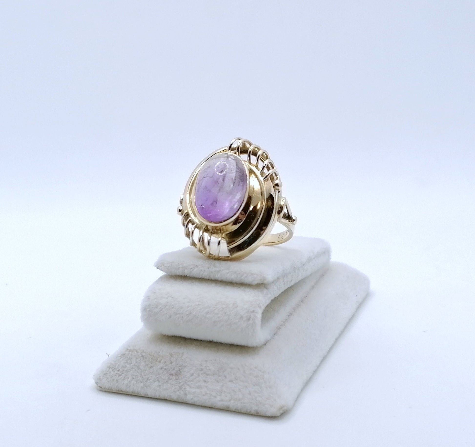 Ring Gold 585er mit Amethyst Cabochon prunkvoll Gr. 57