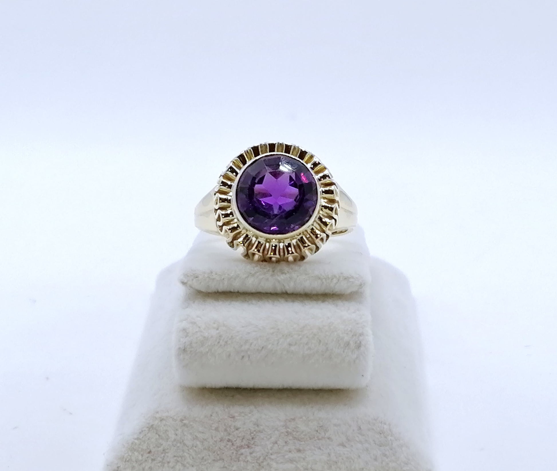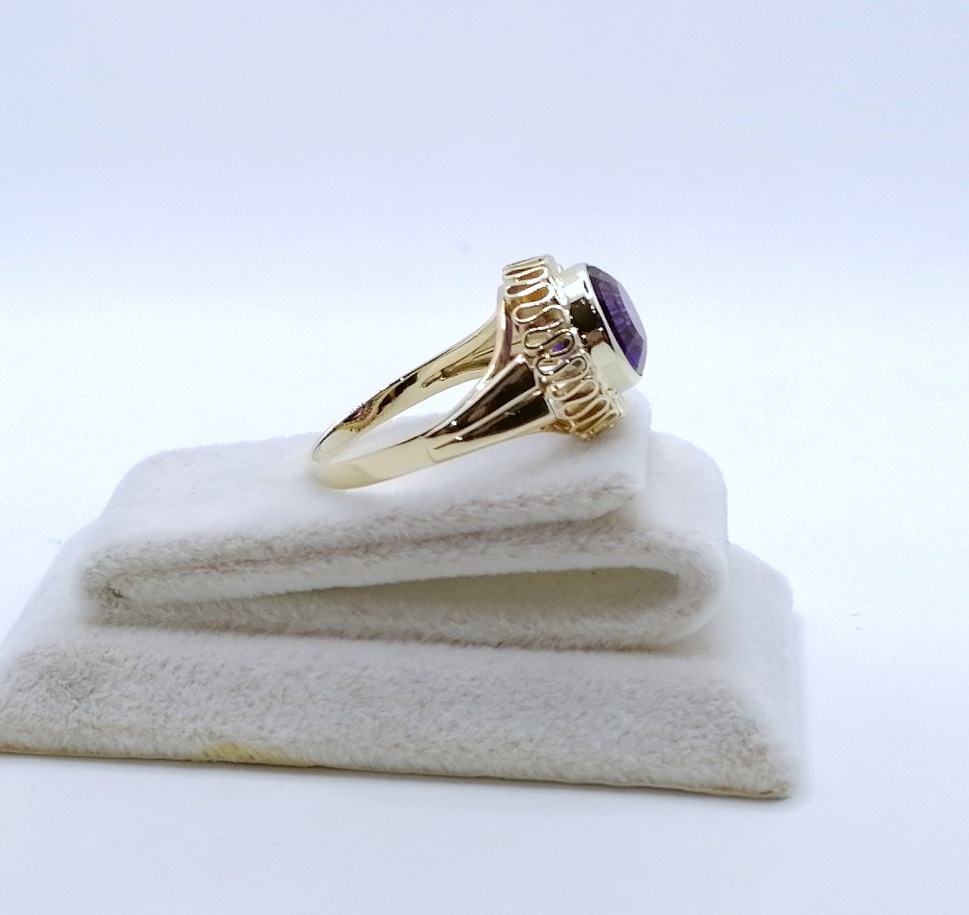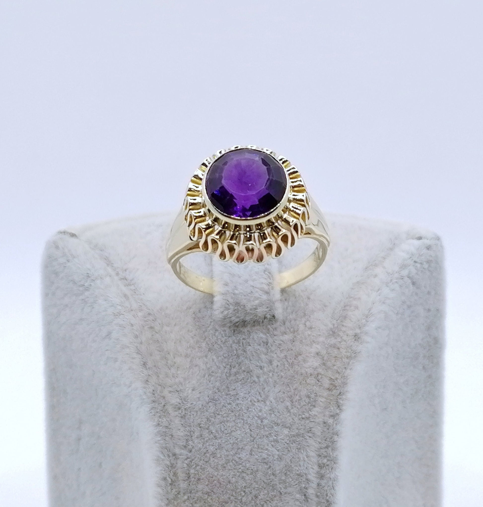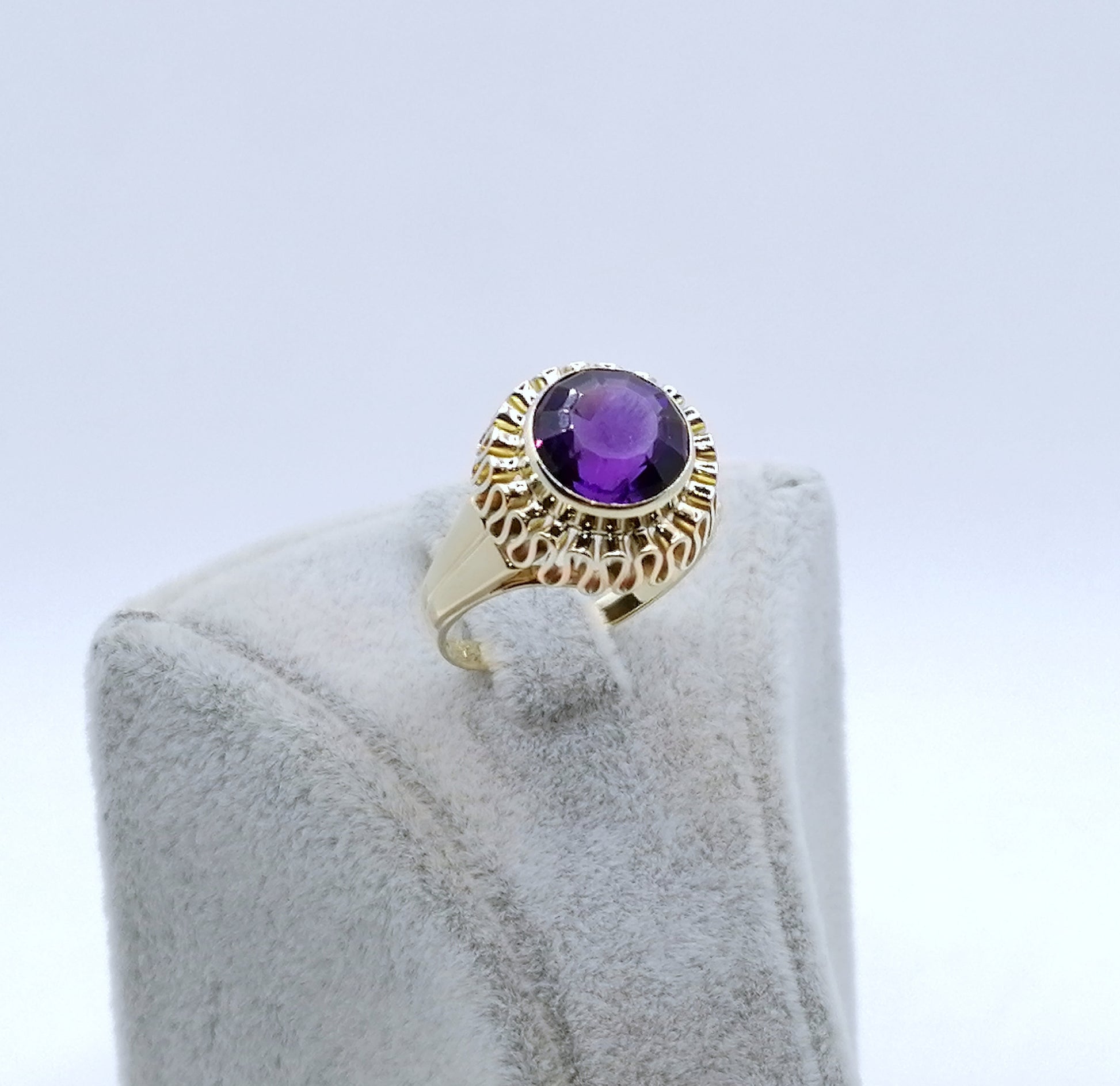 Gold Damenring mit Amethyst. Das Schmuckstück ist aus 585er 14 Karat Gold gefertigt.