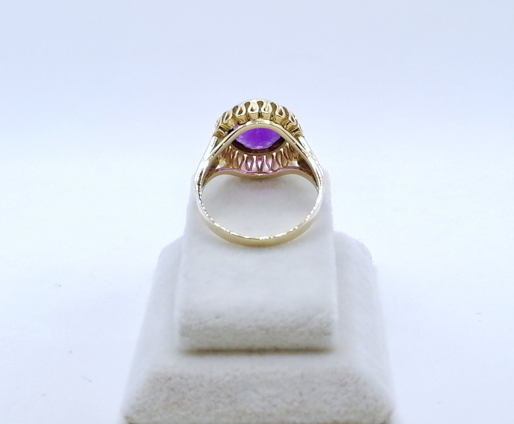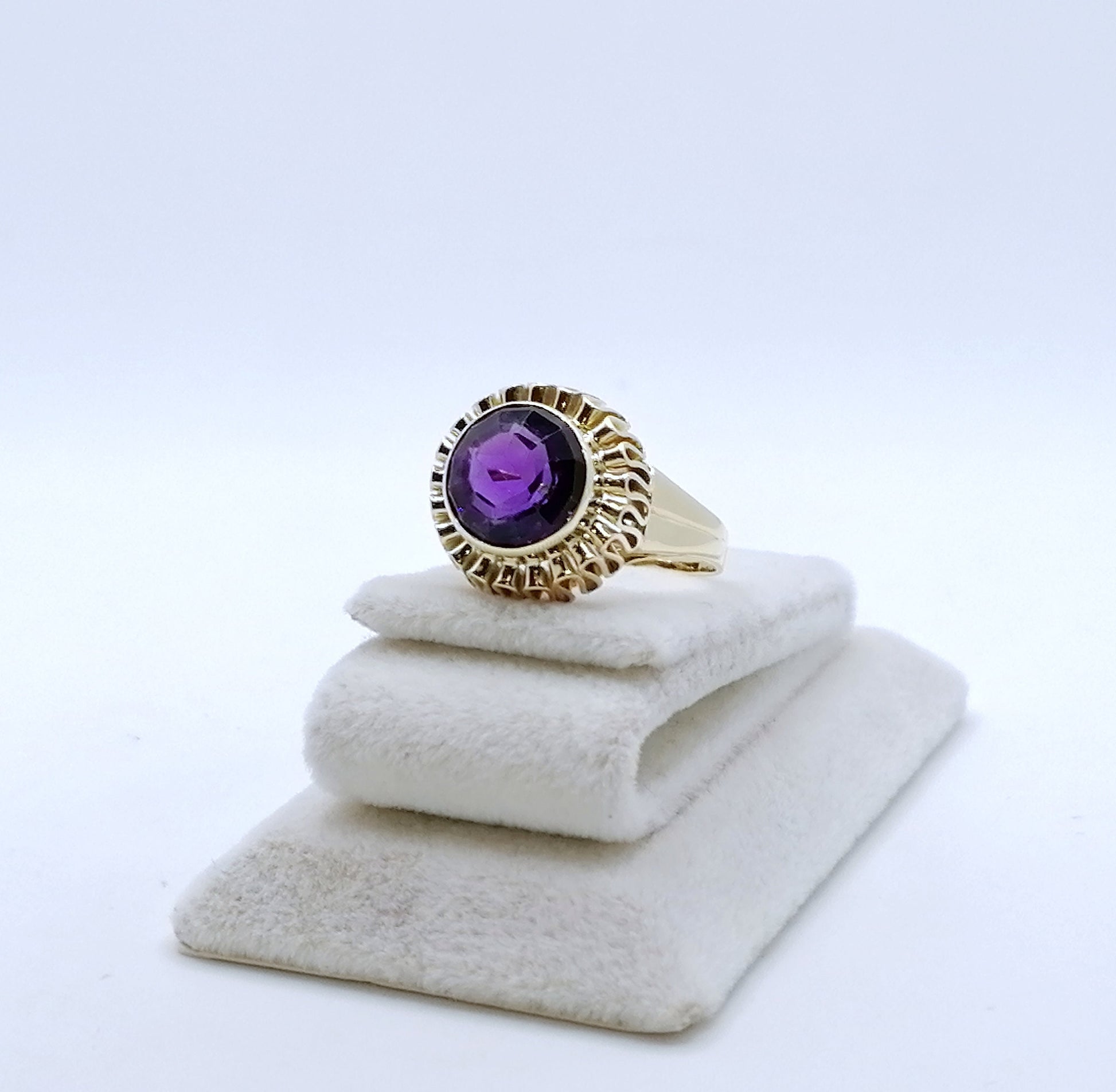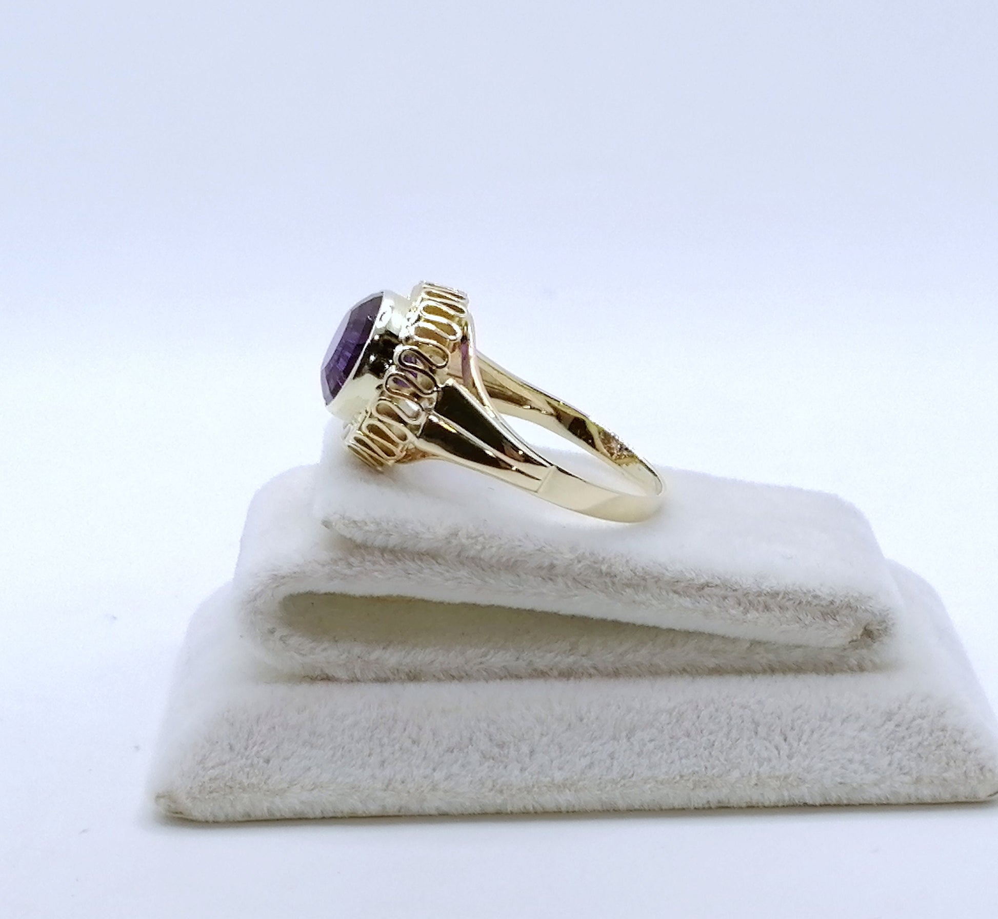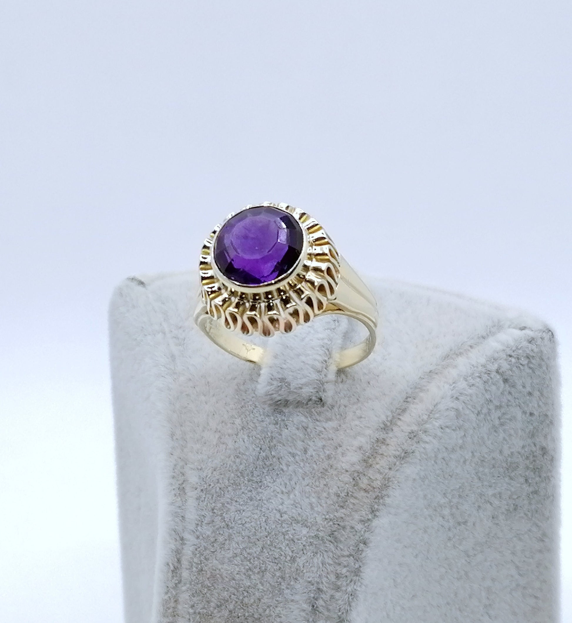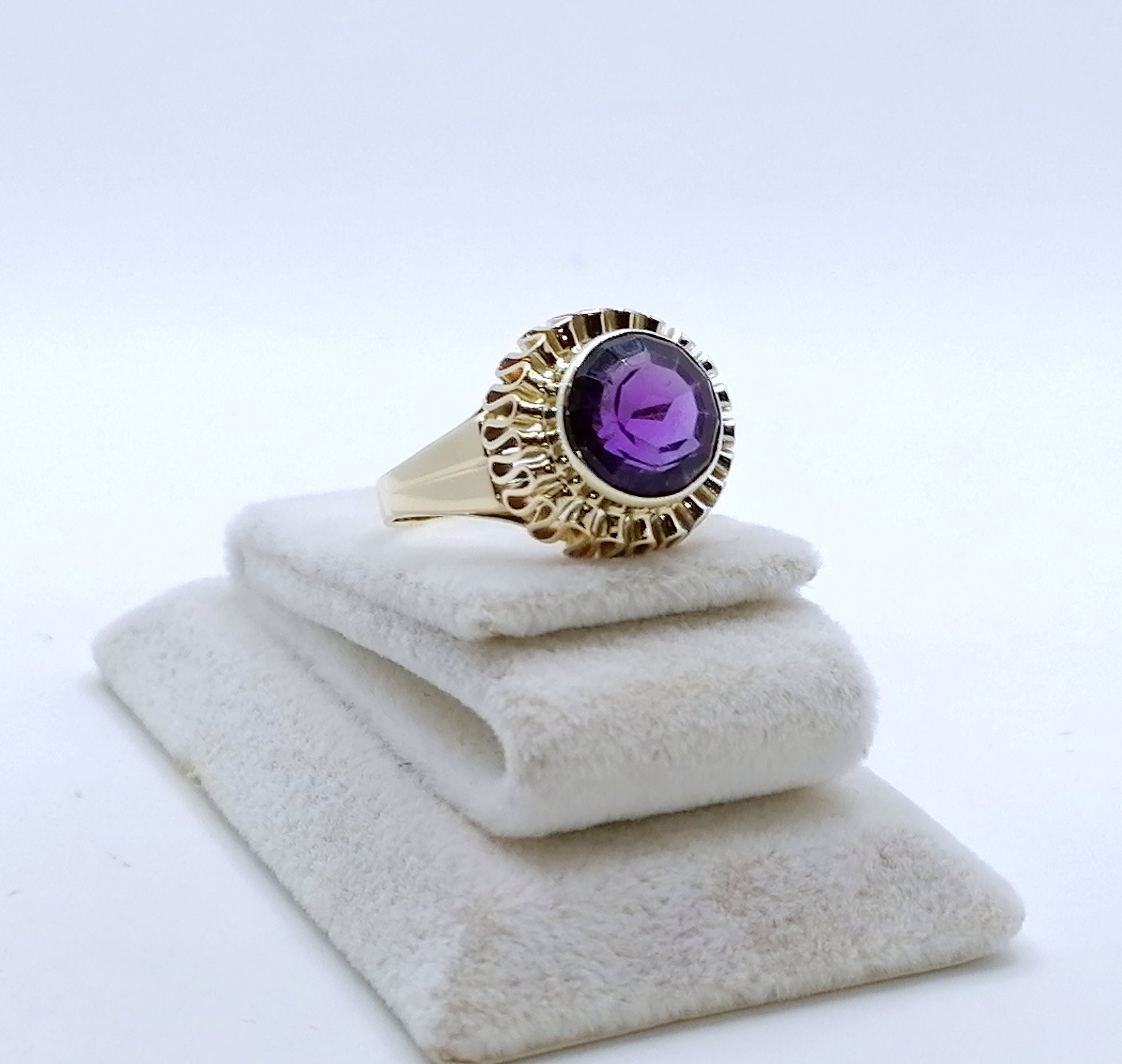 Gold Damenring mit Amethyst. Das Schmuckstück ist aus 585er 14 Karat Gold gefertigt.
