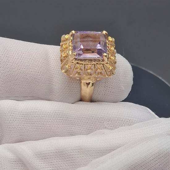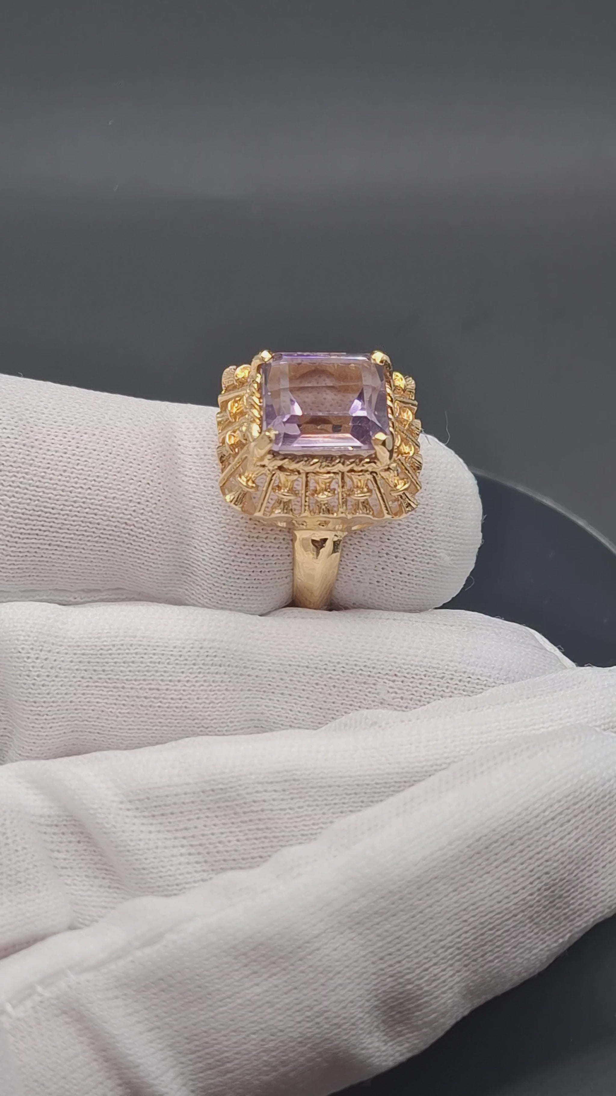 Prunkvoller Gold Damenring mit einem Amethyst. Der Ring ist aus 585er 14 Karat Gold gefertigt.