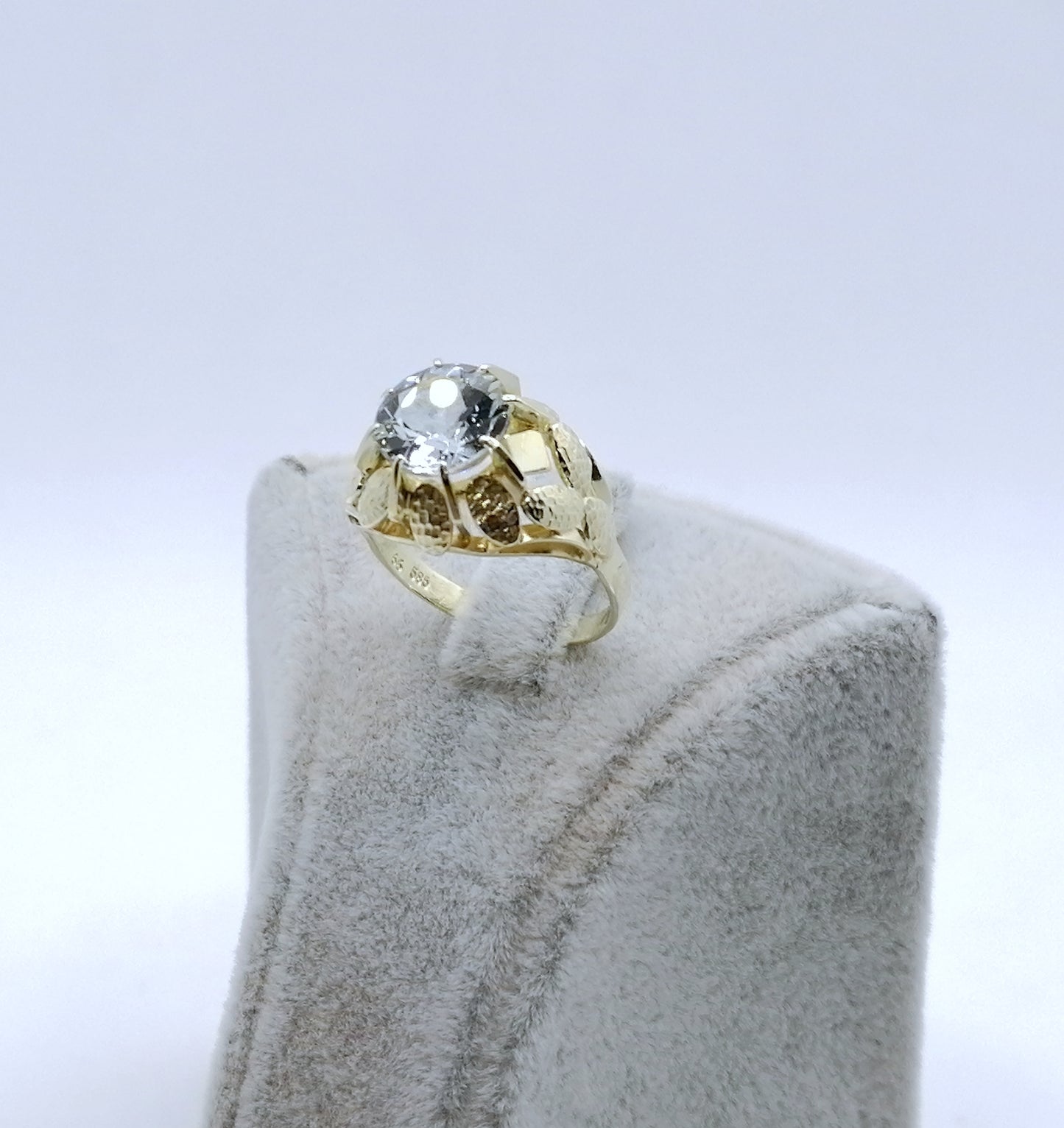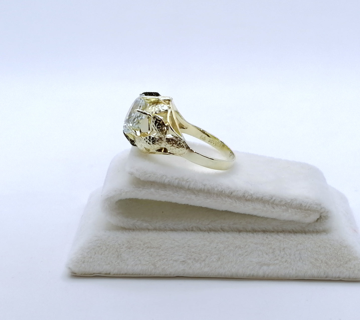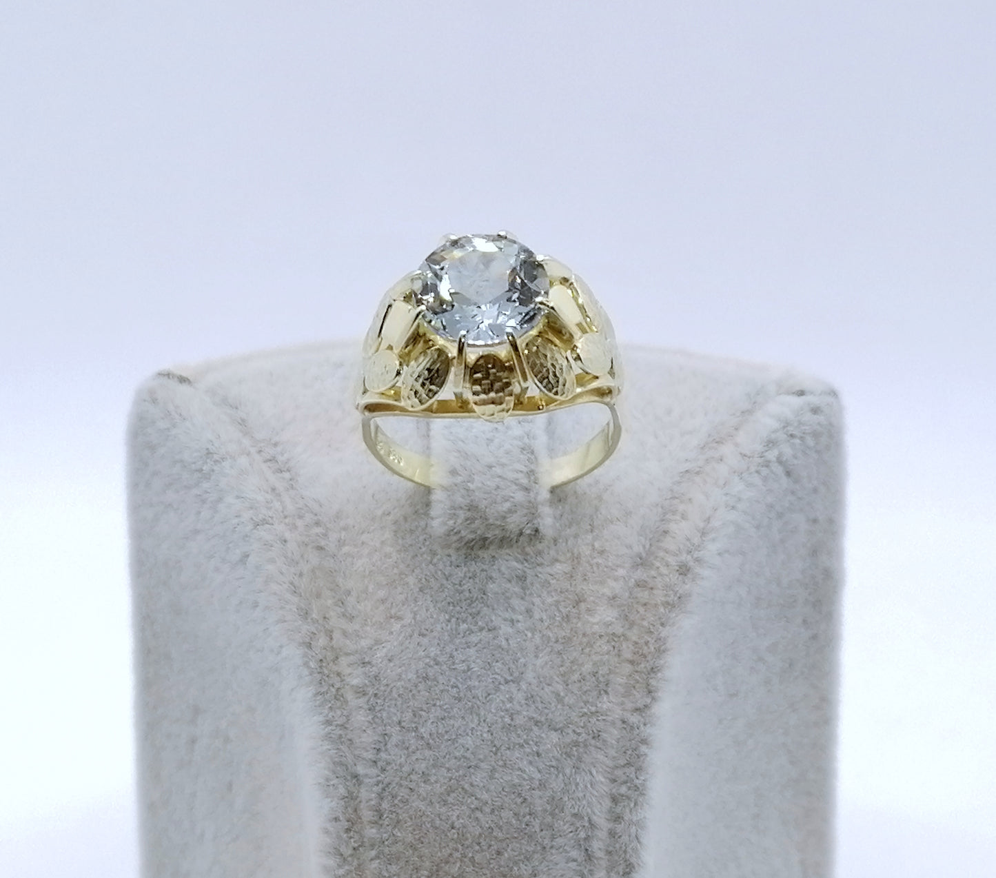 Vintage Gold Damenring mit einem Aquamarin Edelstein. Der Ring ist aus 585er 14 karat Gold gefertigt.