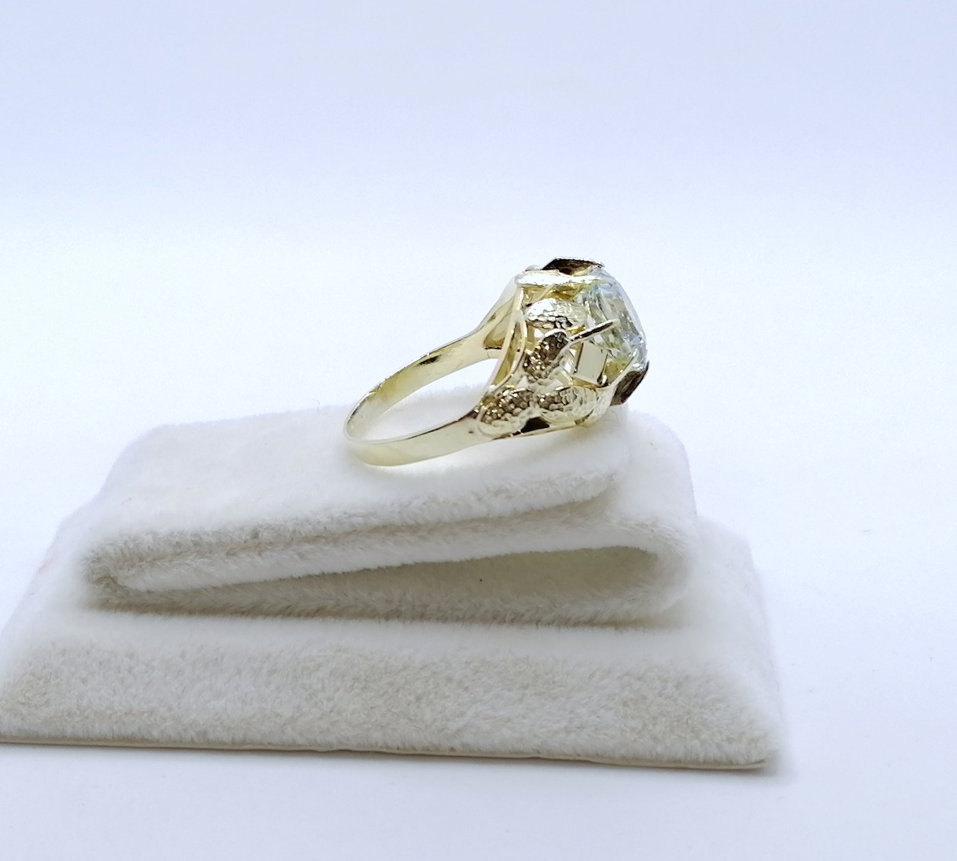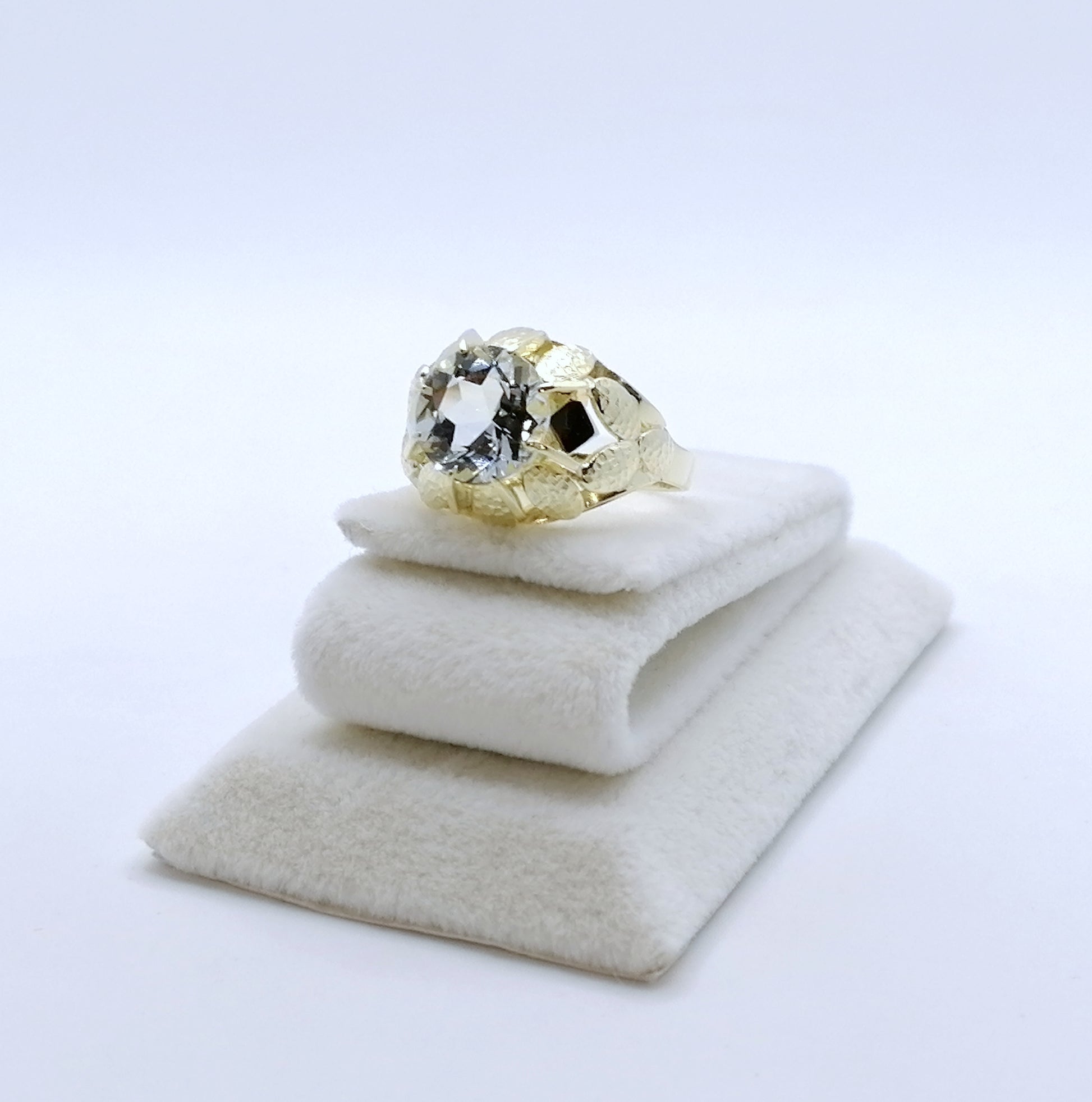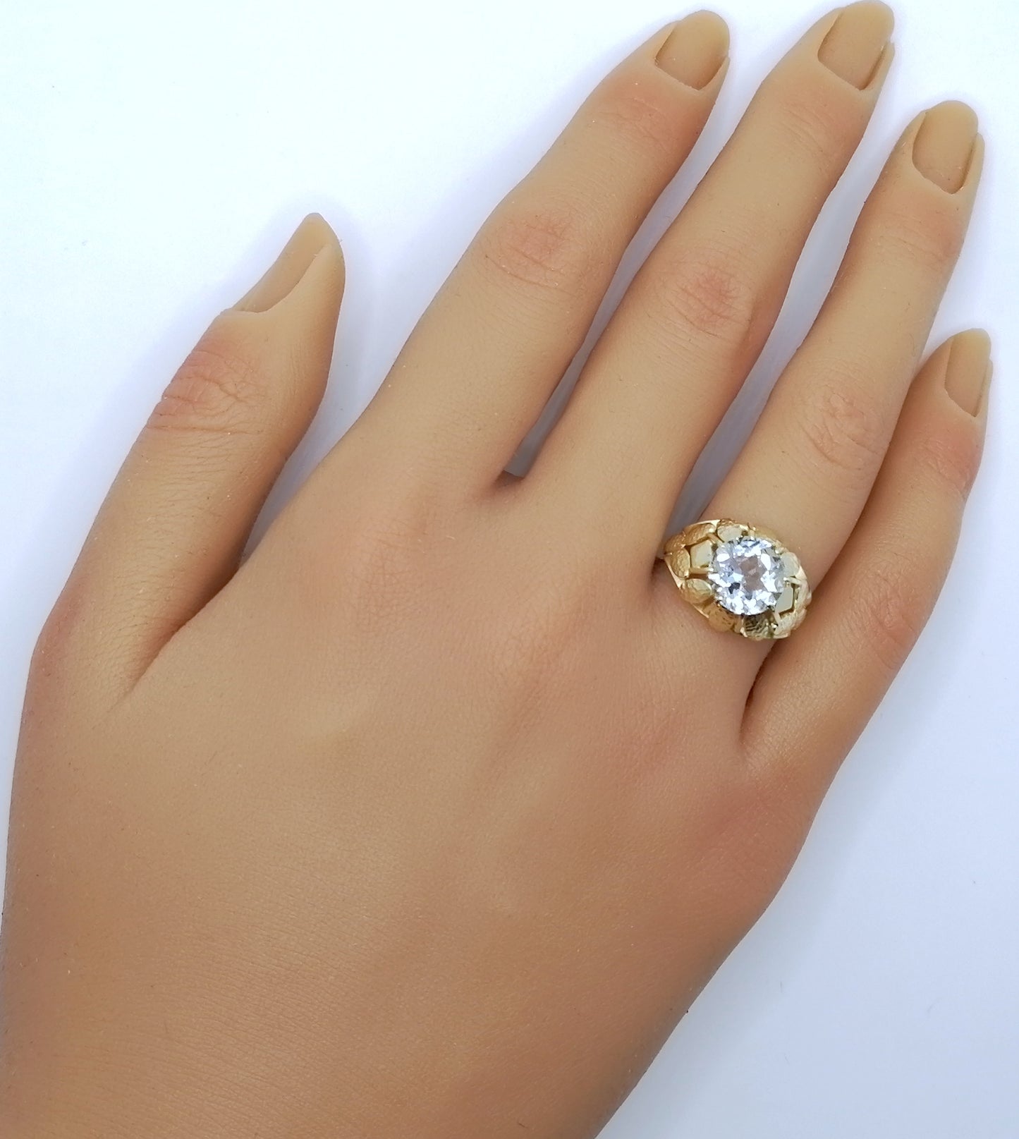 Vintage Gold Damenring mit einem Aquamarin Edelstein. Der Ring ist aus 585er 14 karat Gold gefertigt.