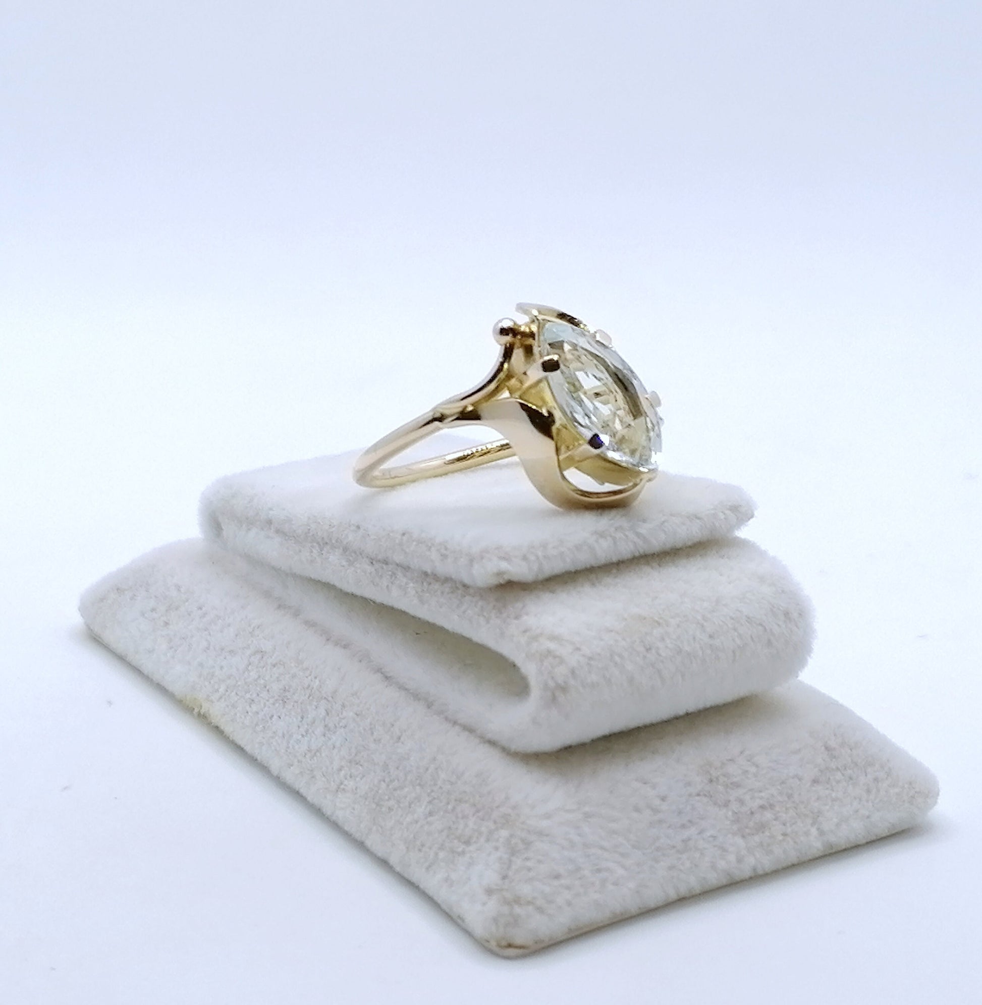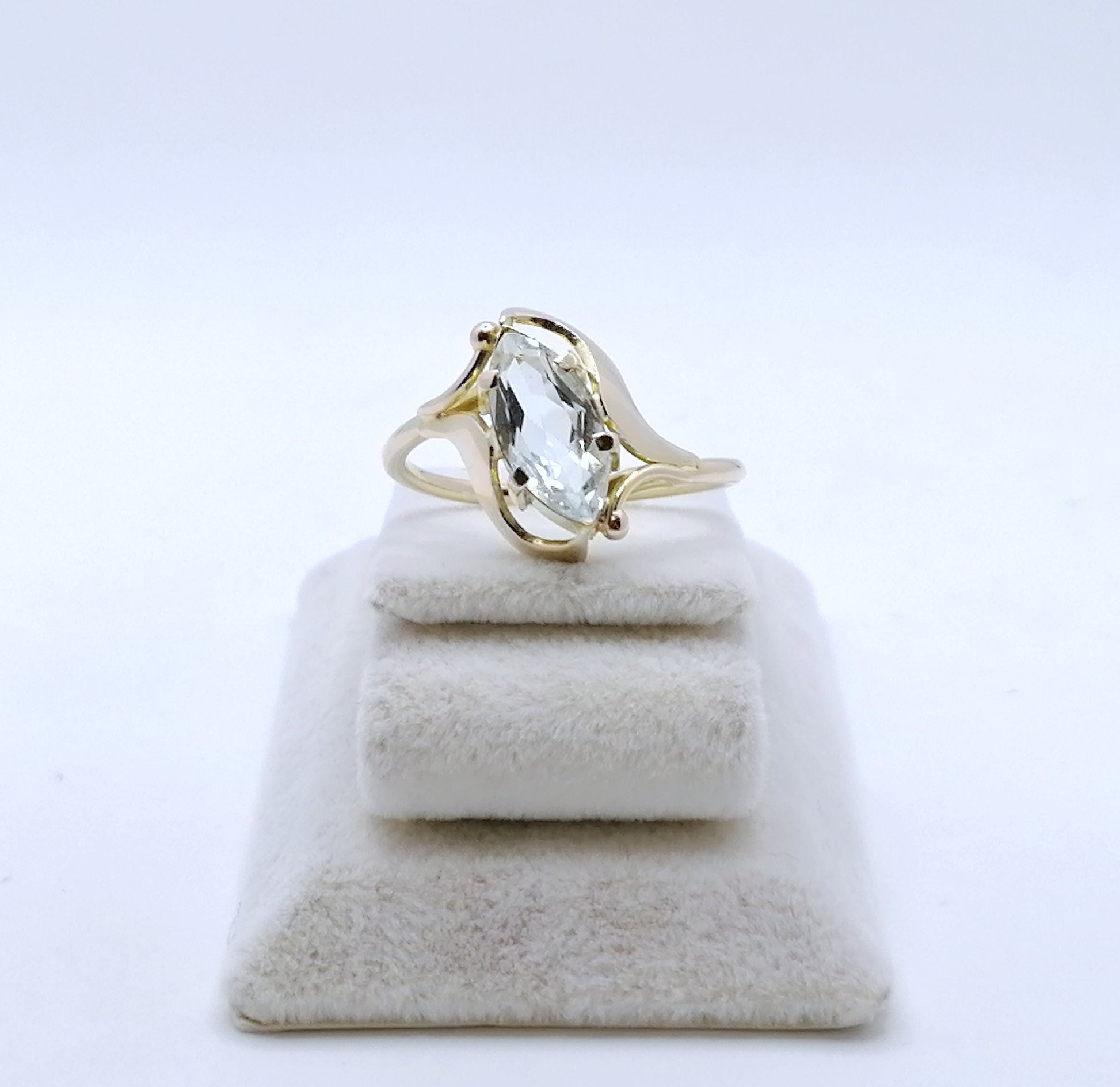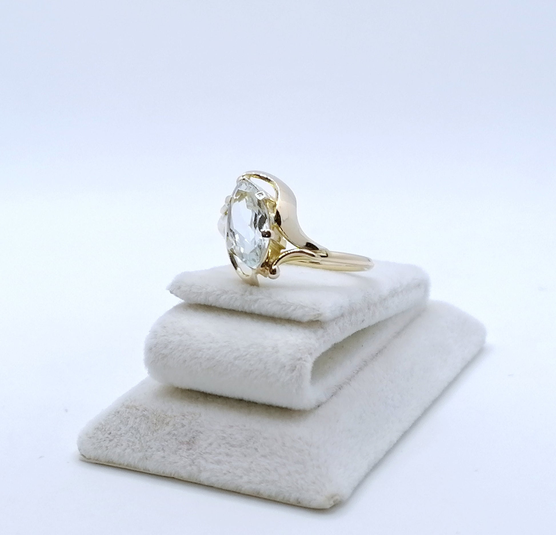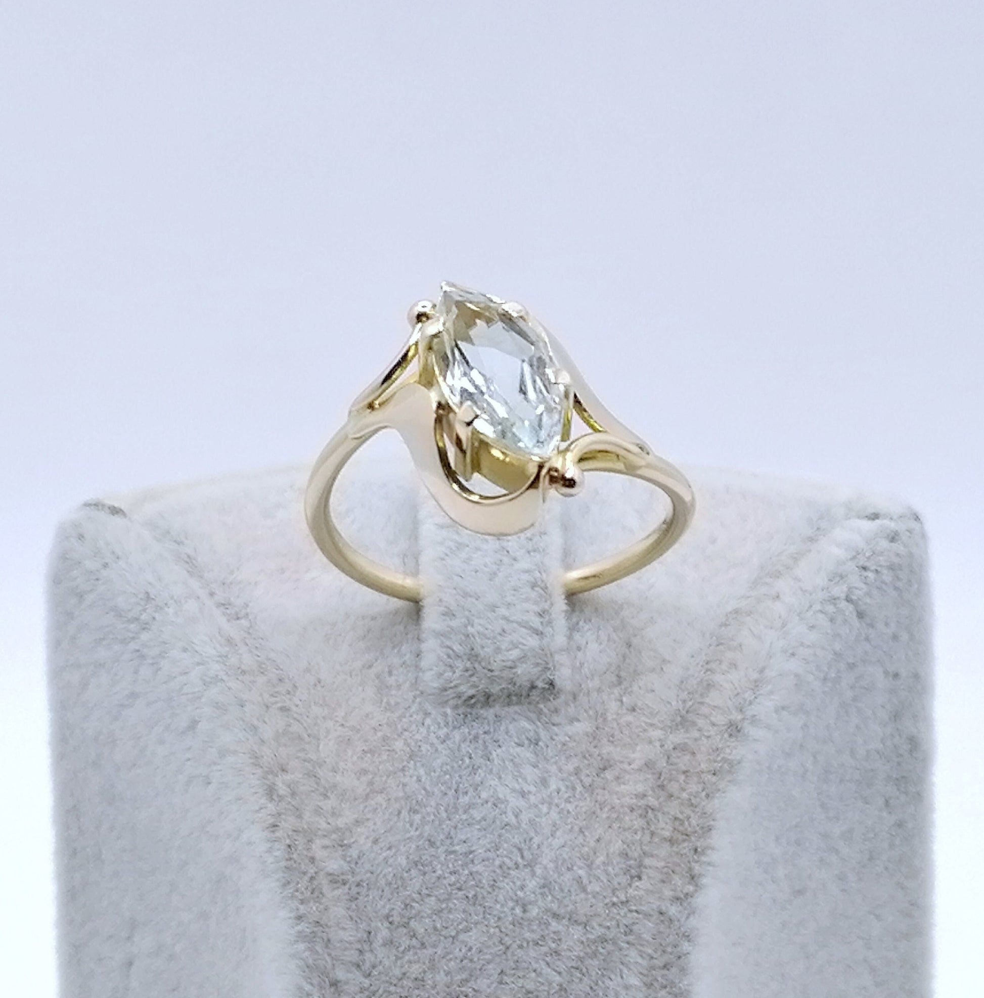 Gold Damenring mit einem Aquamarin Edelstein. Der Ring ist aus 585er 14 karat Gold gefertigt.