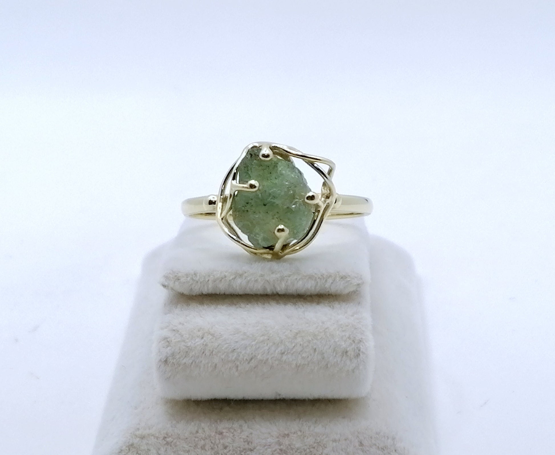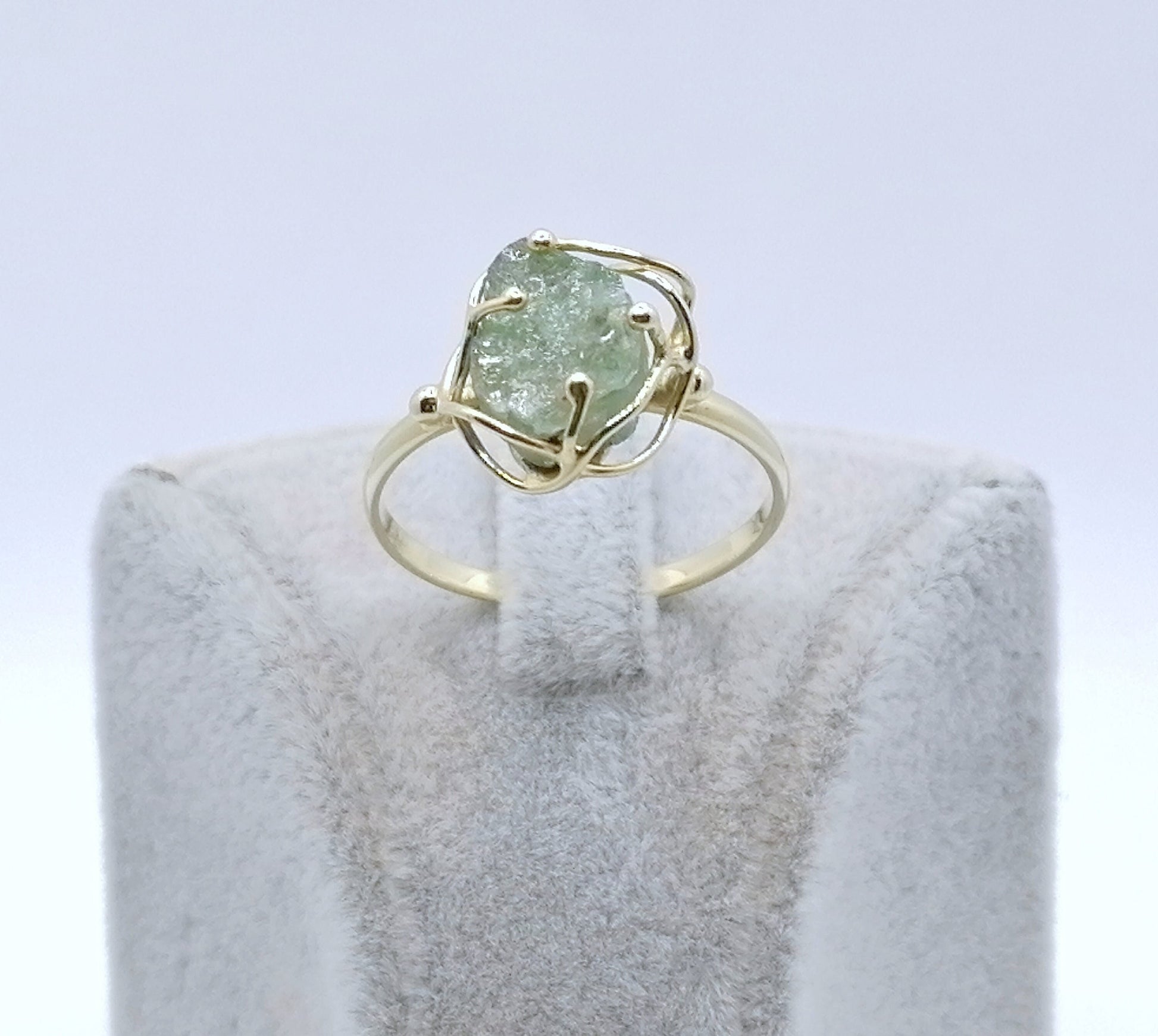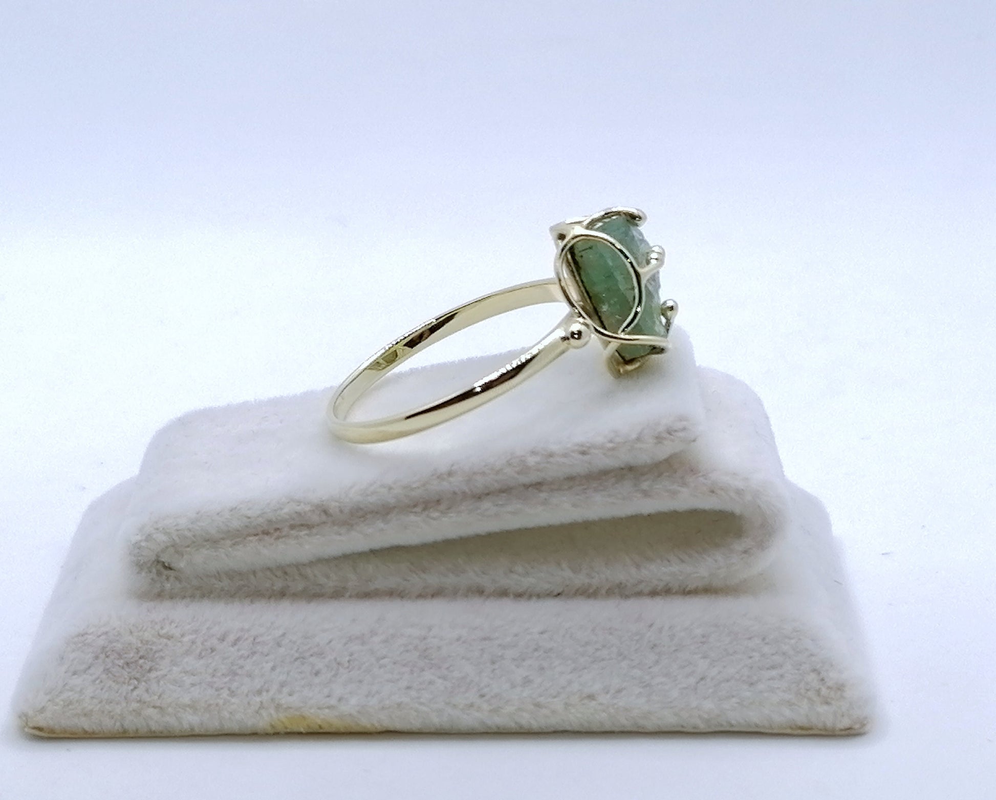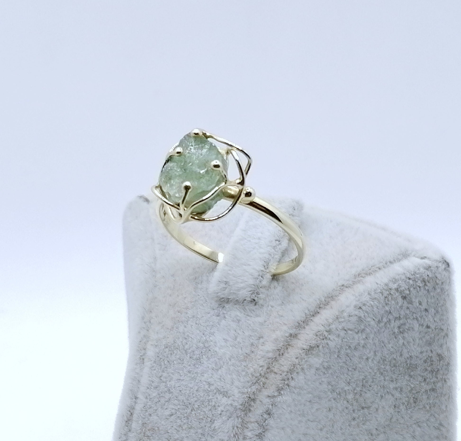 Gold Damenring mit einem Aquamarin Stein. Der Ring ist aus 585er 14 karat Gold gefertigt.
