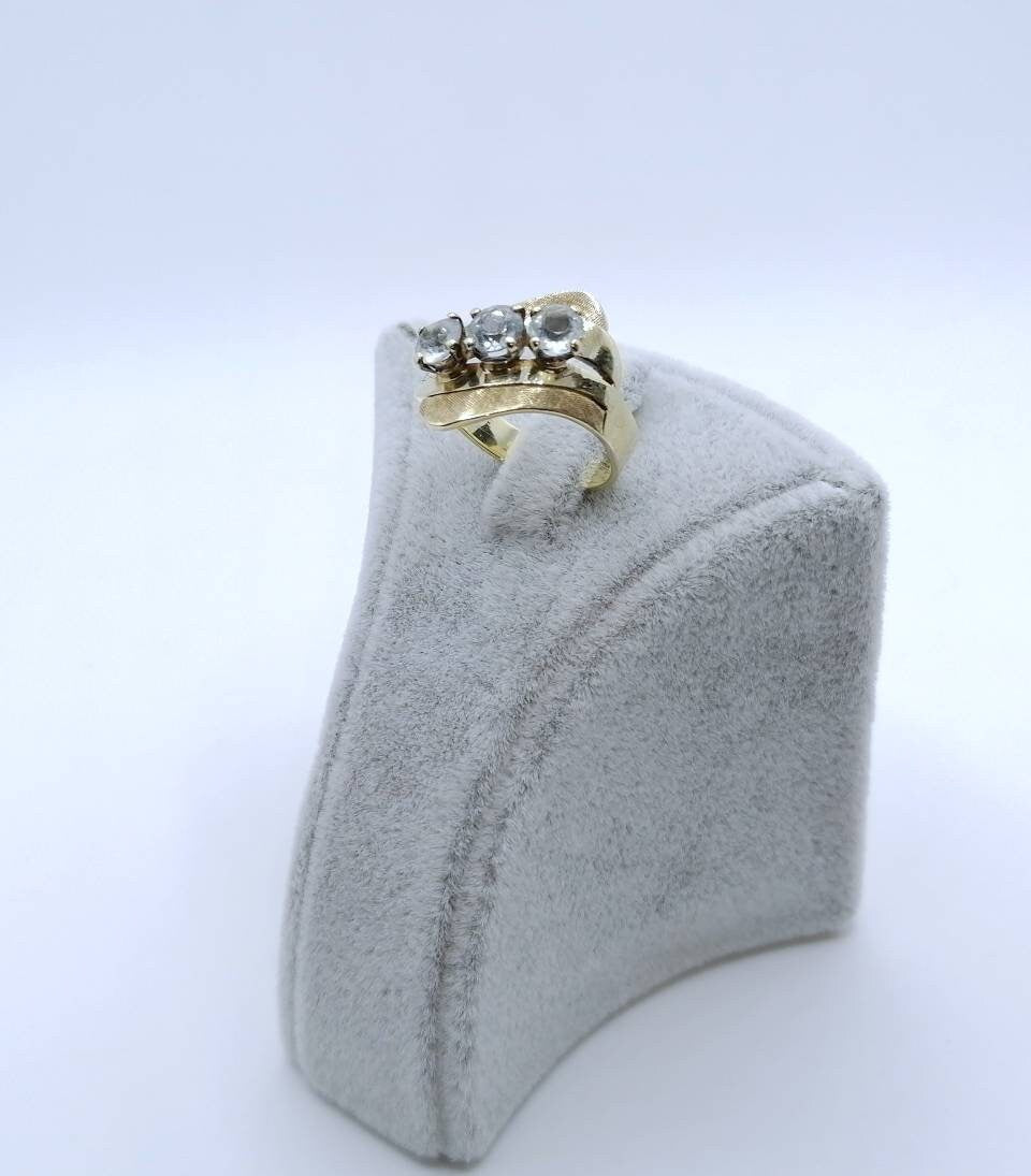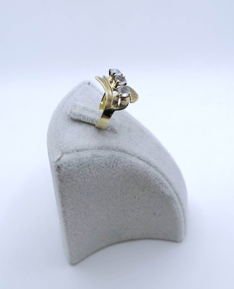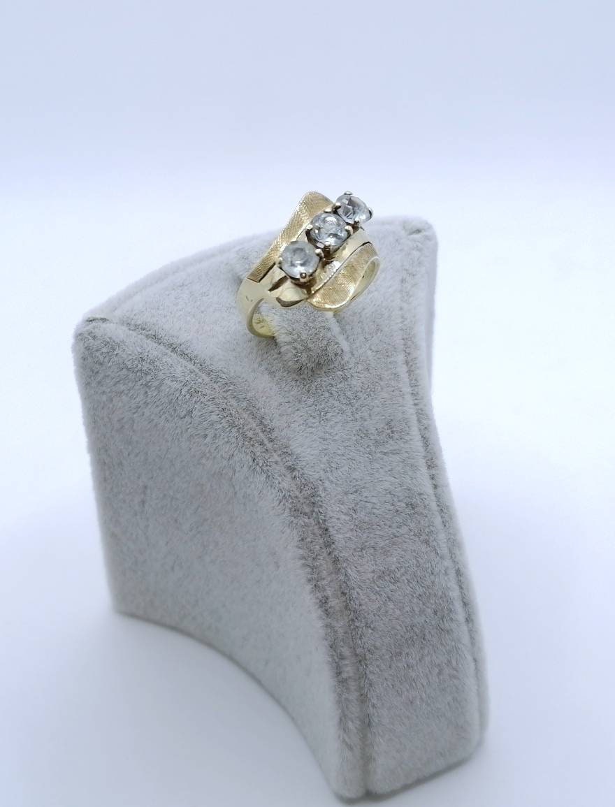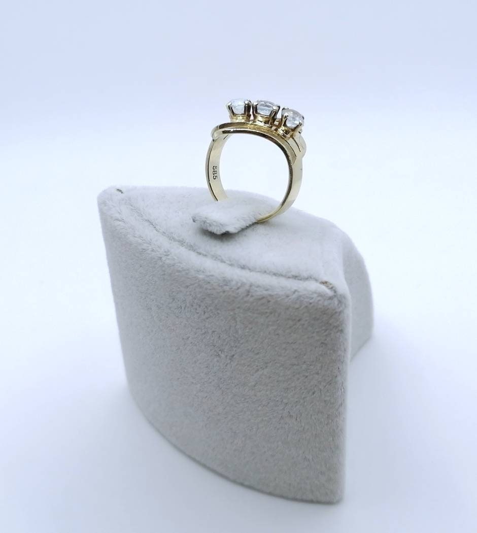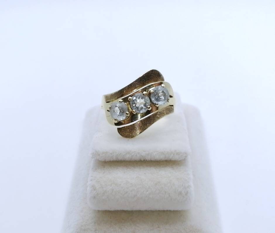 Vintage Damenring aus 585er 14 Karat Gold mit drei Aquamarin Edelsteinen.