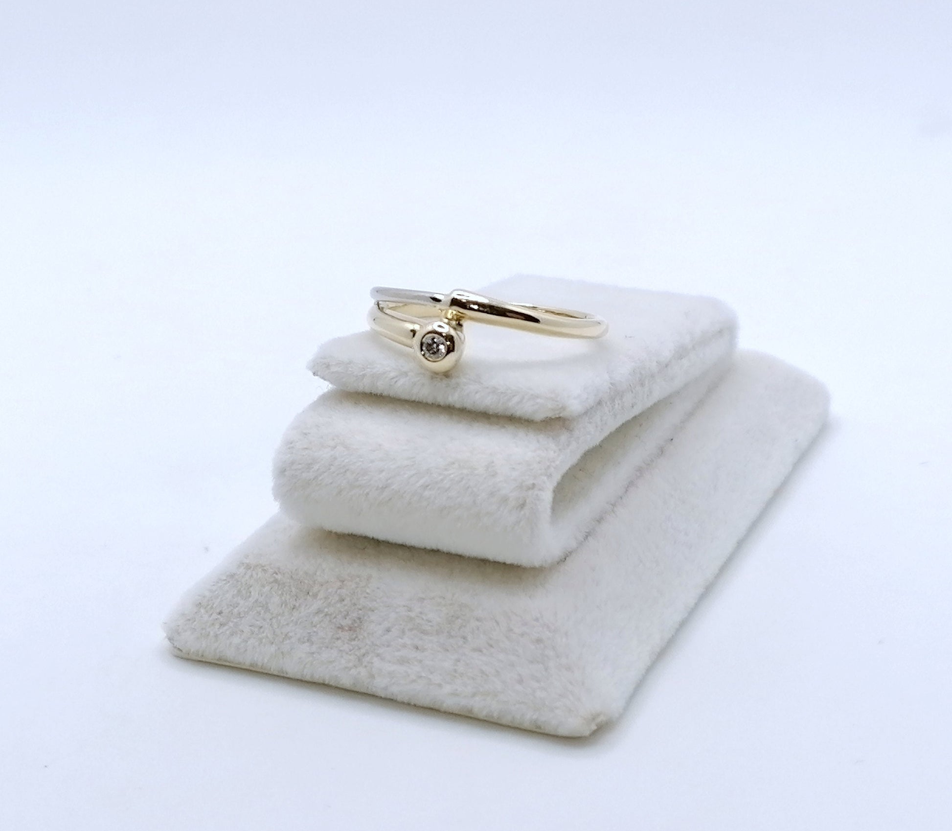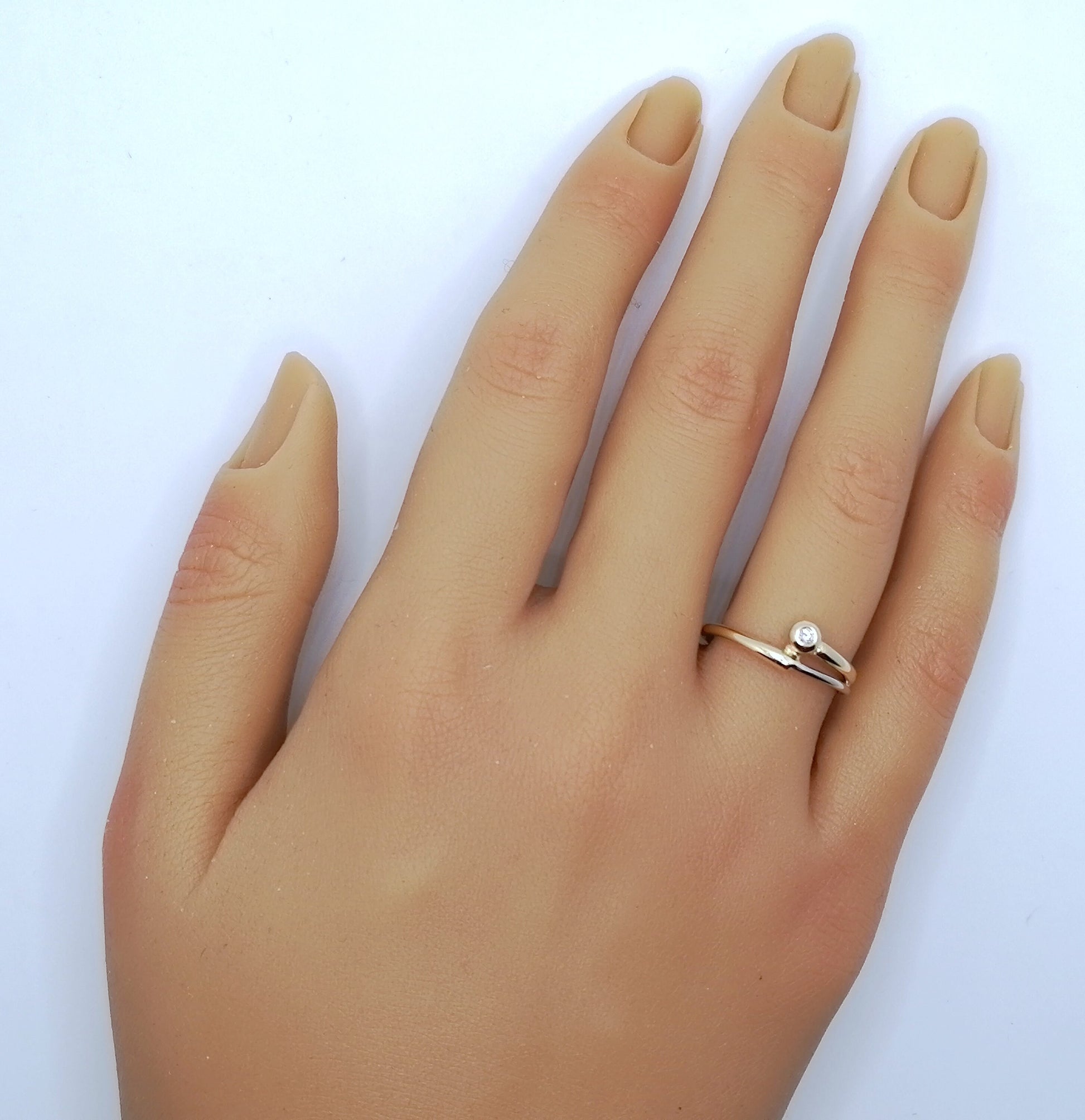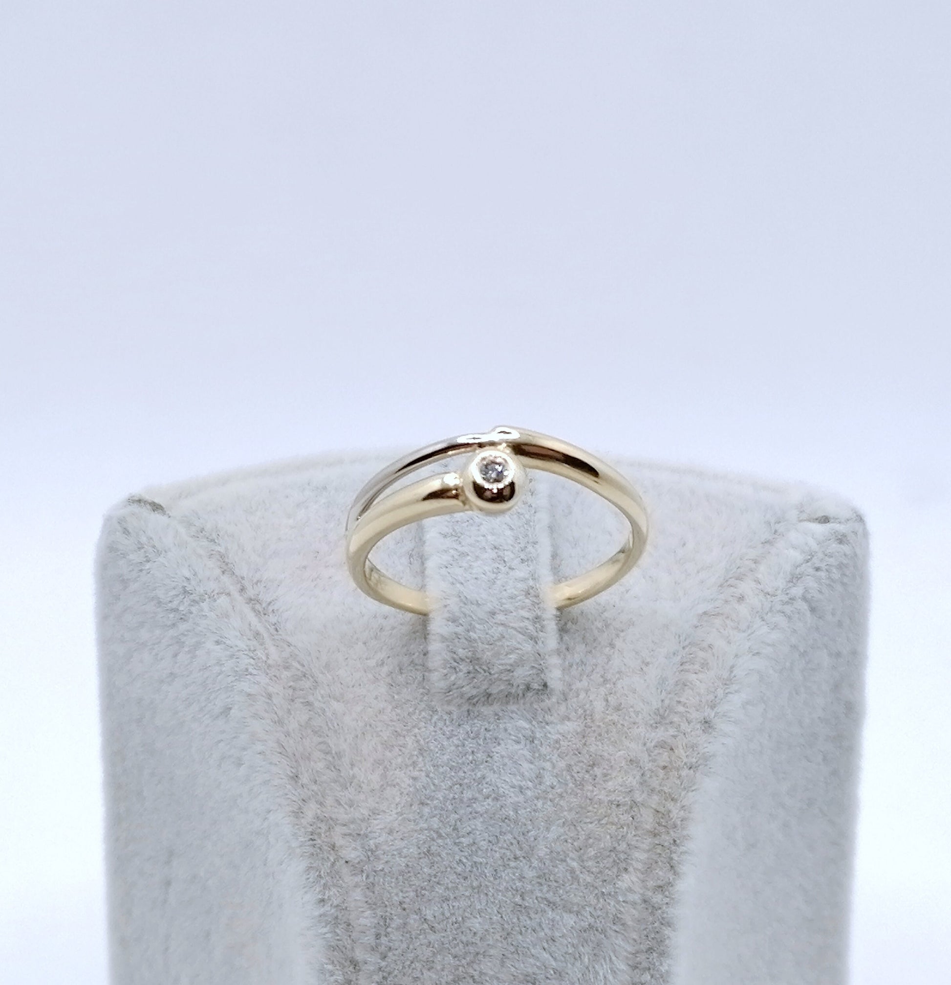 Bicolor (Weißgold /Gelbgold) Damenring mit einem funkelnden Diamanten. Der Ring ist aus 585er 14 Karat Gold gefertigt.