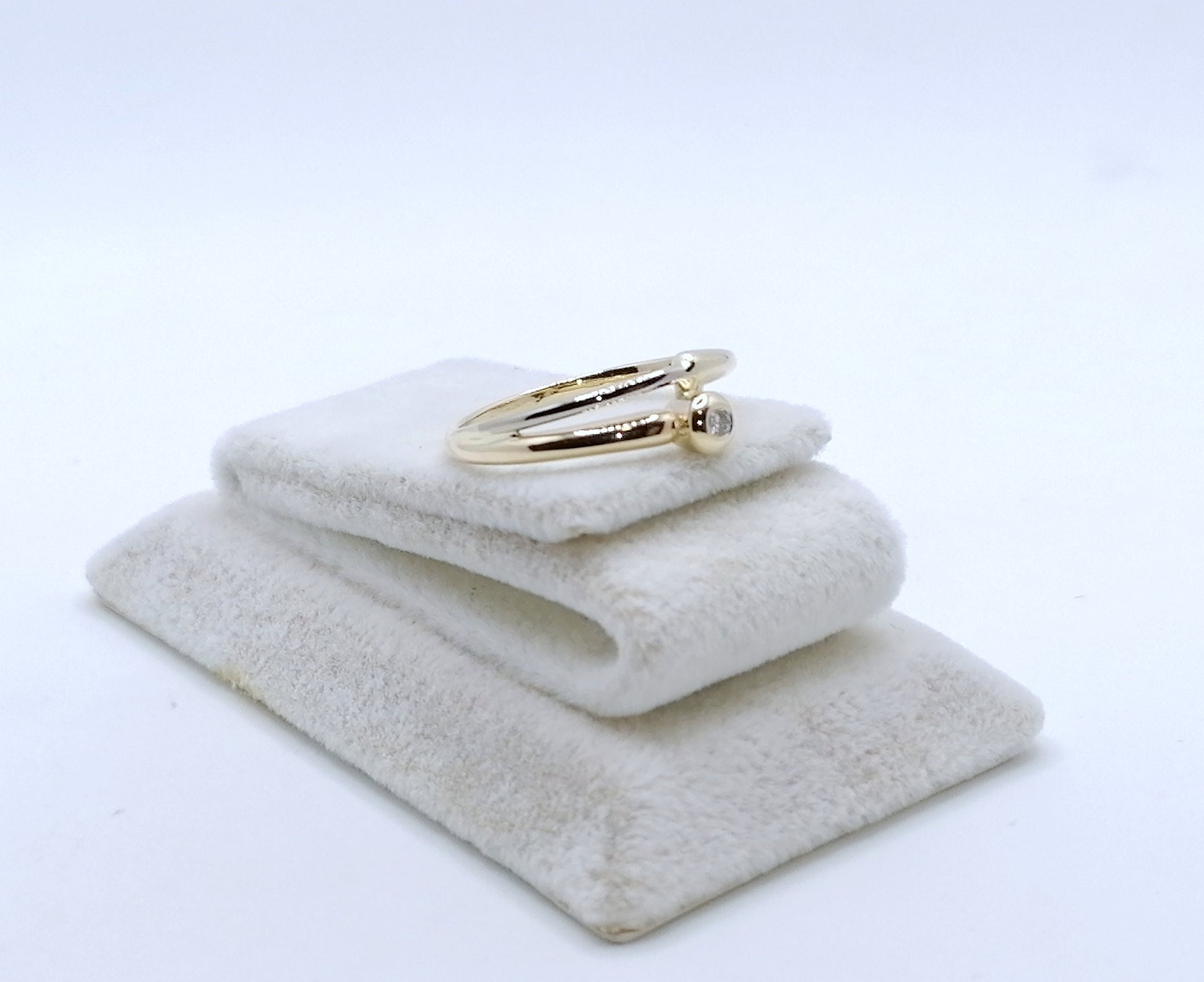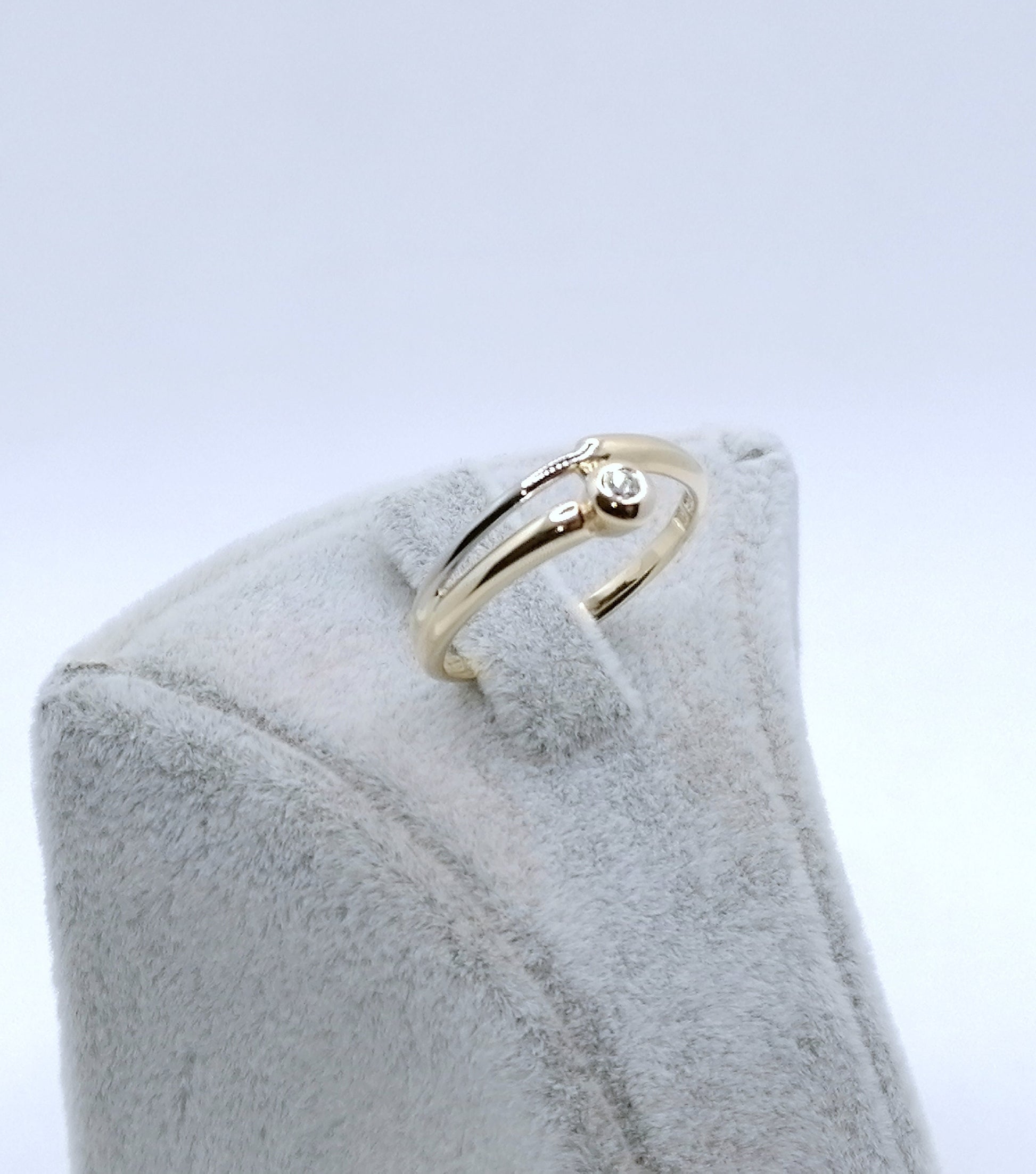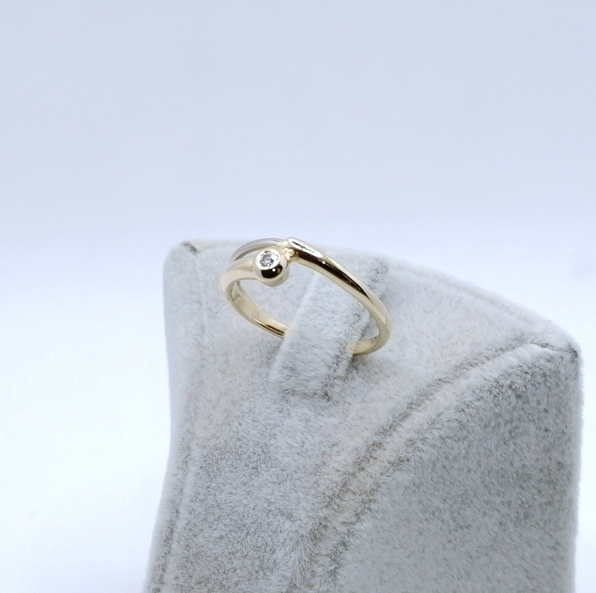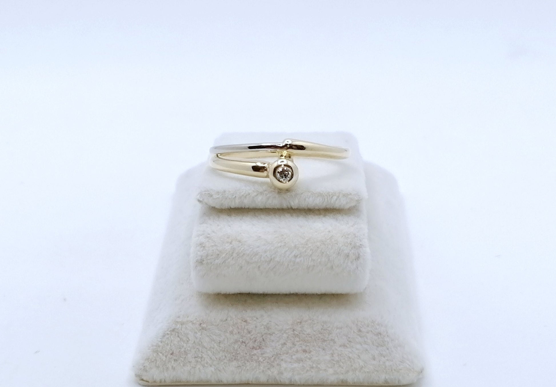 Bicolor (Weißgold /Gelbgold) Damenring mit einem funkelnden Diamanten. Der Ring ist aus 585er 14 Karat Gold gefertigt.