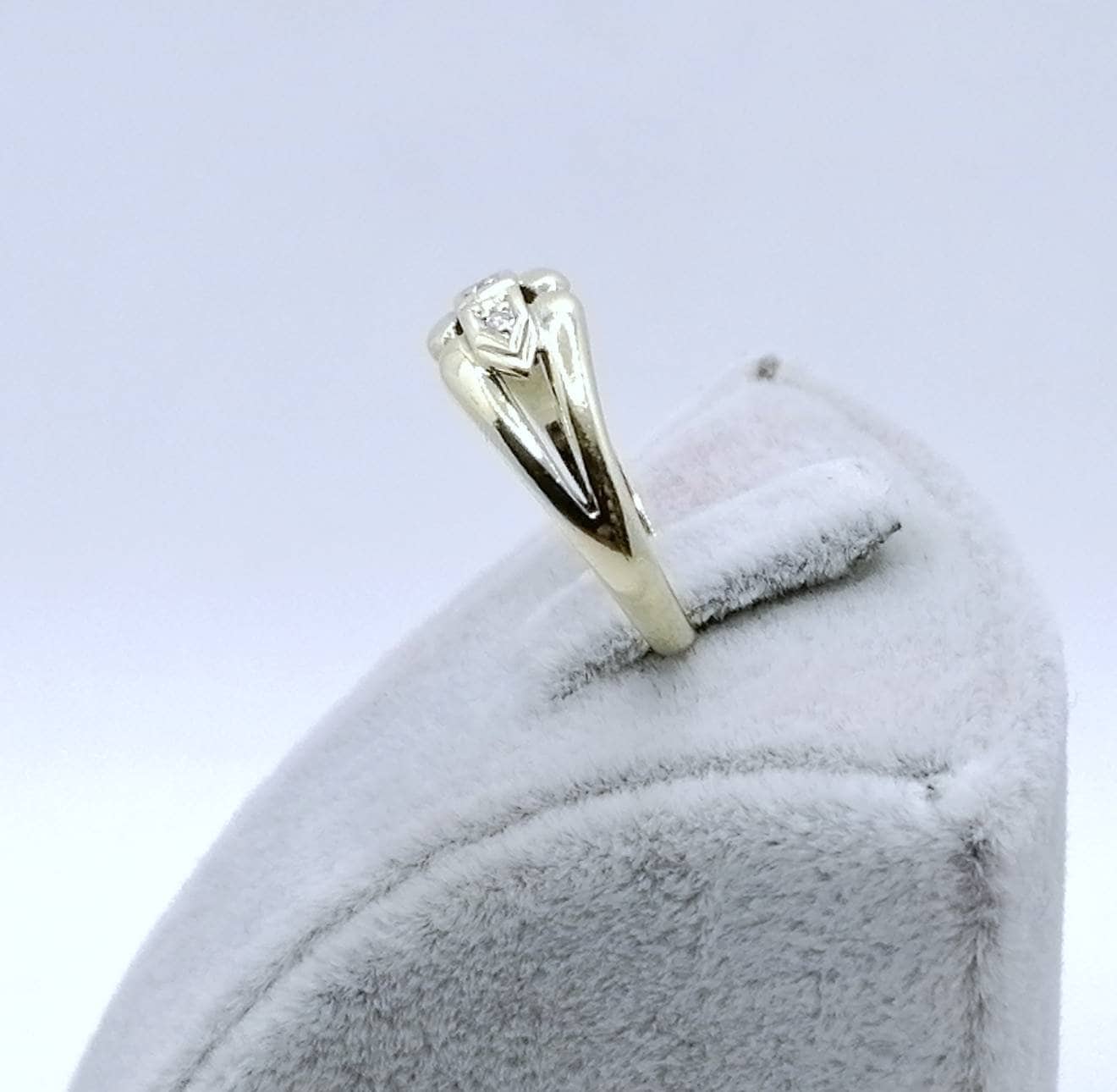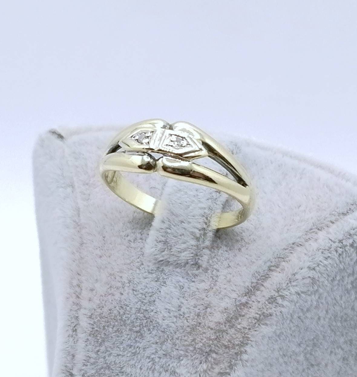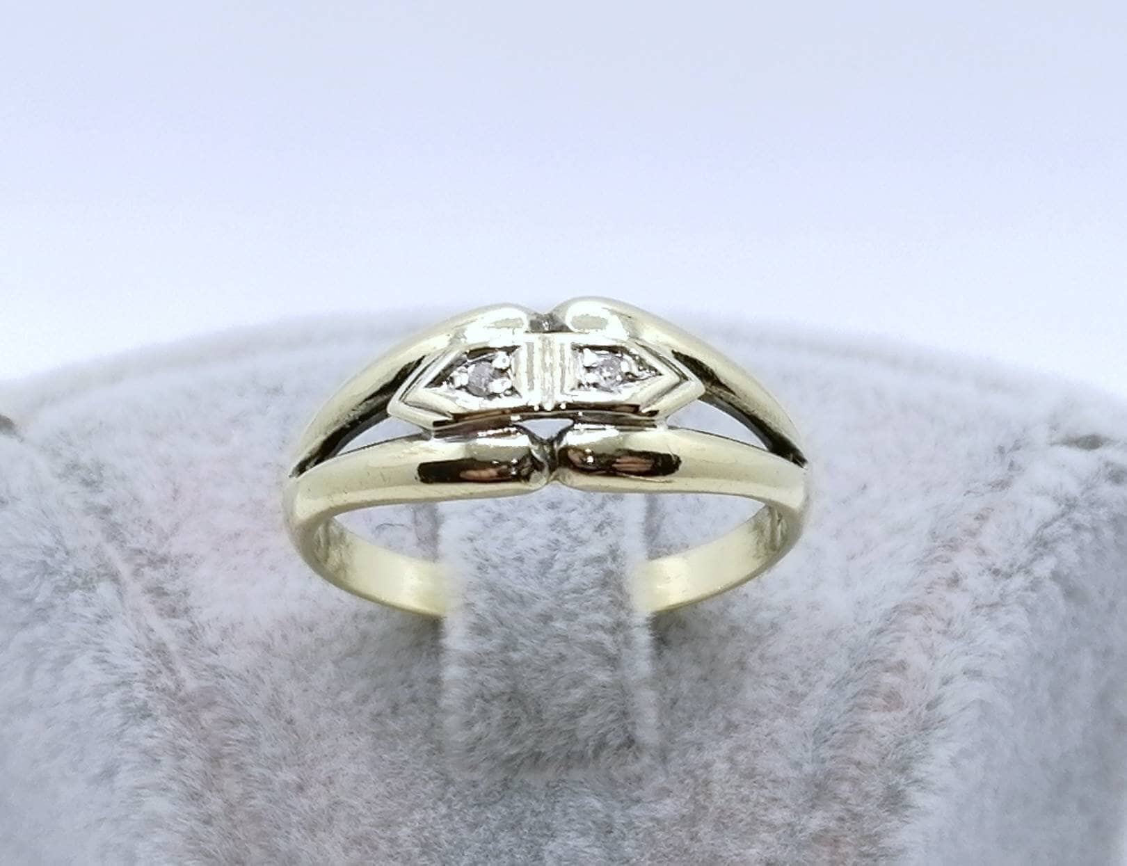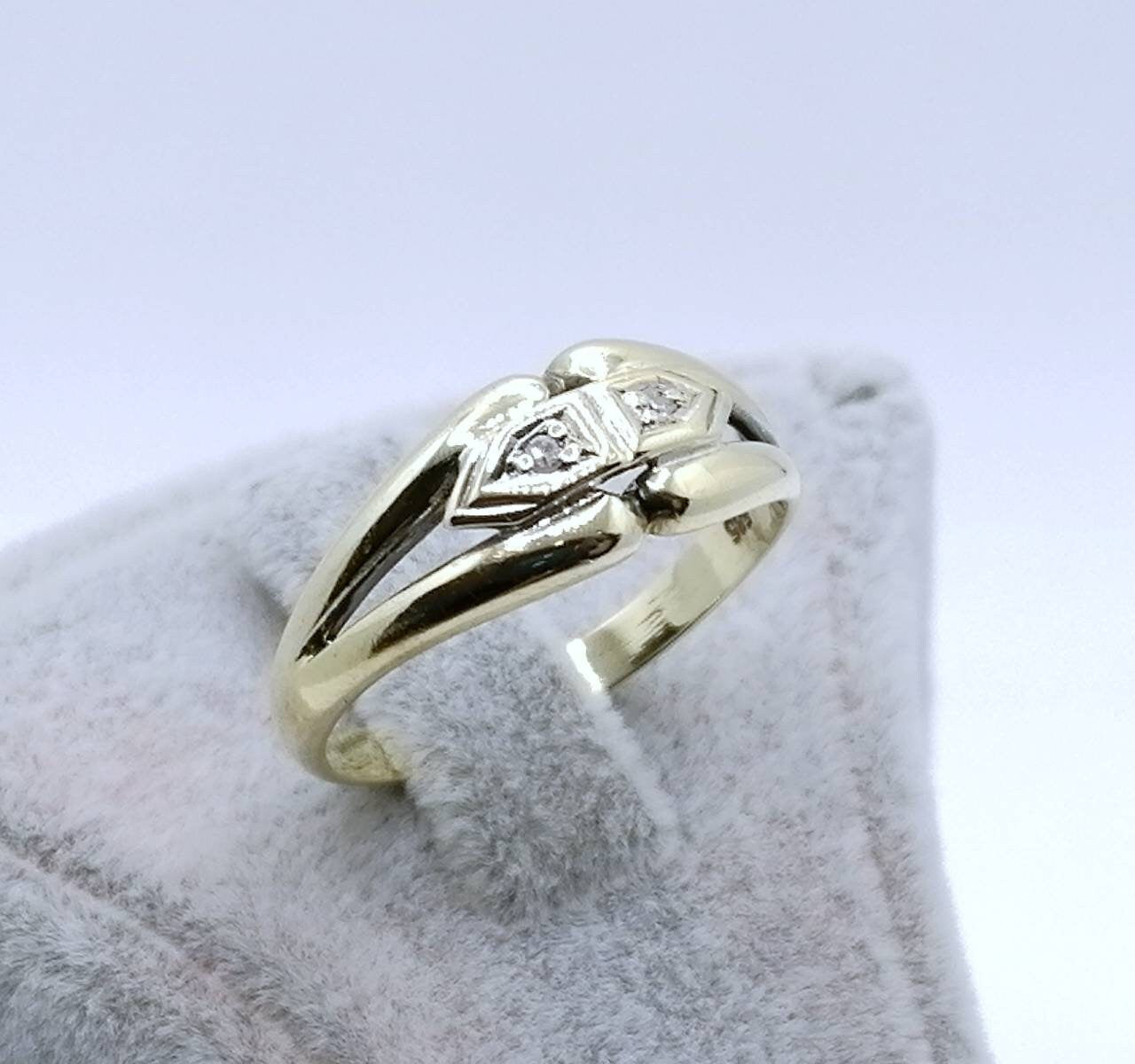 Vintage Gold Damenring mit zwei funkelnden Brillanten. Der Ring ist aus 585er 14 karat Gold gefertigt.