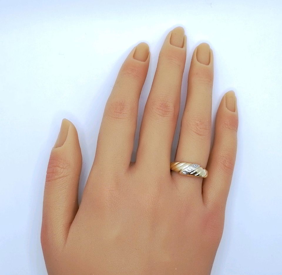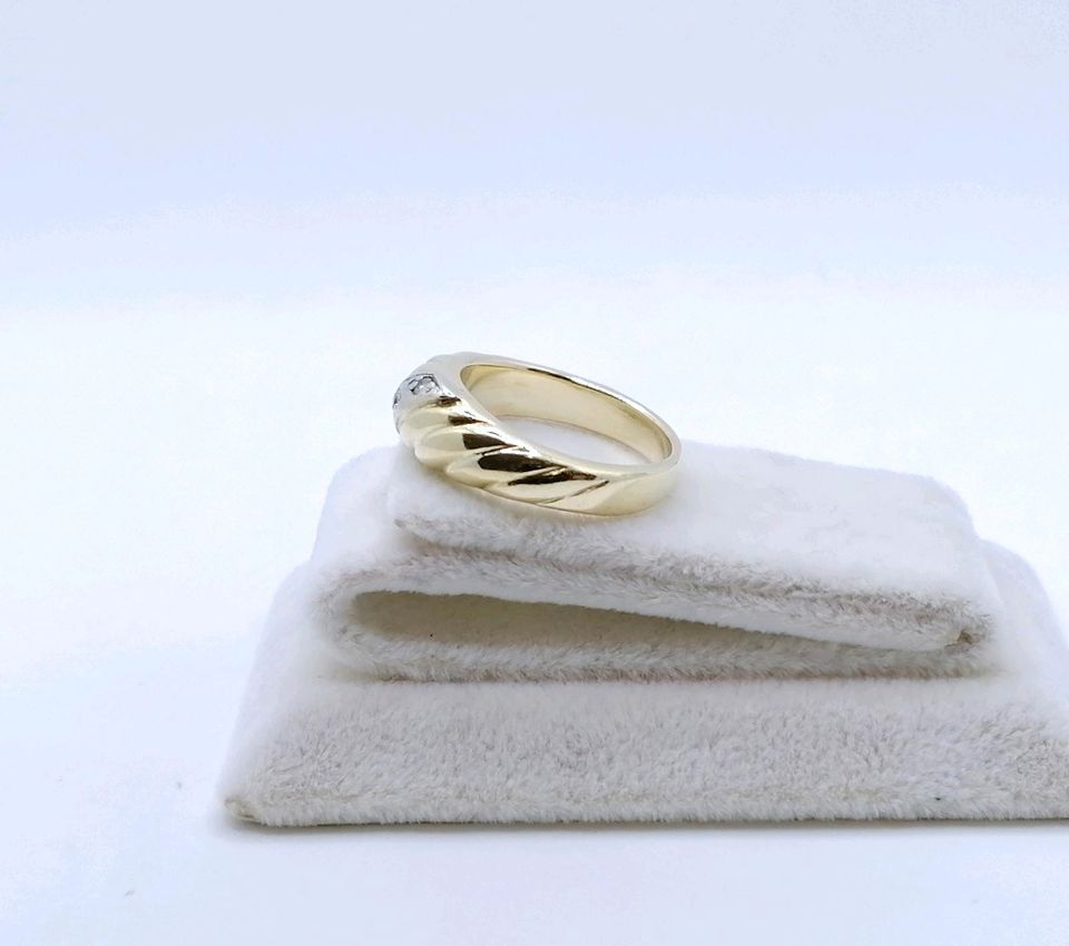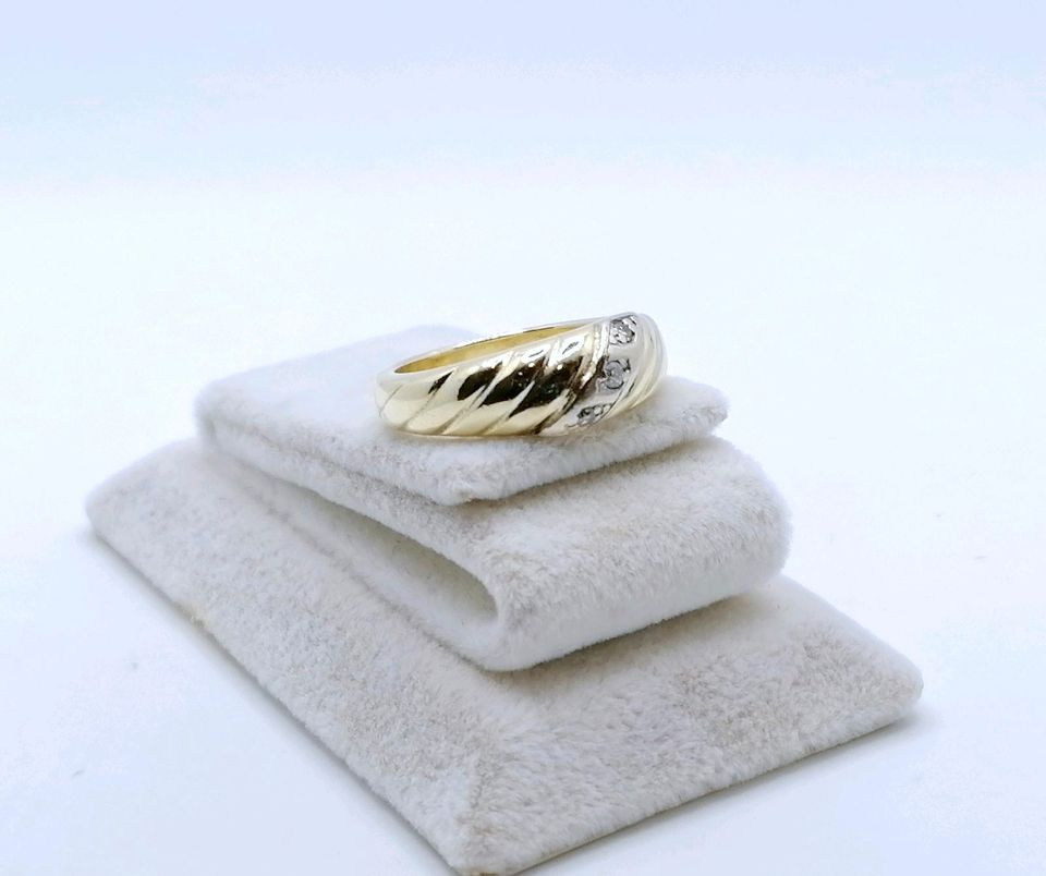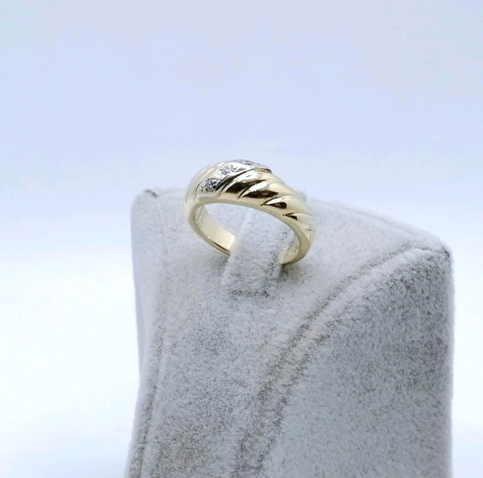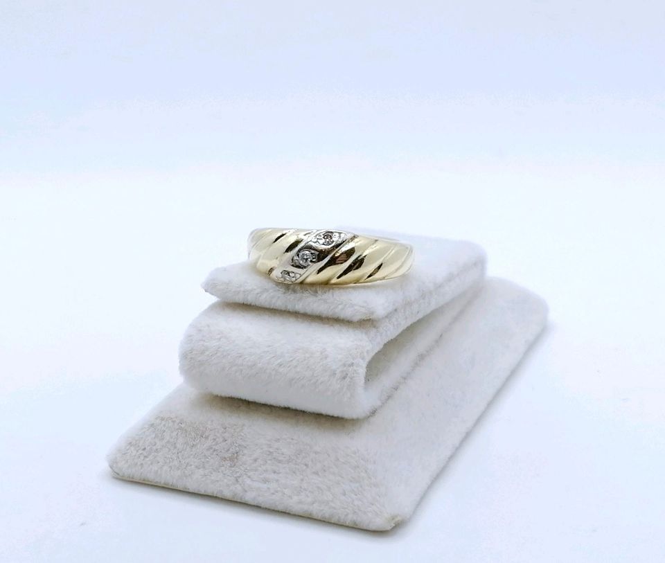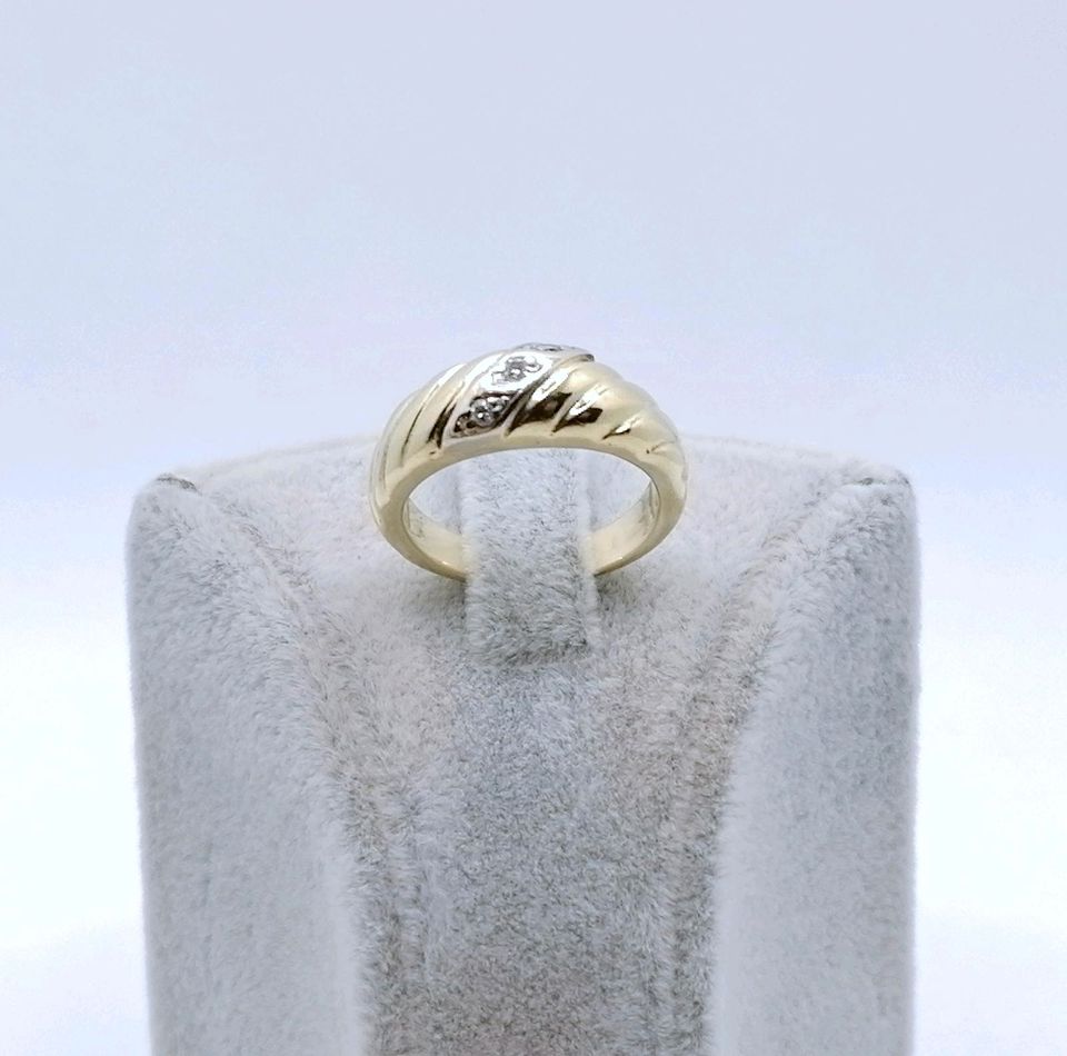 Neuwertiger Gold Damenring mit drei funkelnden Diamantsplitter. Der Ring ist aus 585er 14 karat Gold gefertigt.