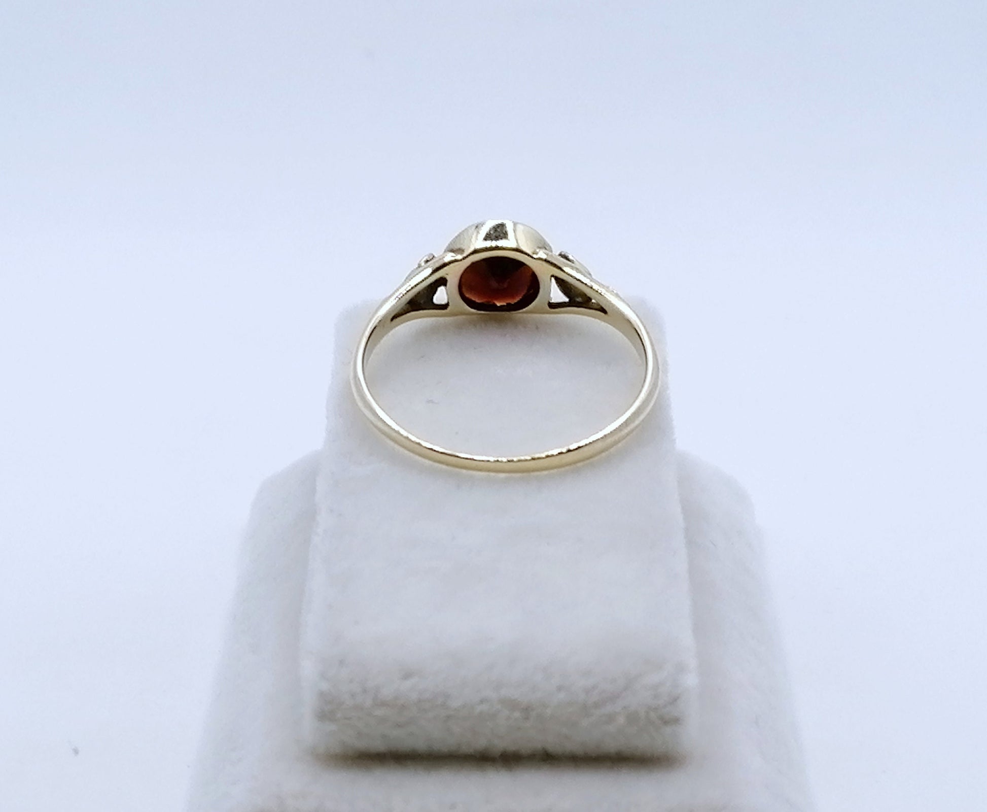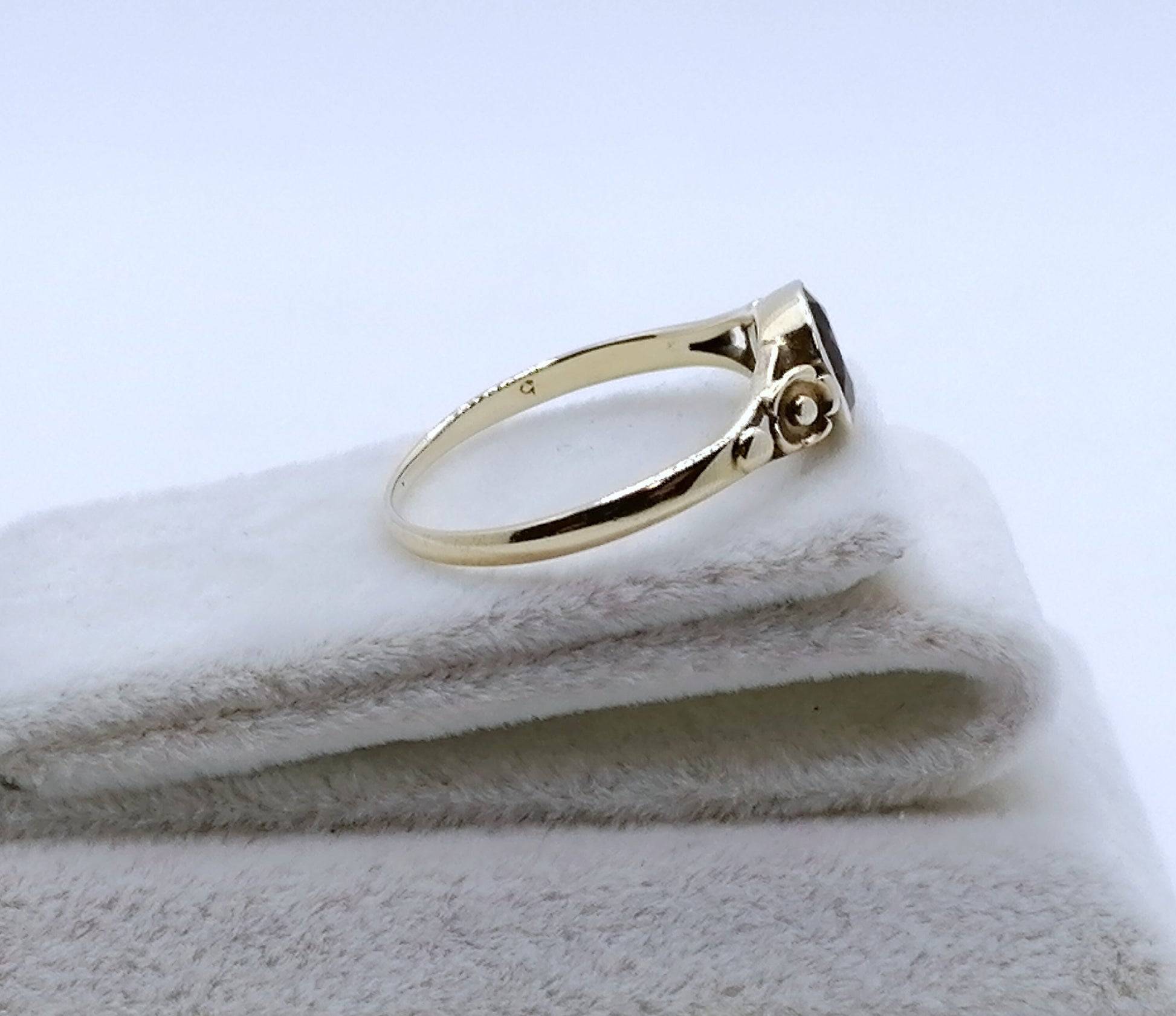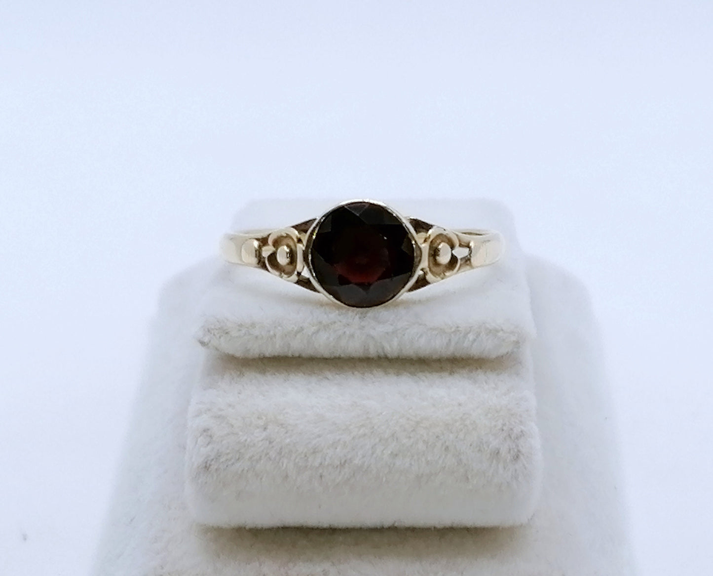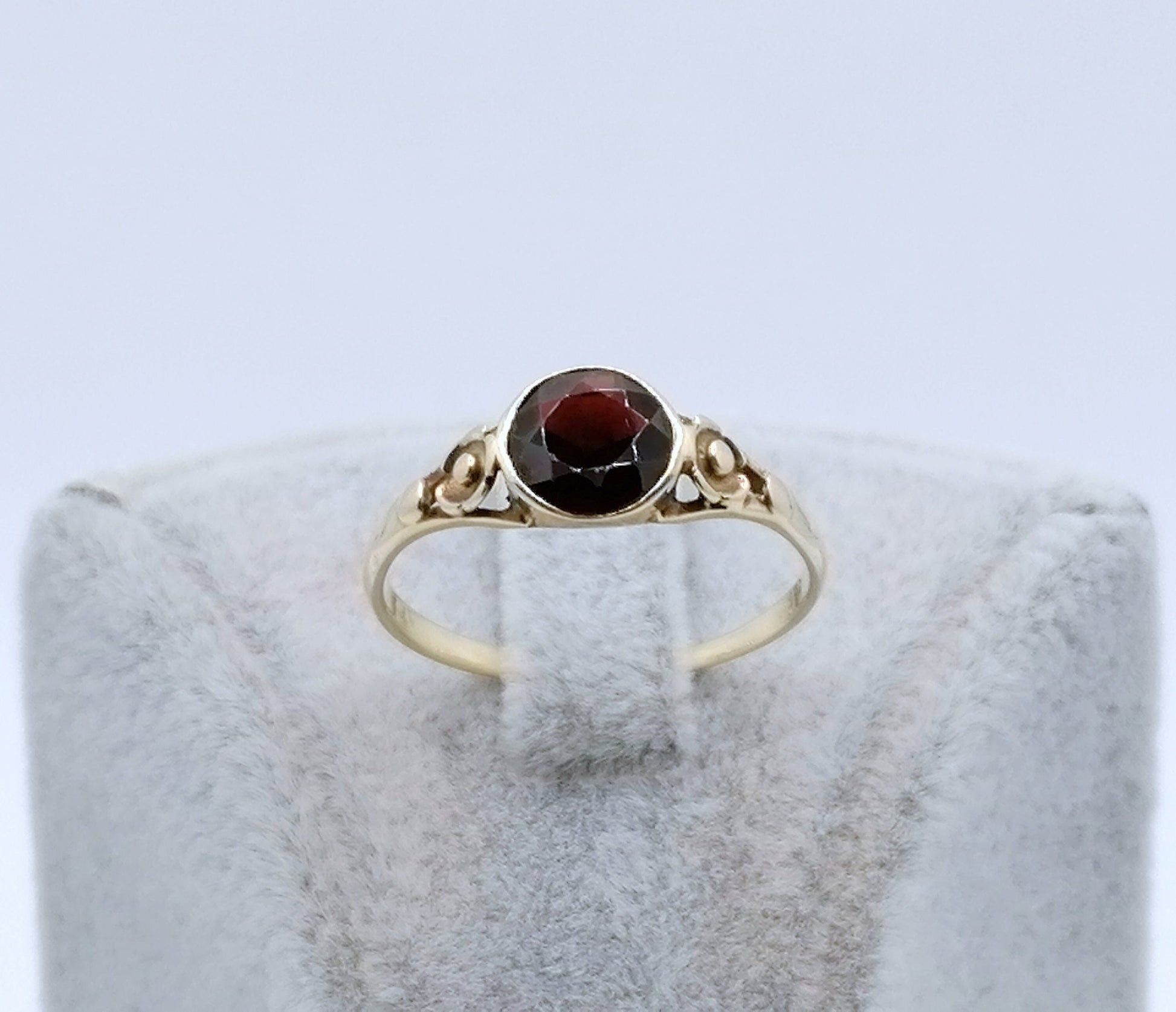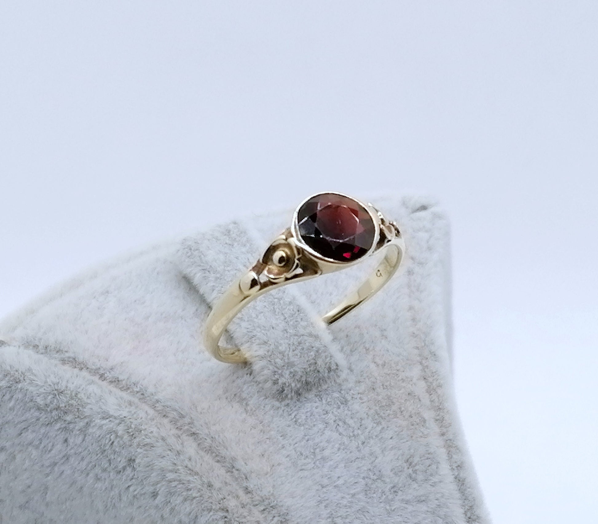Vintage Gold Damenring mit einem Granatstein. Der Ring ist aus 585er 14 karat Gold gefertigt.