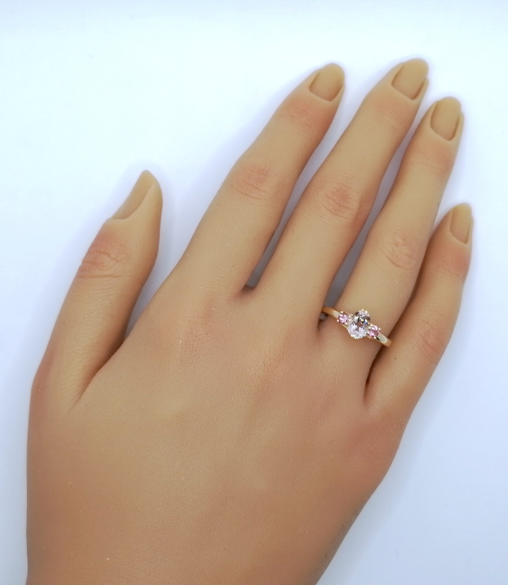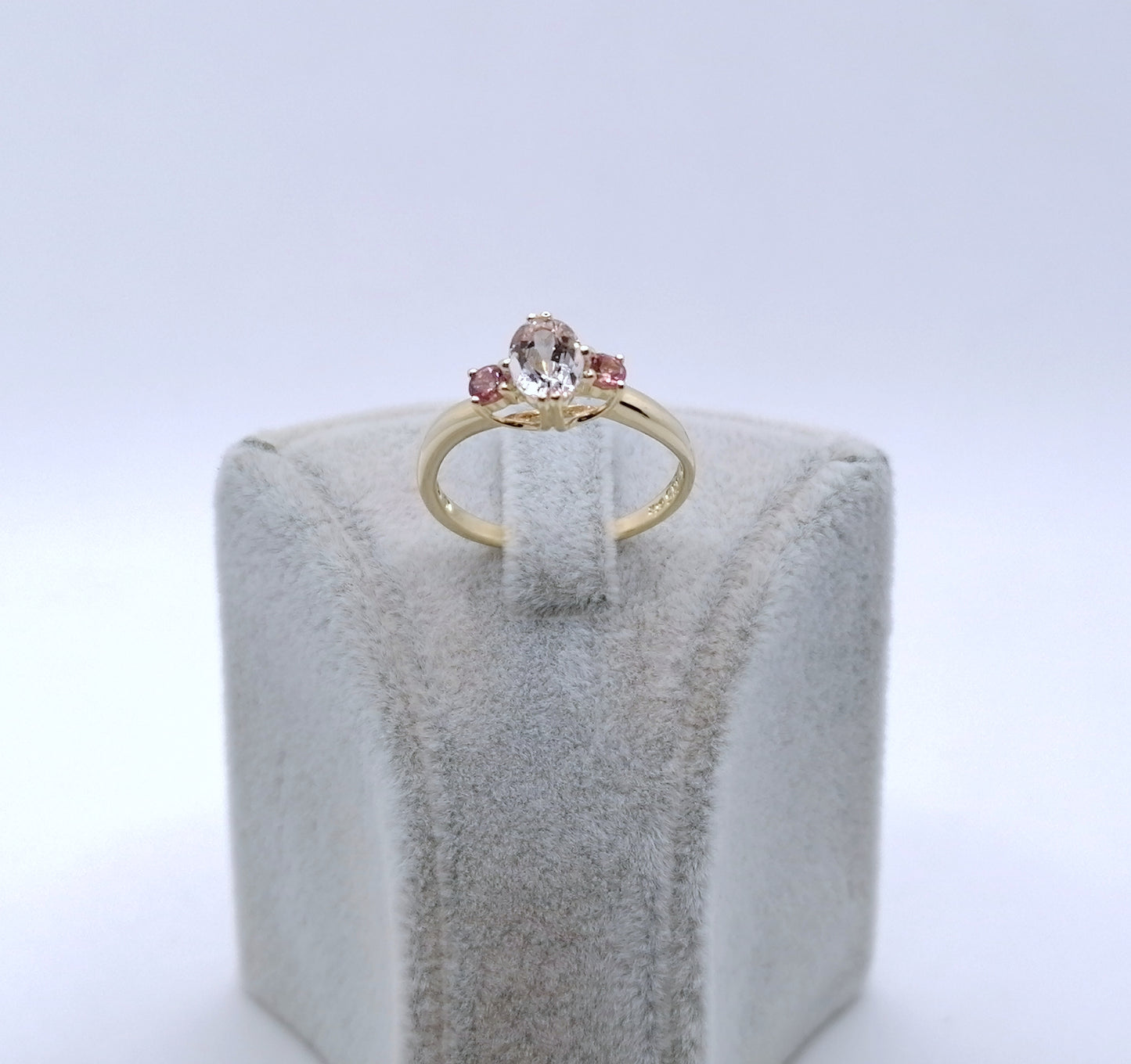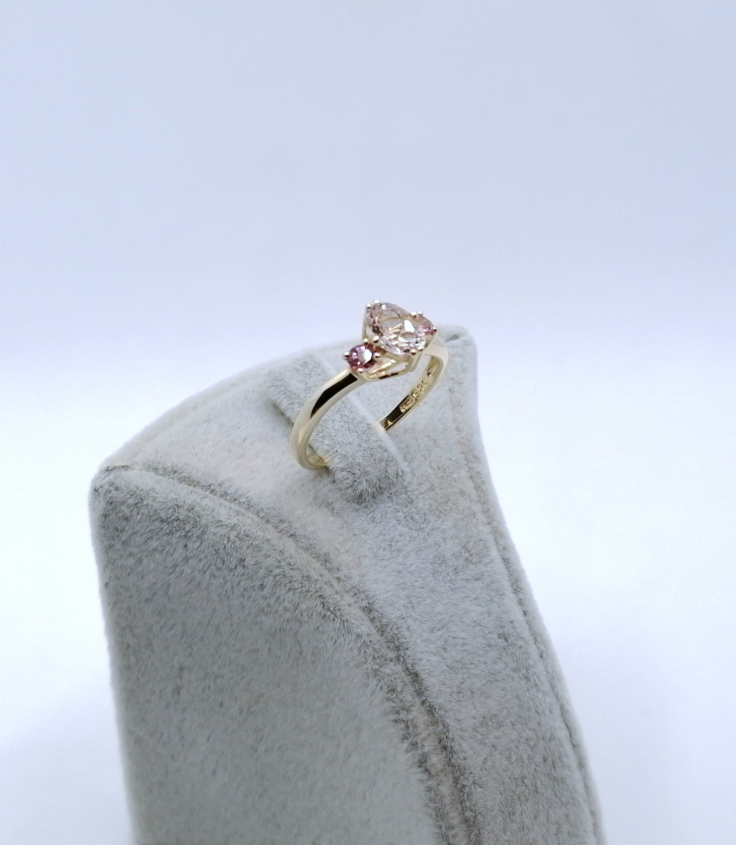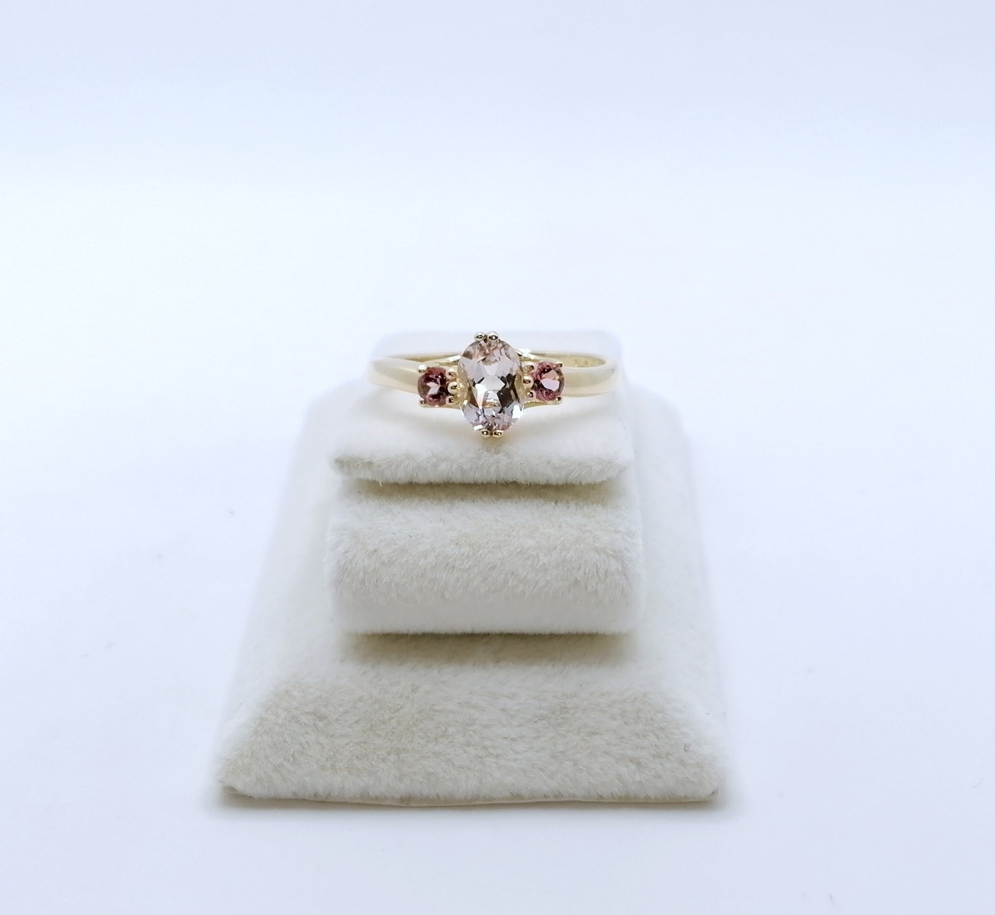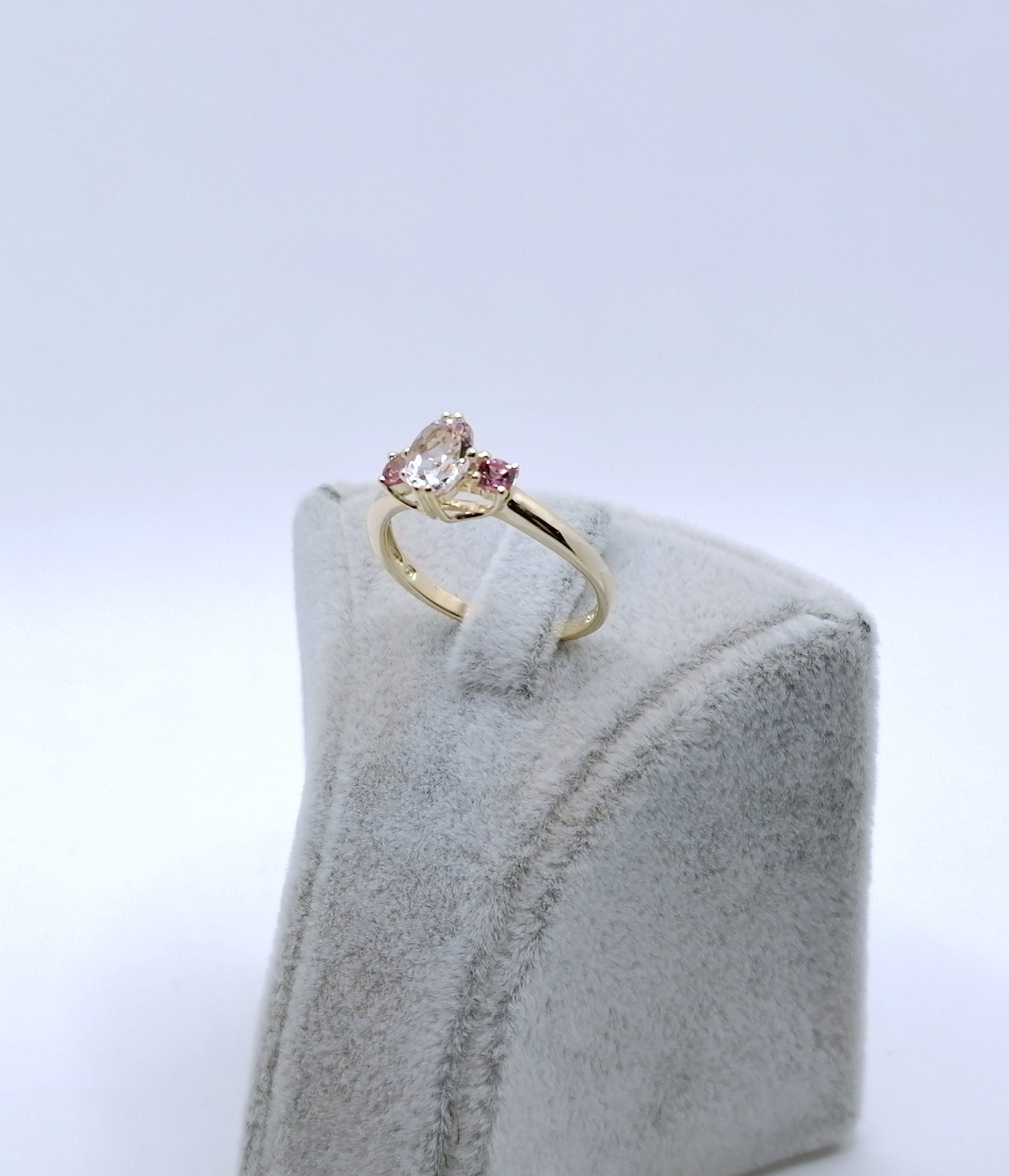 Neuwertiger Gold Damenring mit Morganit Edelsteinen. Der Ring ist aus 585er 14 karat Gold gefertigt.