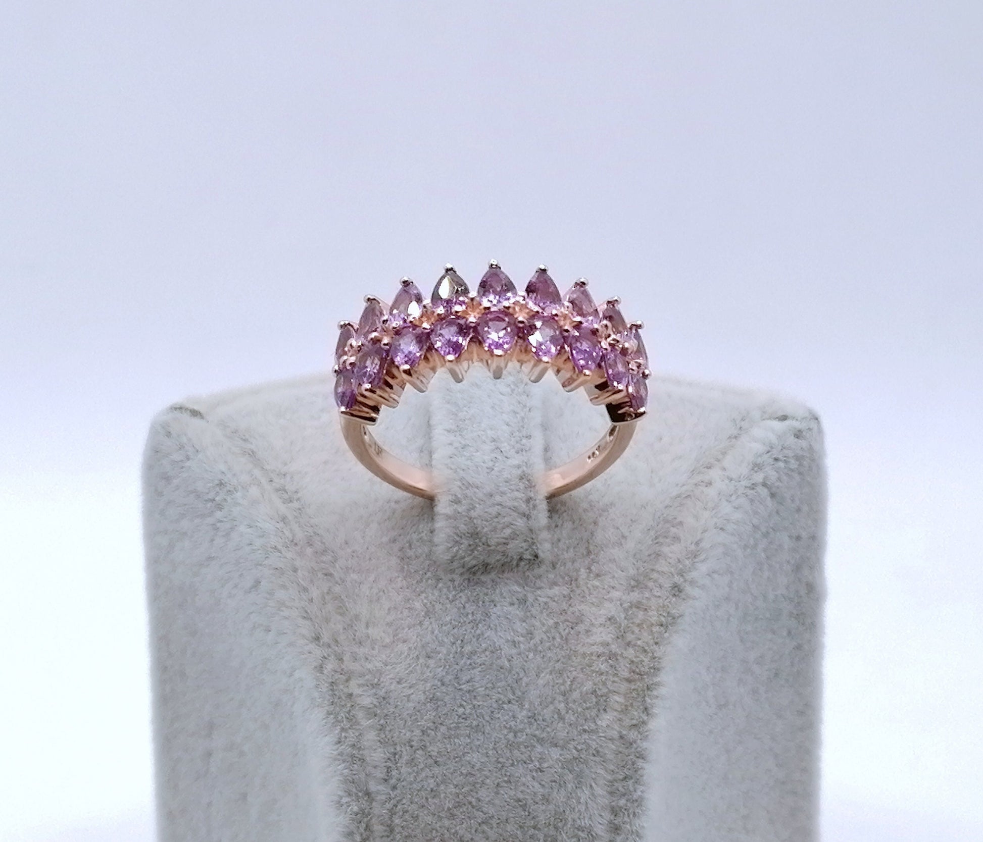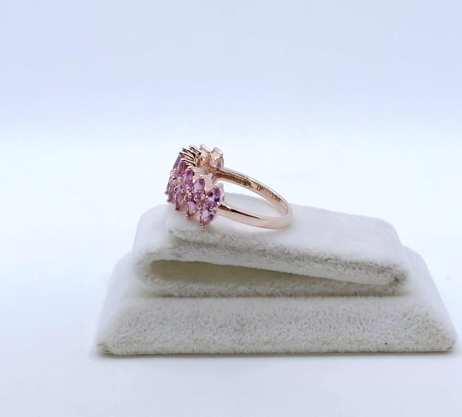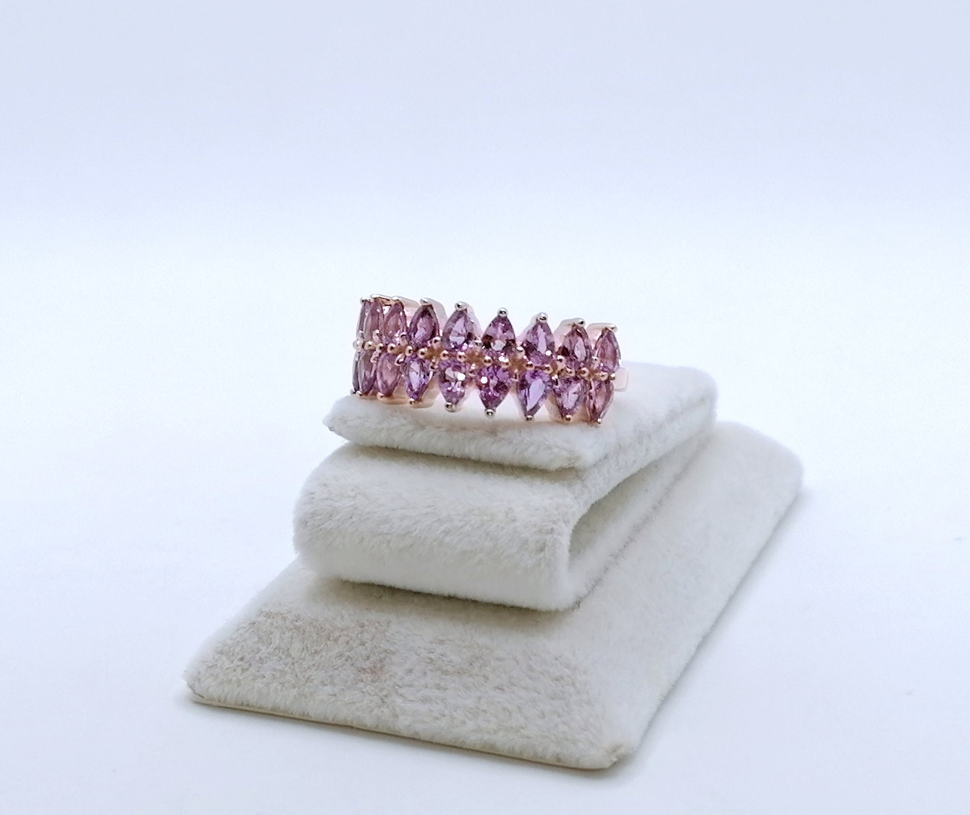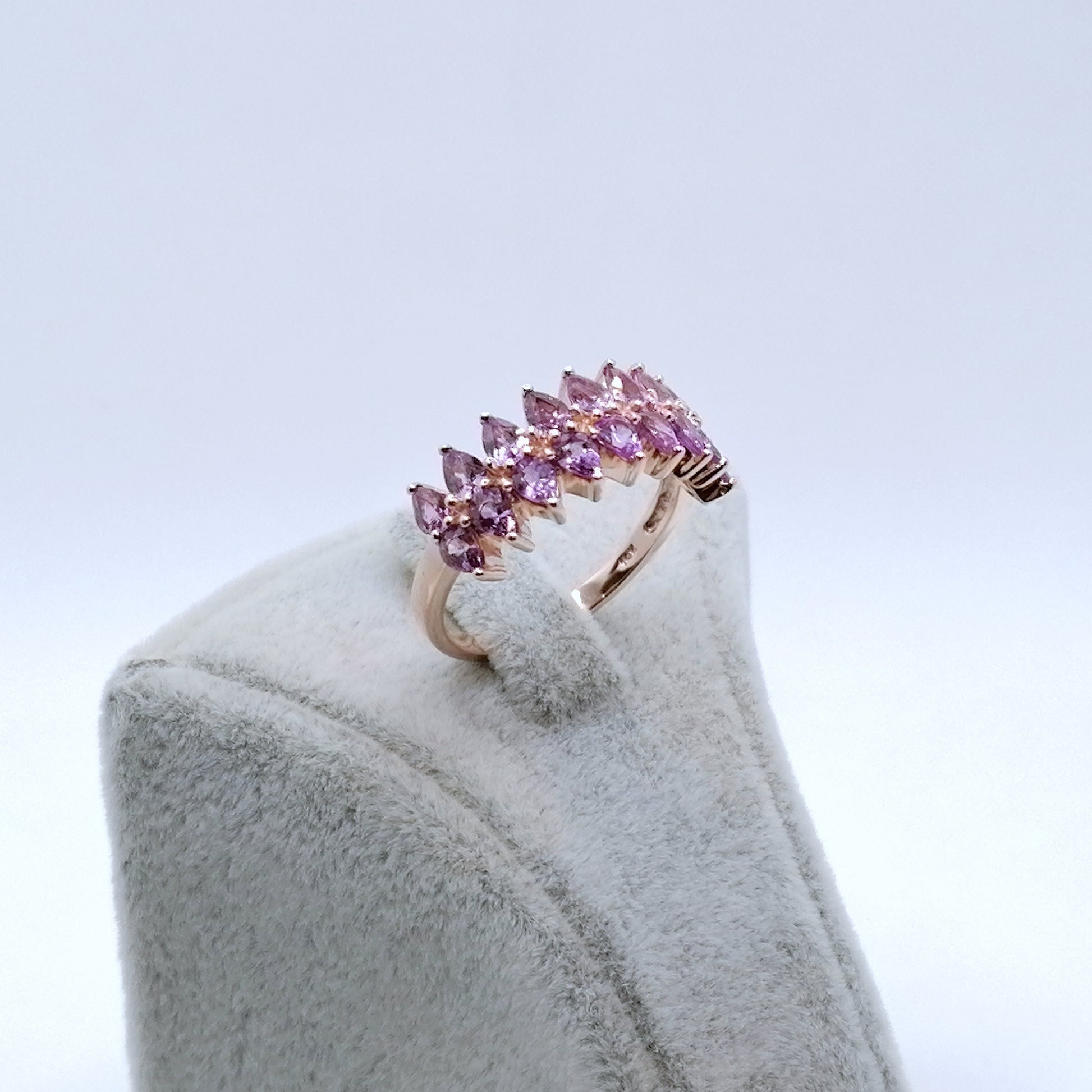 Gold Damenring mit Purpur Saphir Edelsteinen. Der Ring ist aus 585er 14 karat Rosegold gefertigt.