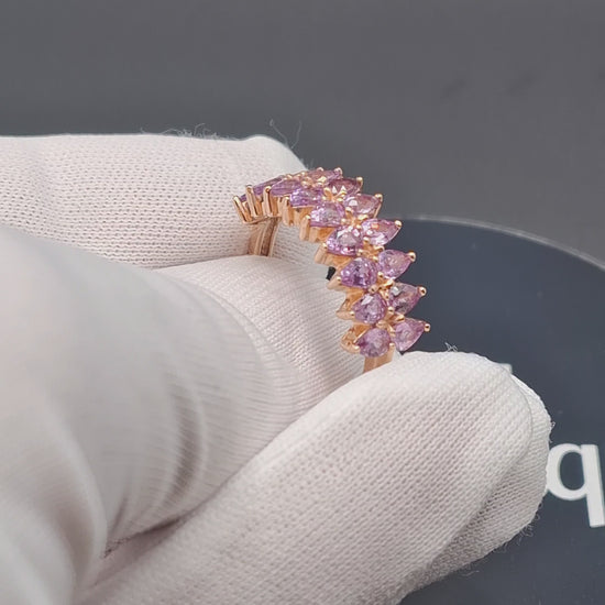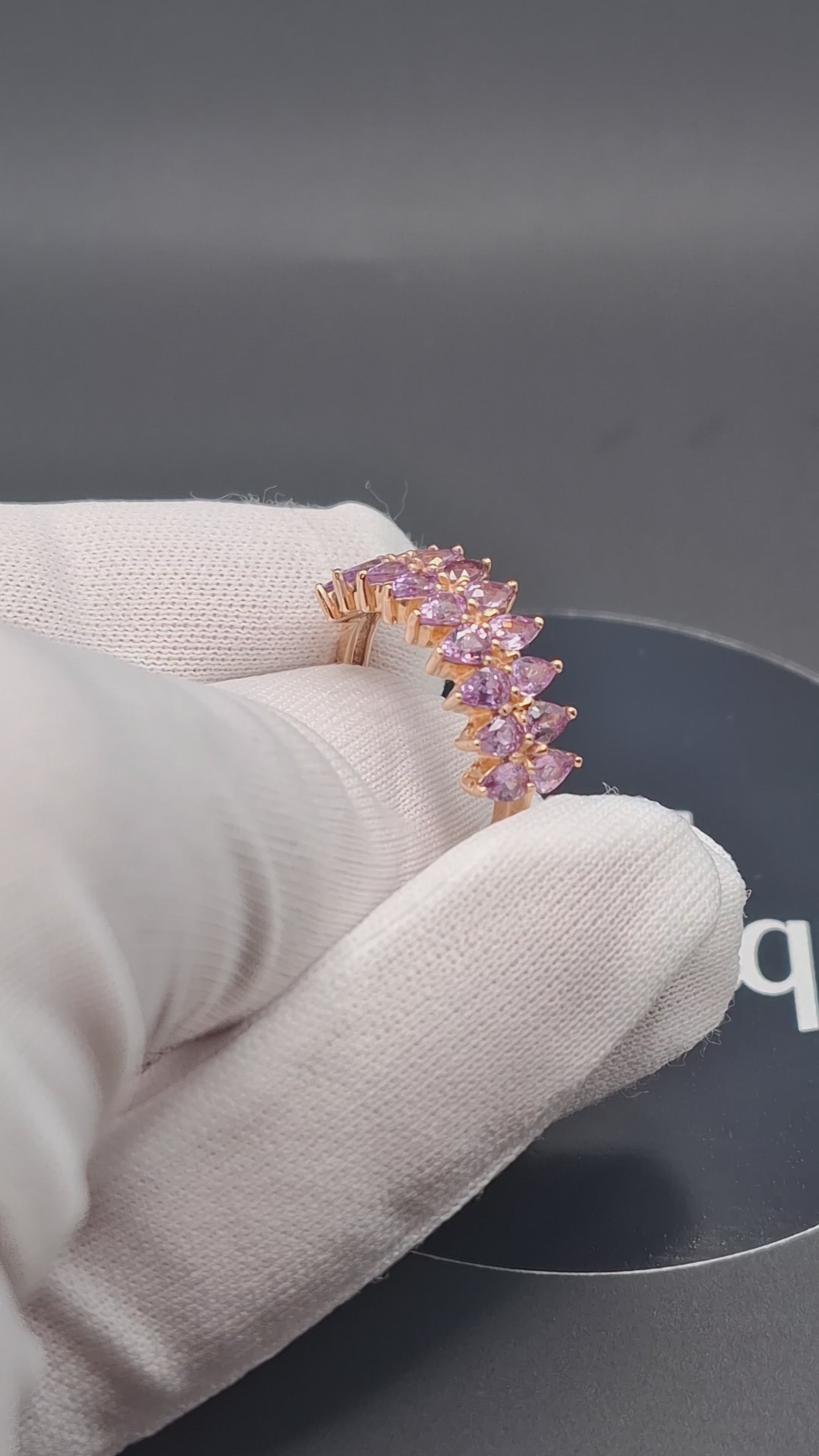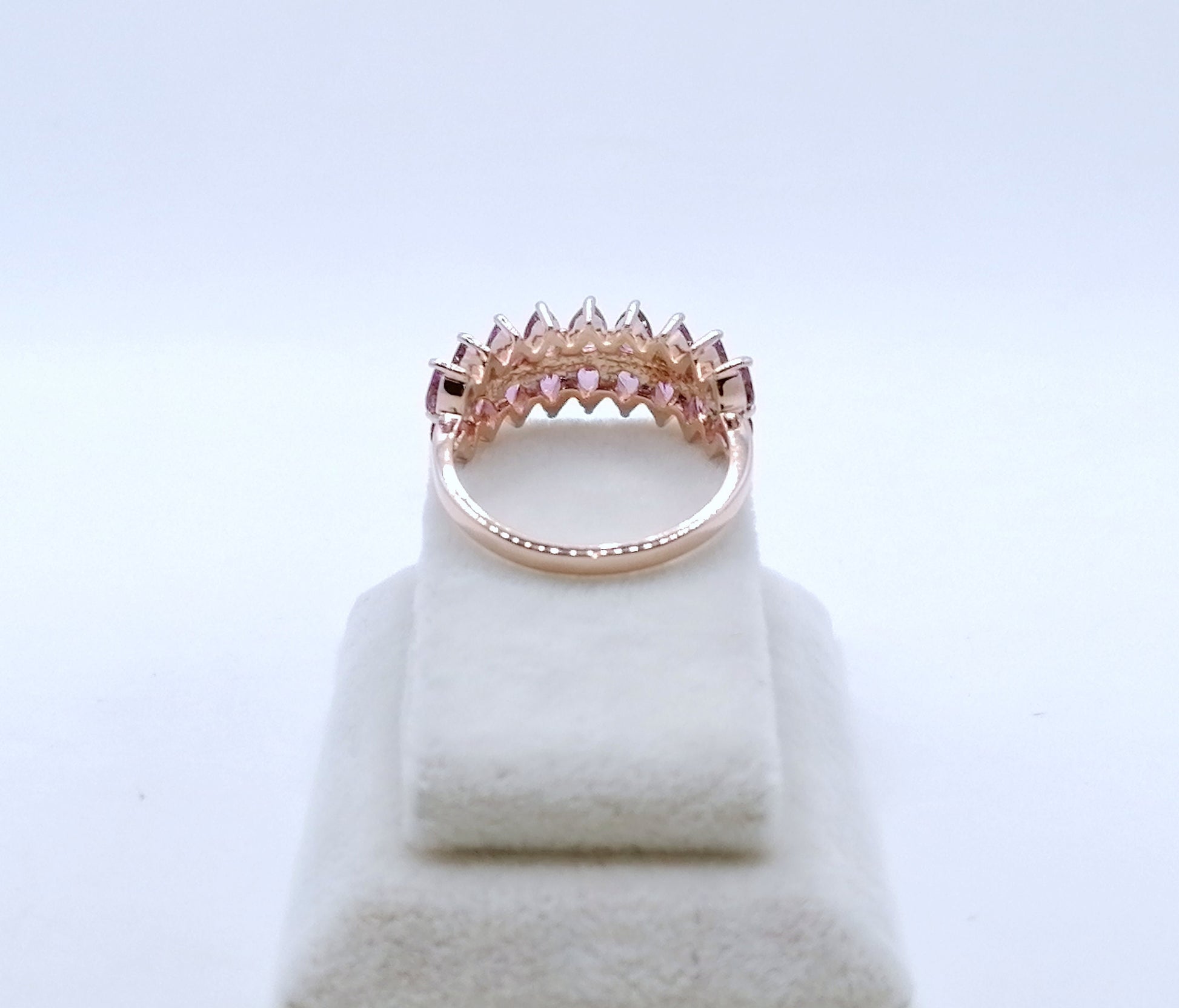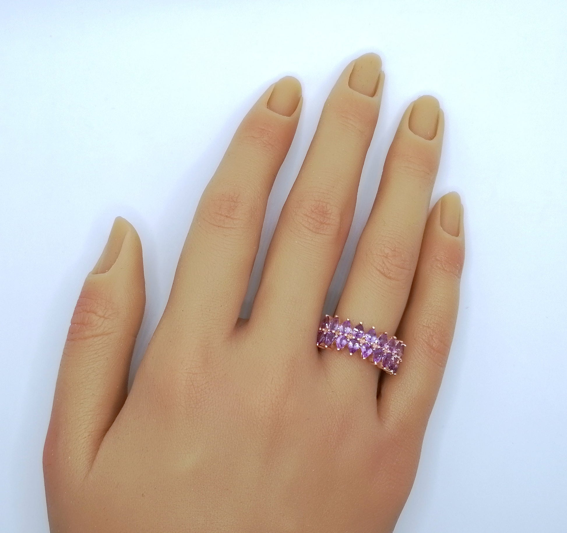 Gold Damenring mit Purpur Saphir Edelsteinen. Der Ring ist aus 585er 14 karat Rosegold gefertigt.