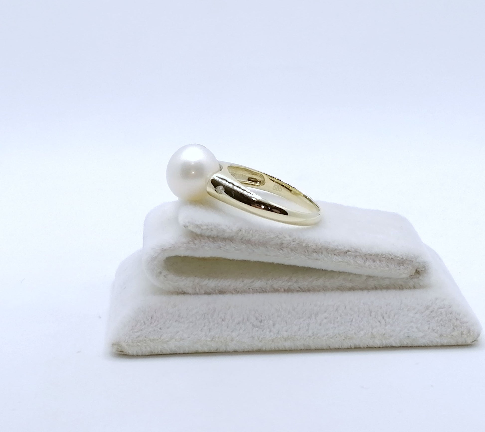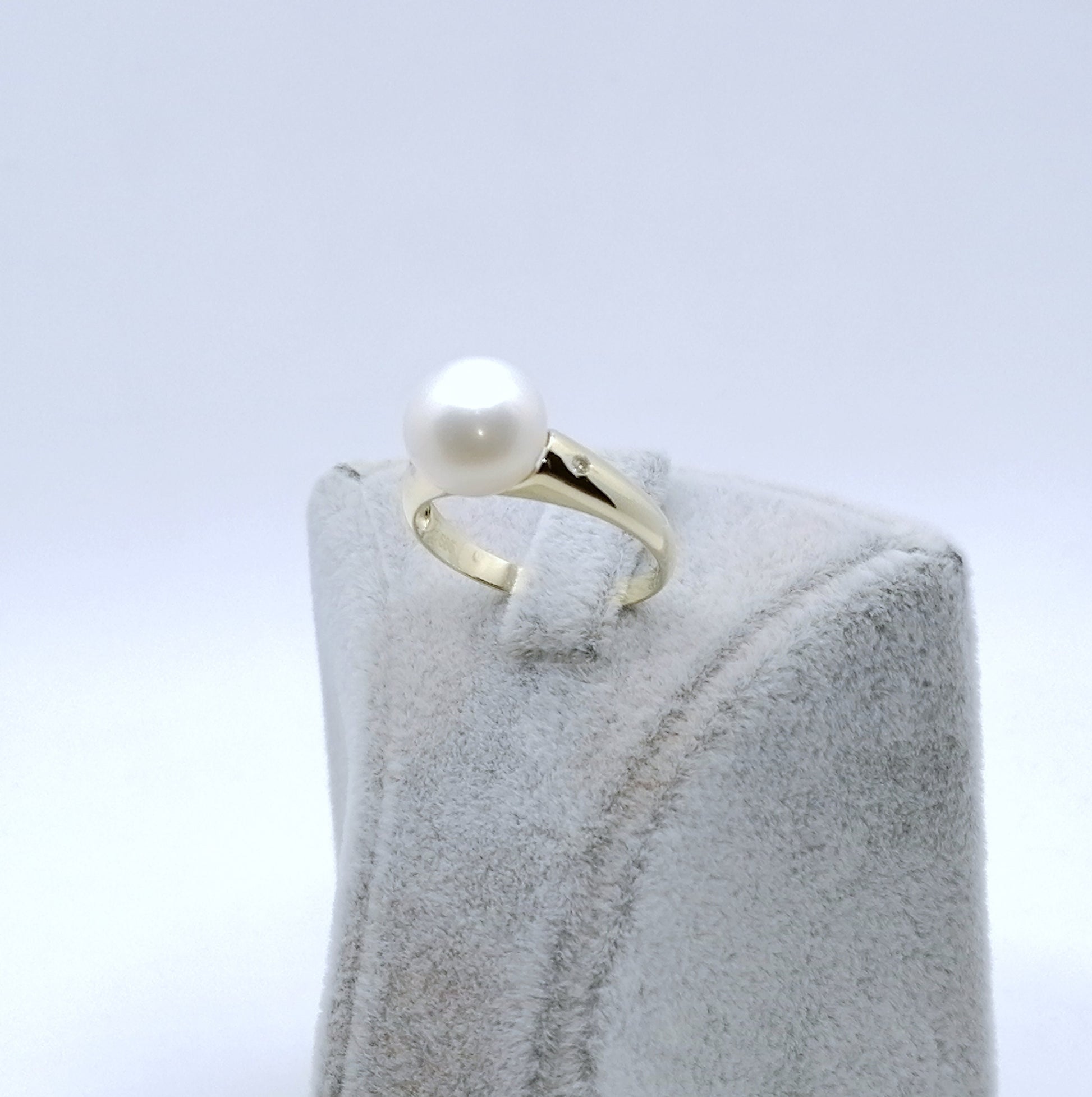 Ring Gold 585er mit Perle und Diamantsplitter Gr. 57