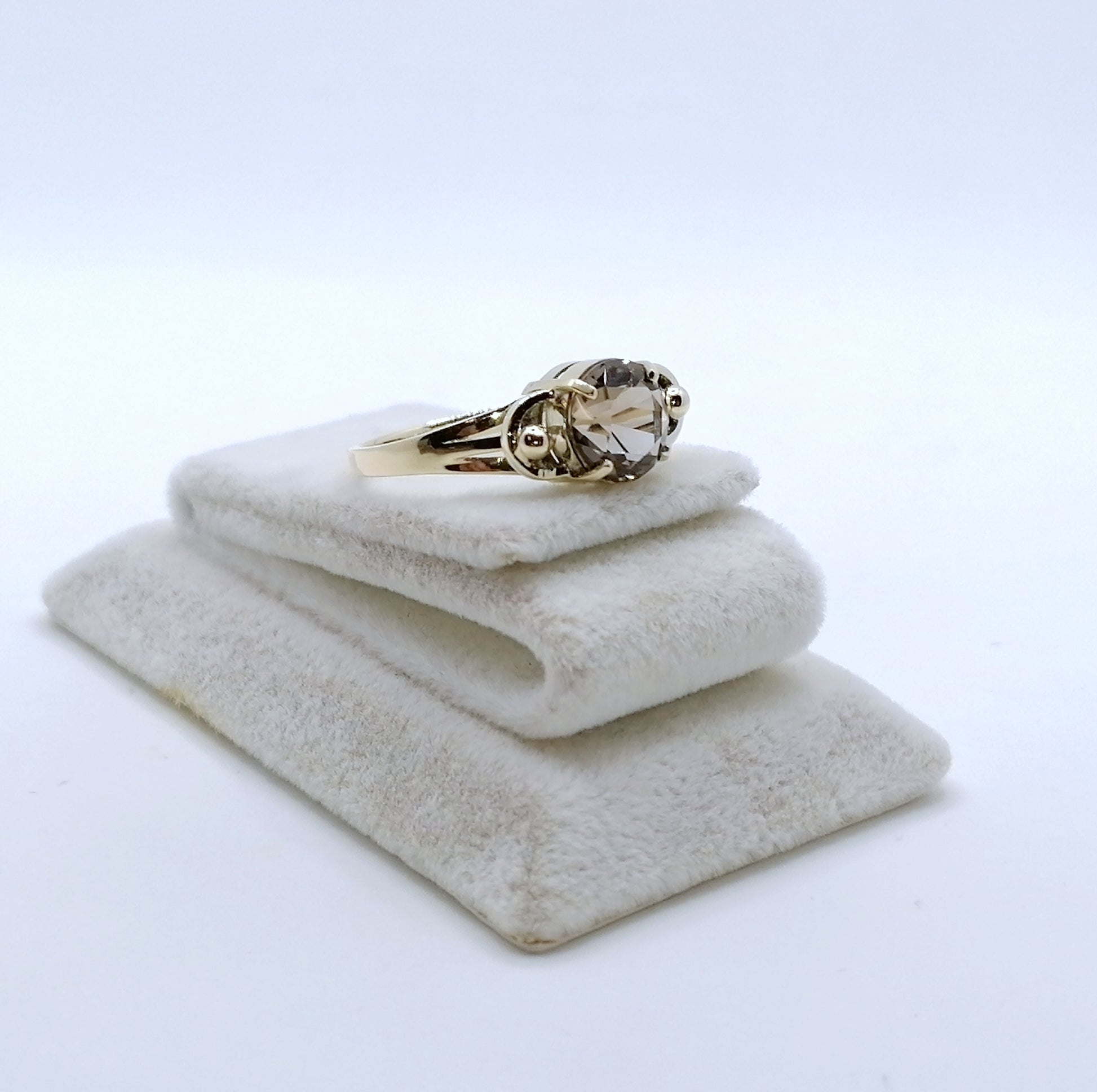 Neuwertiger Gold Damenring mit einem Rauchquarz. Der Ring ist aus 585er 14 karat Gold gefertigt.
