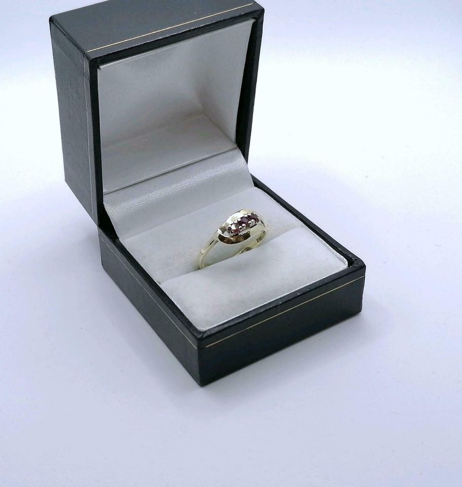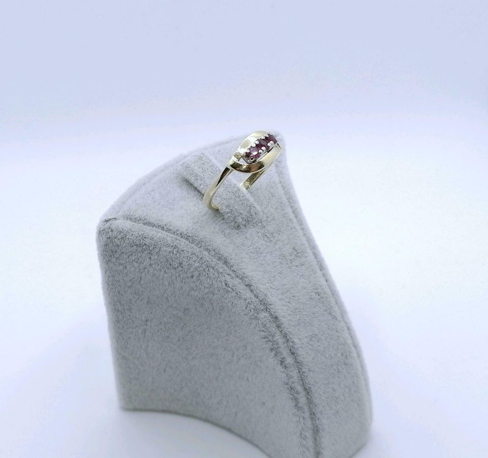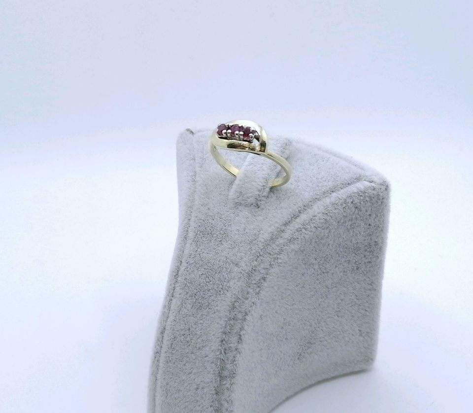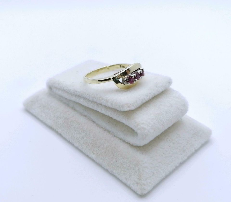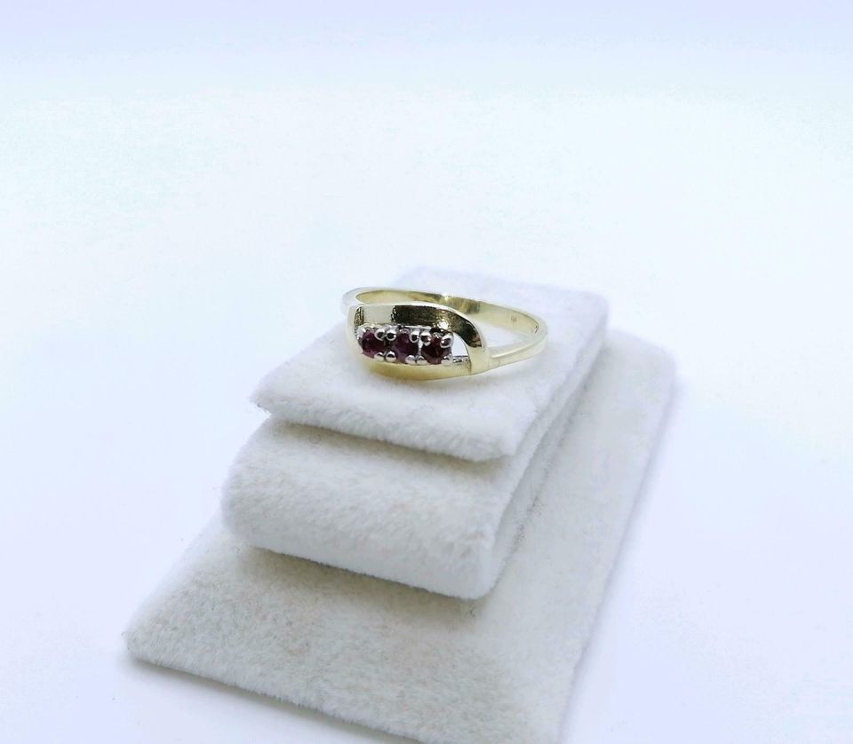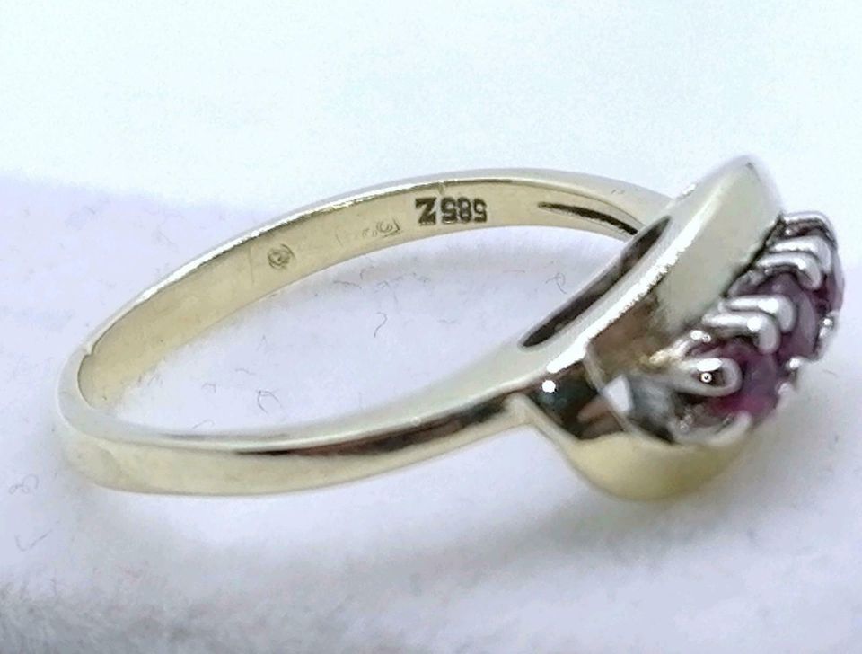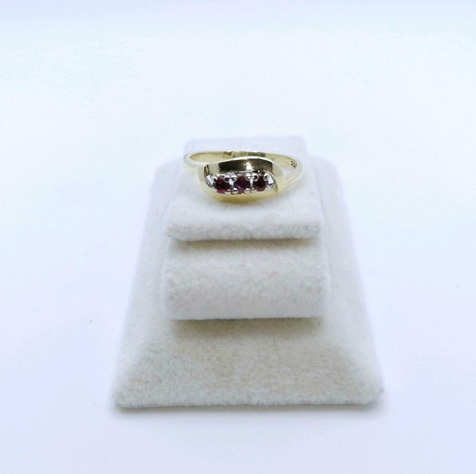 Vintage Gold Damenring mit drei Rubin Steinchen. Der Ring ist aus 585er 14 karat Gold gefertigt.
