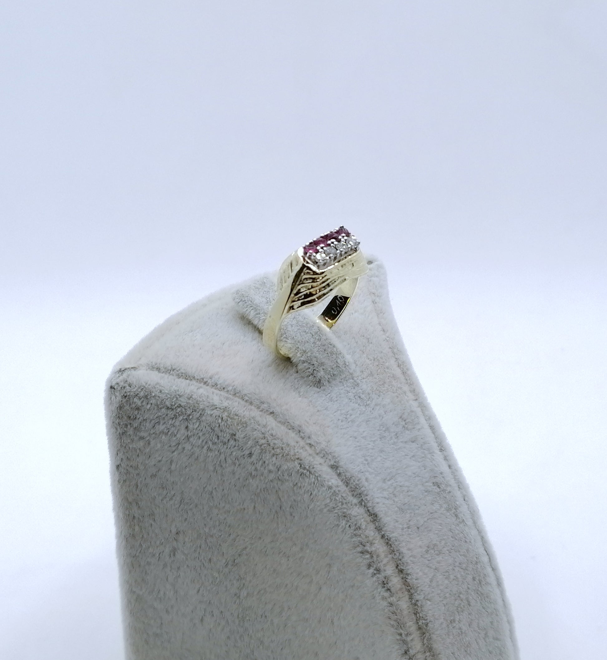Neuwertiger Gold Damenring mit Rubinen und Brillanten. Der Ring ist aus 585er 14 karat Gold gefertigt.